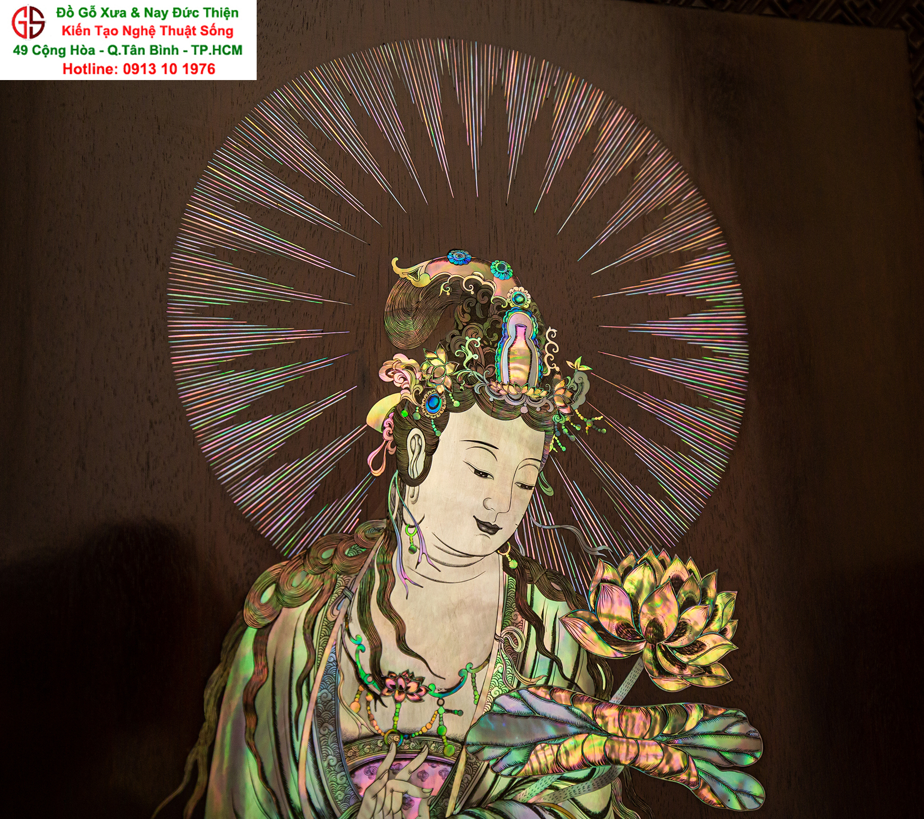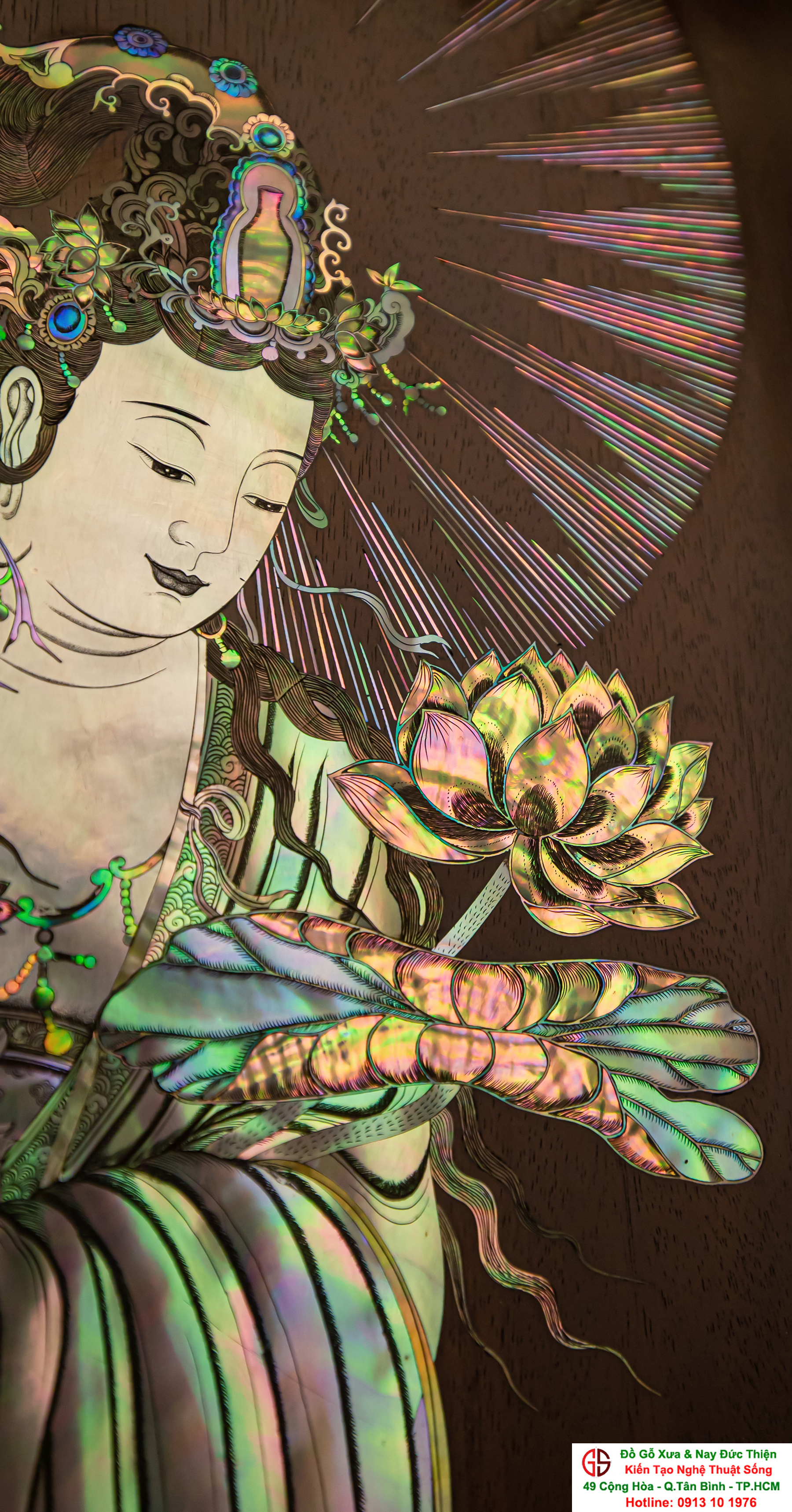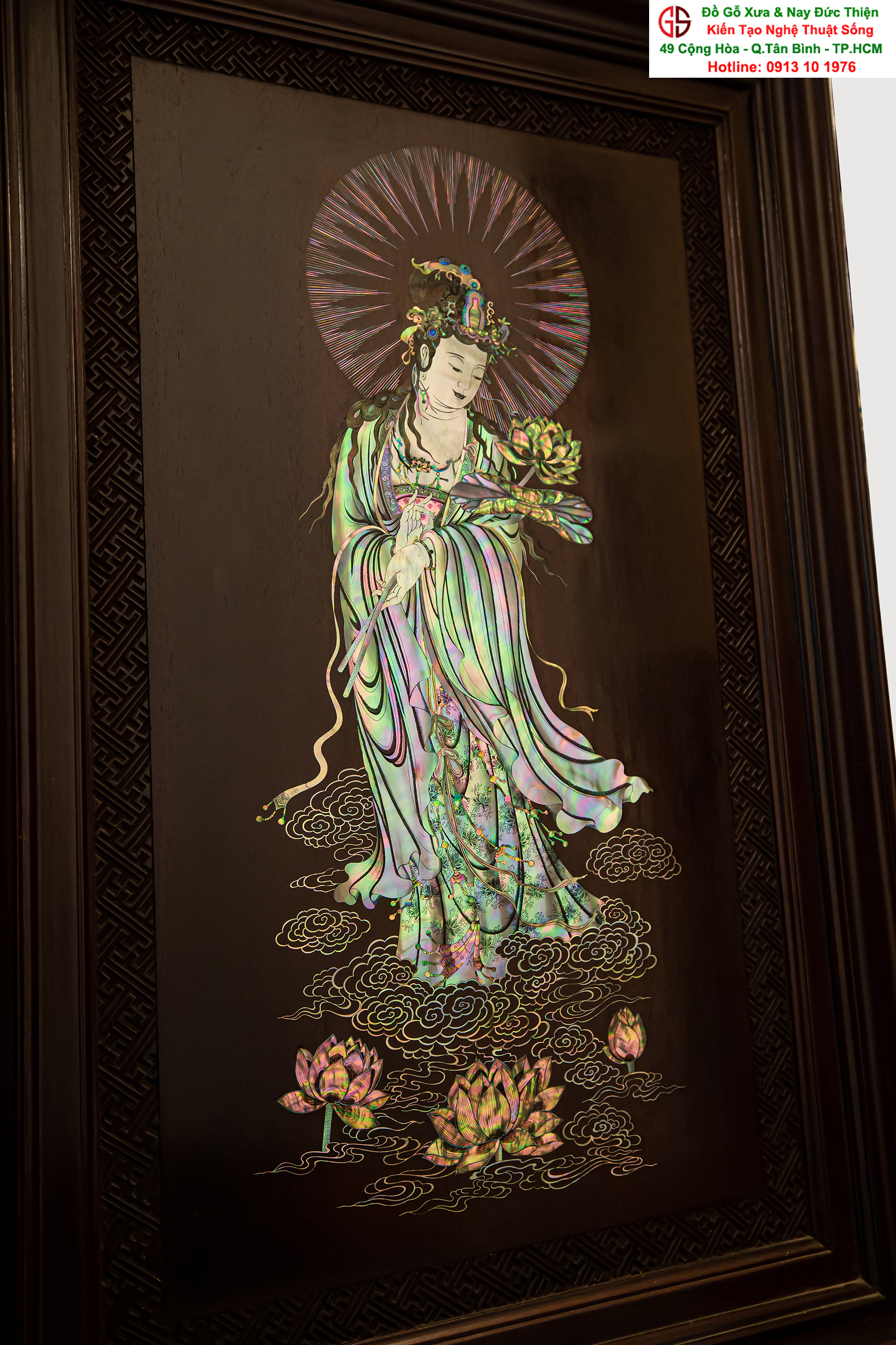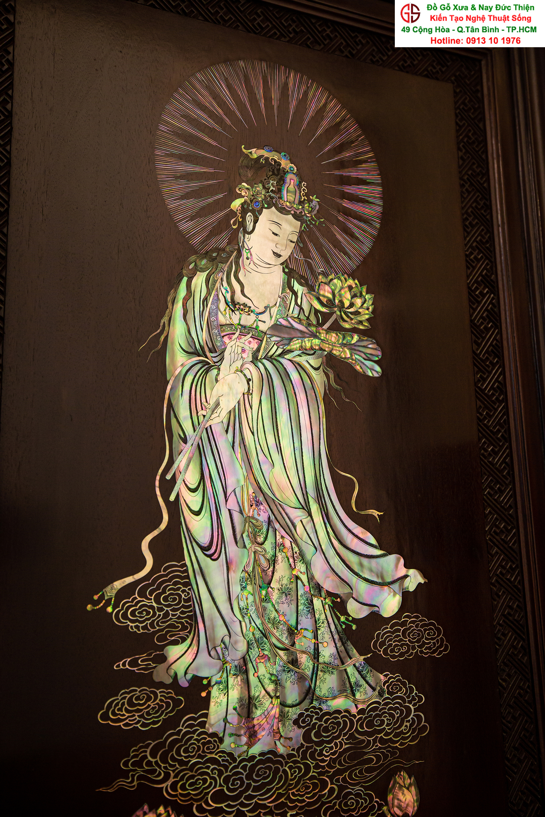 Nơi mua bán trao đổ tranh gỗ phật Quan Âm khảm ốc uy tín tại Sài Gòn, Tranh PHẬT BÀ QUAN ÂM khảm ốc đẹp tại quân Tân Bình