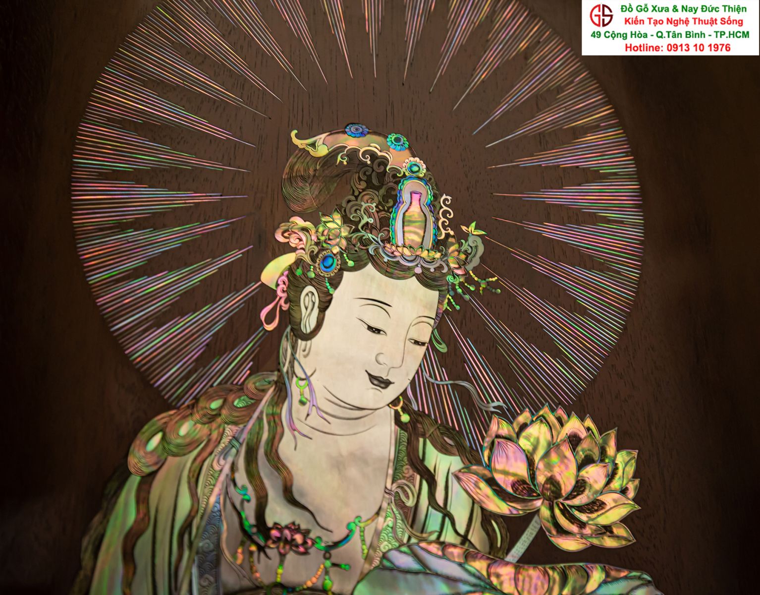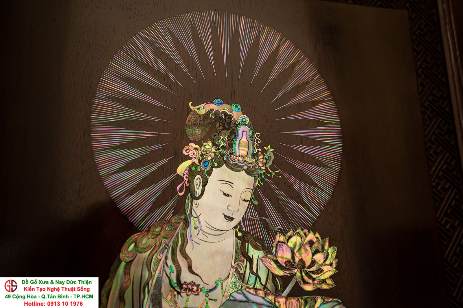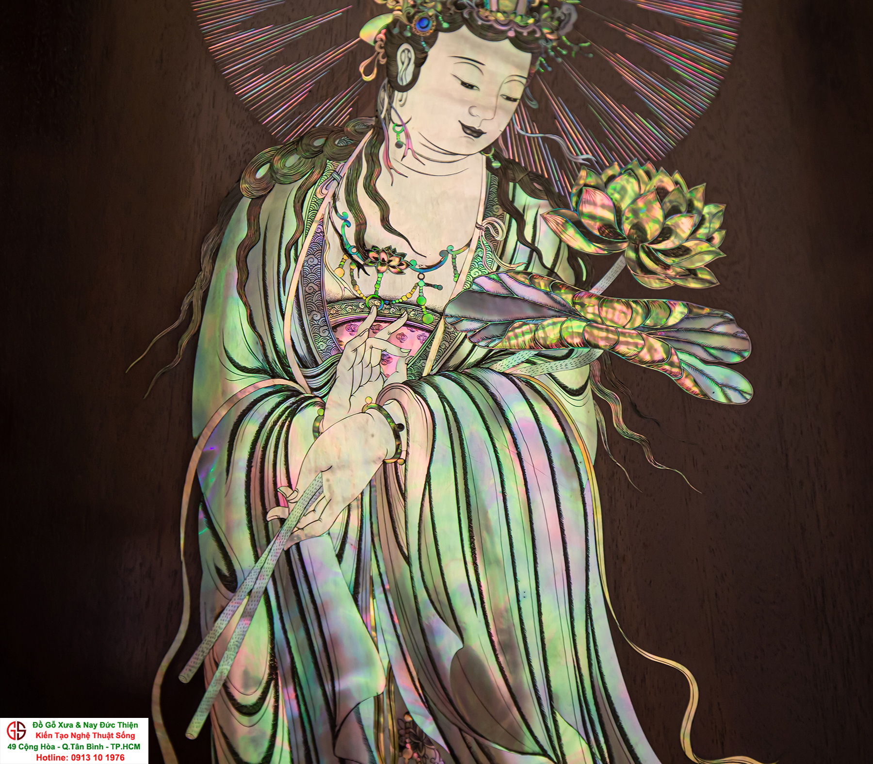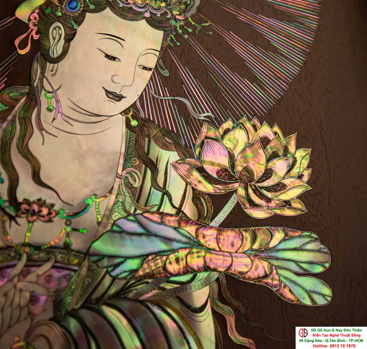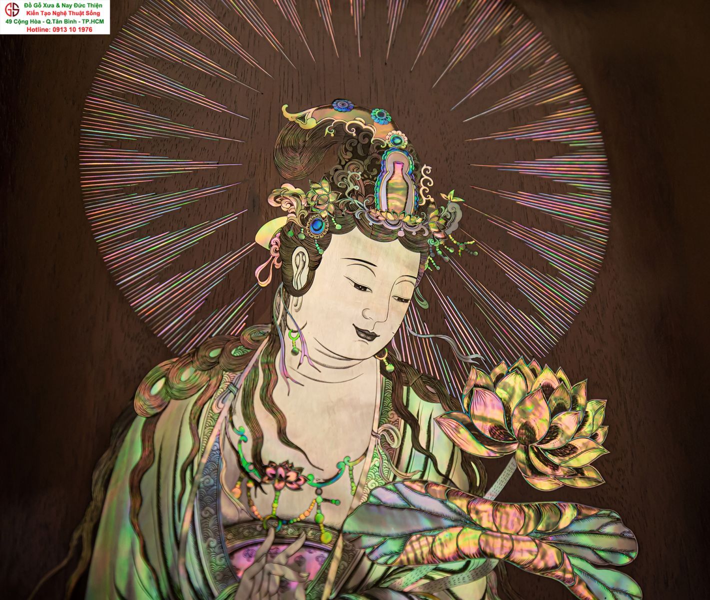 Nơi mua bán trao đổ tranh gỗ phật Quan Âm khảm ốc uy tín tại Sài Gòn, Tranh PHẬT BÀ QUAN ÂM khảm ốc đẹp tại quân Tân Bình