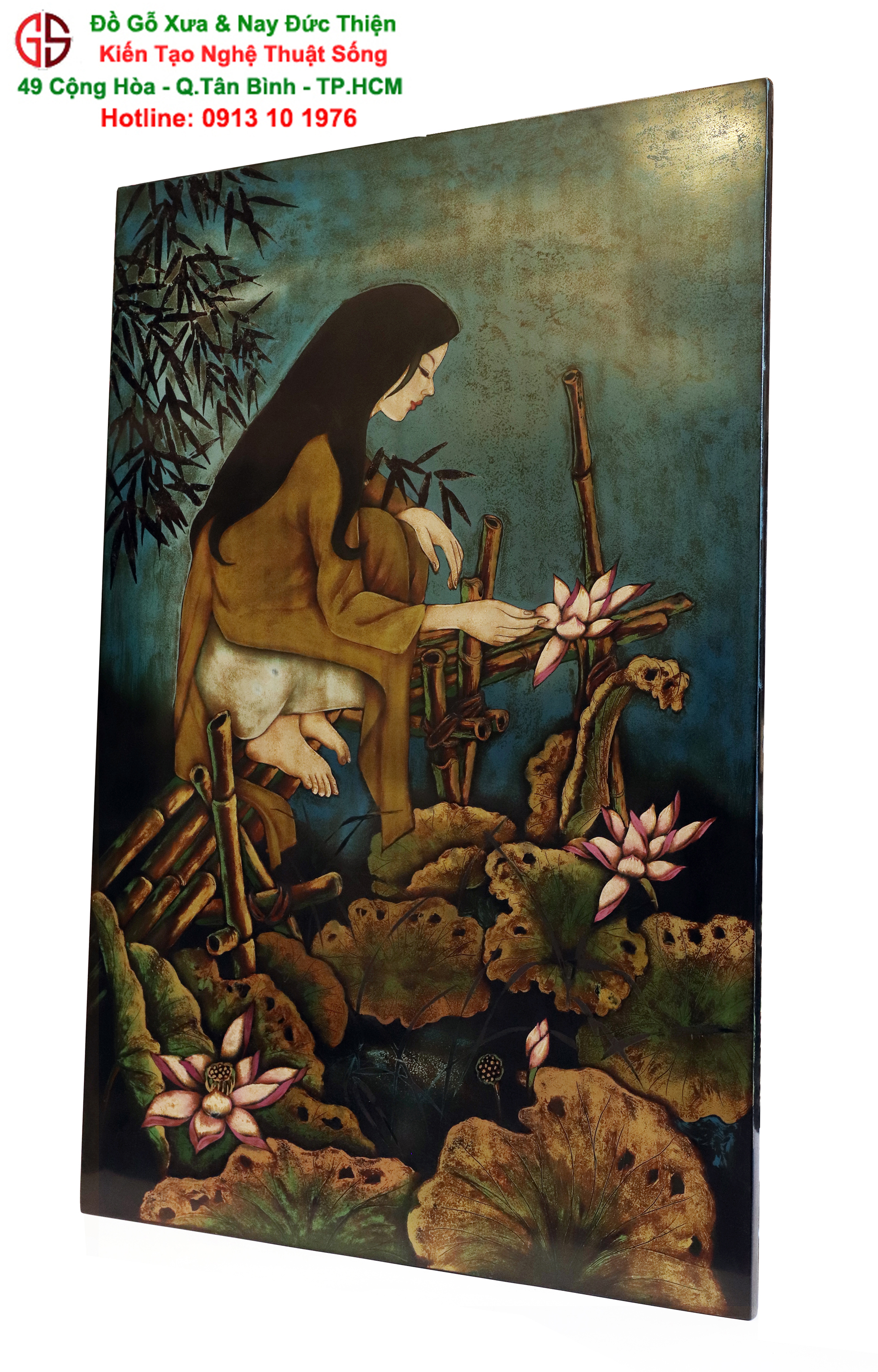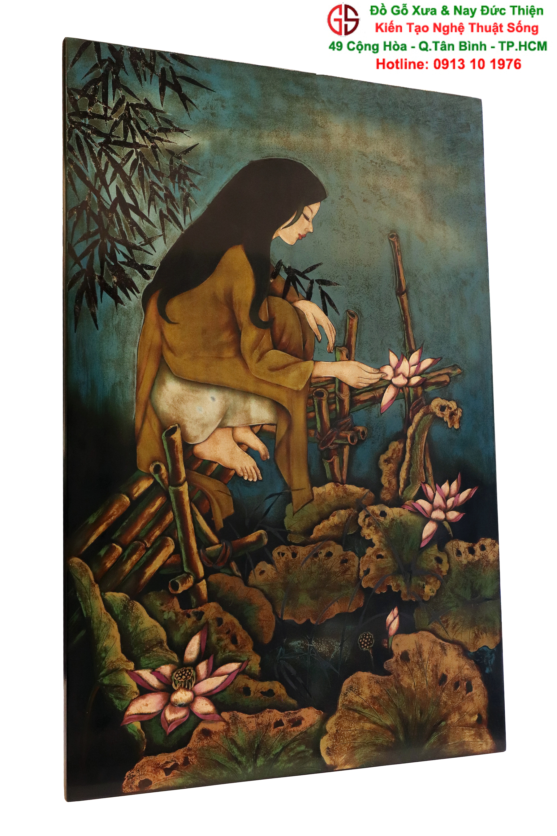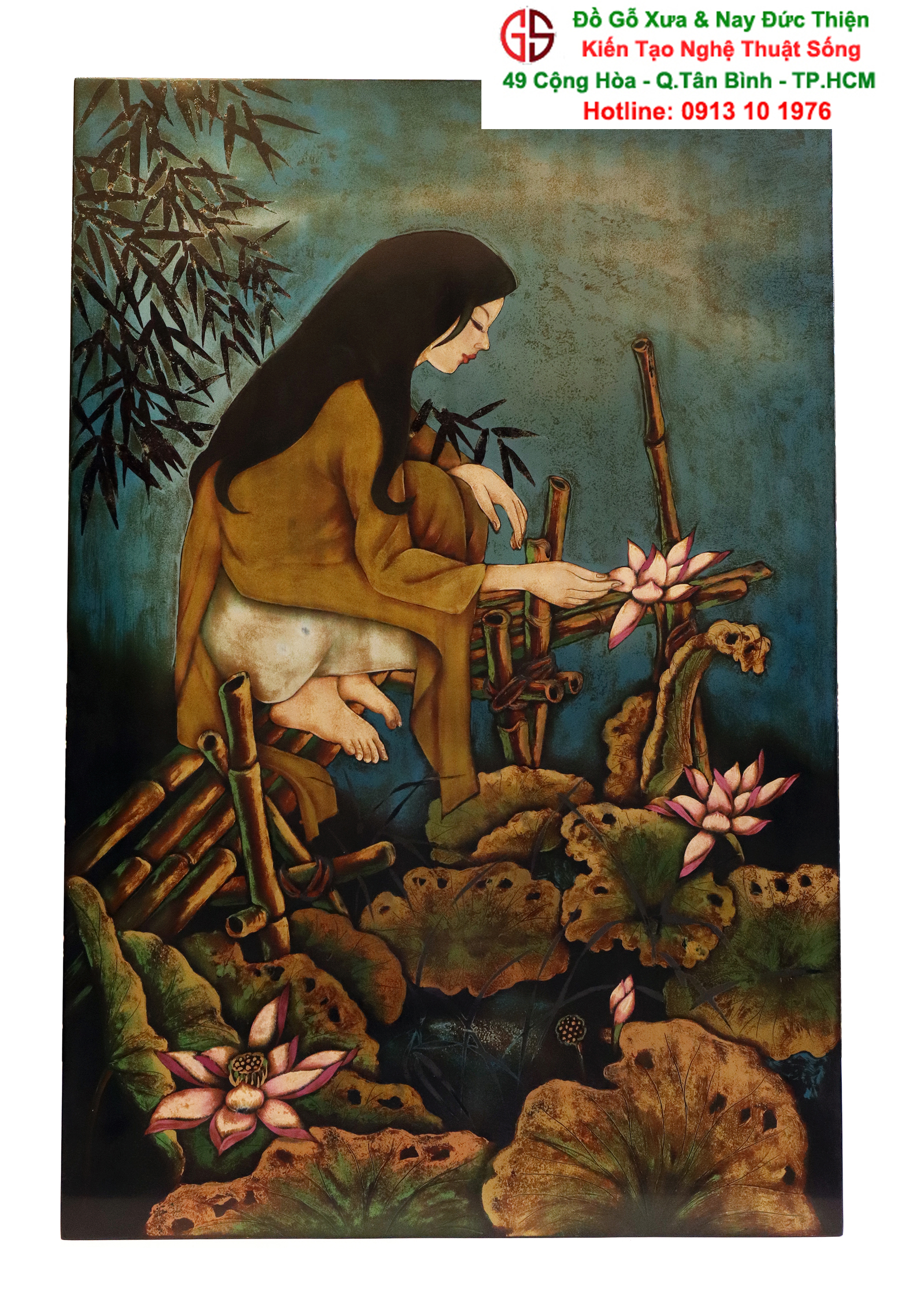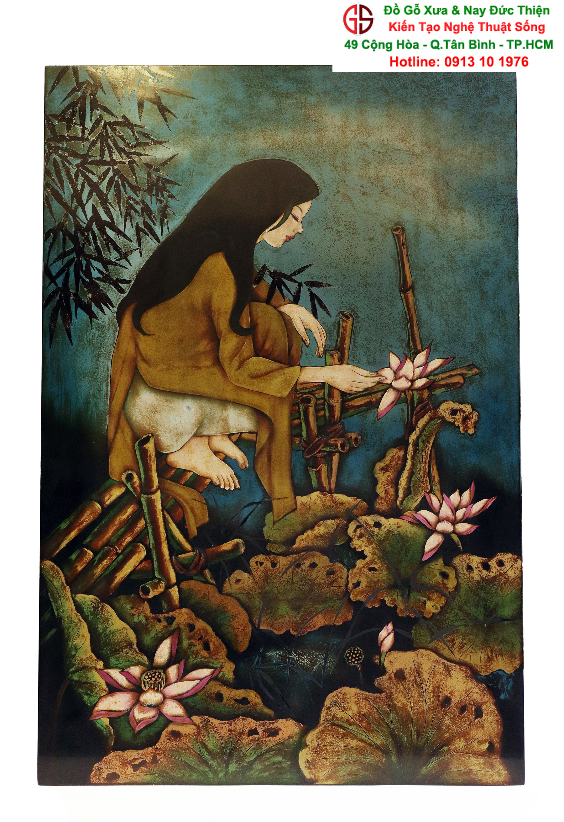 Tranh Sơn Mài Đẹp : Thiếu Nữ Hoa Sen