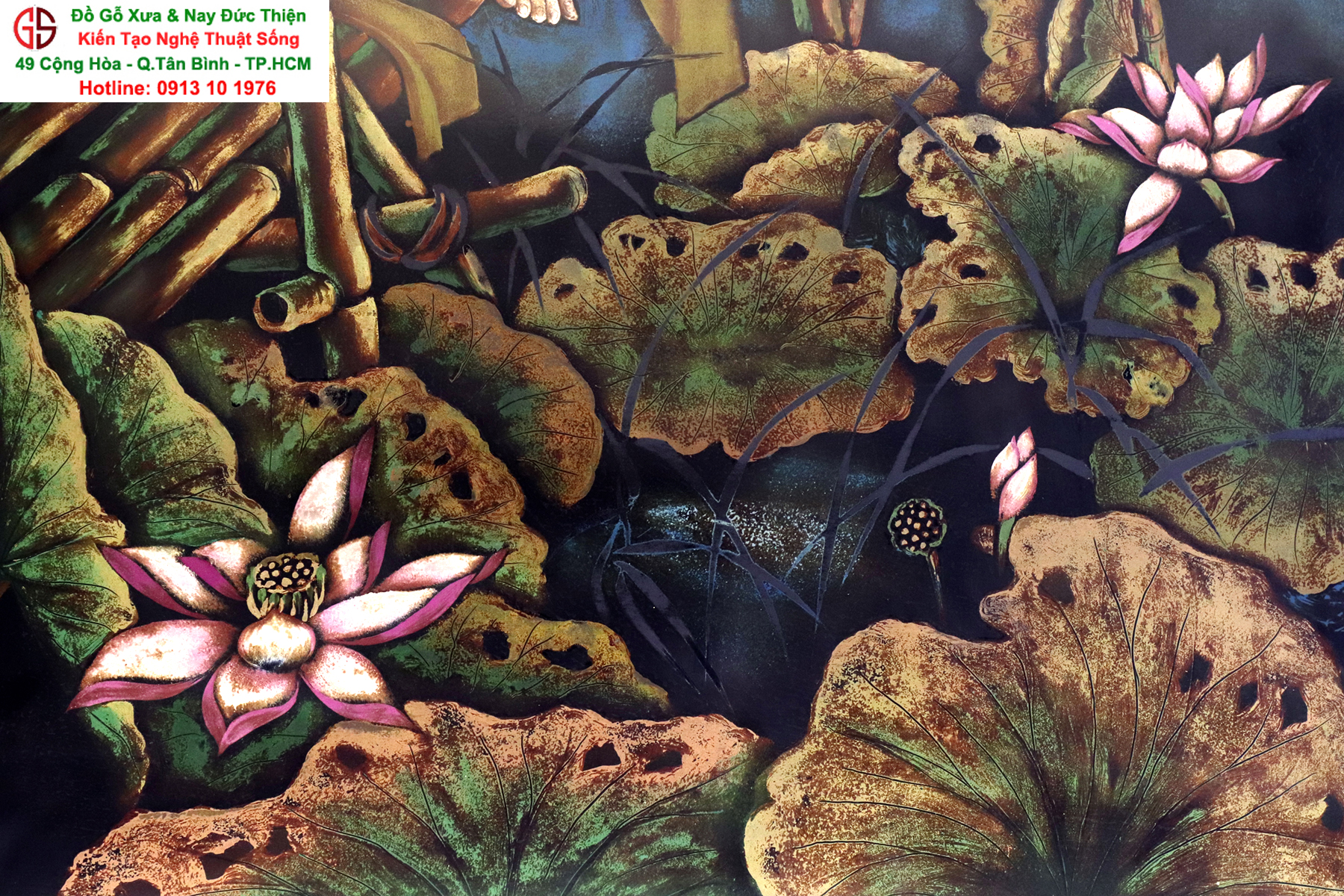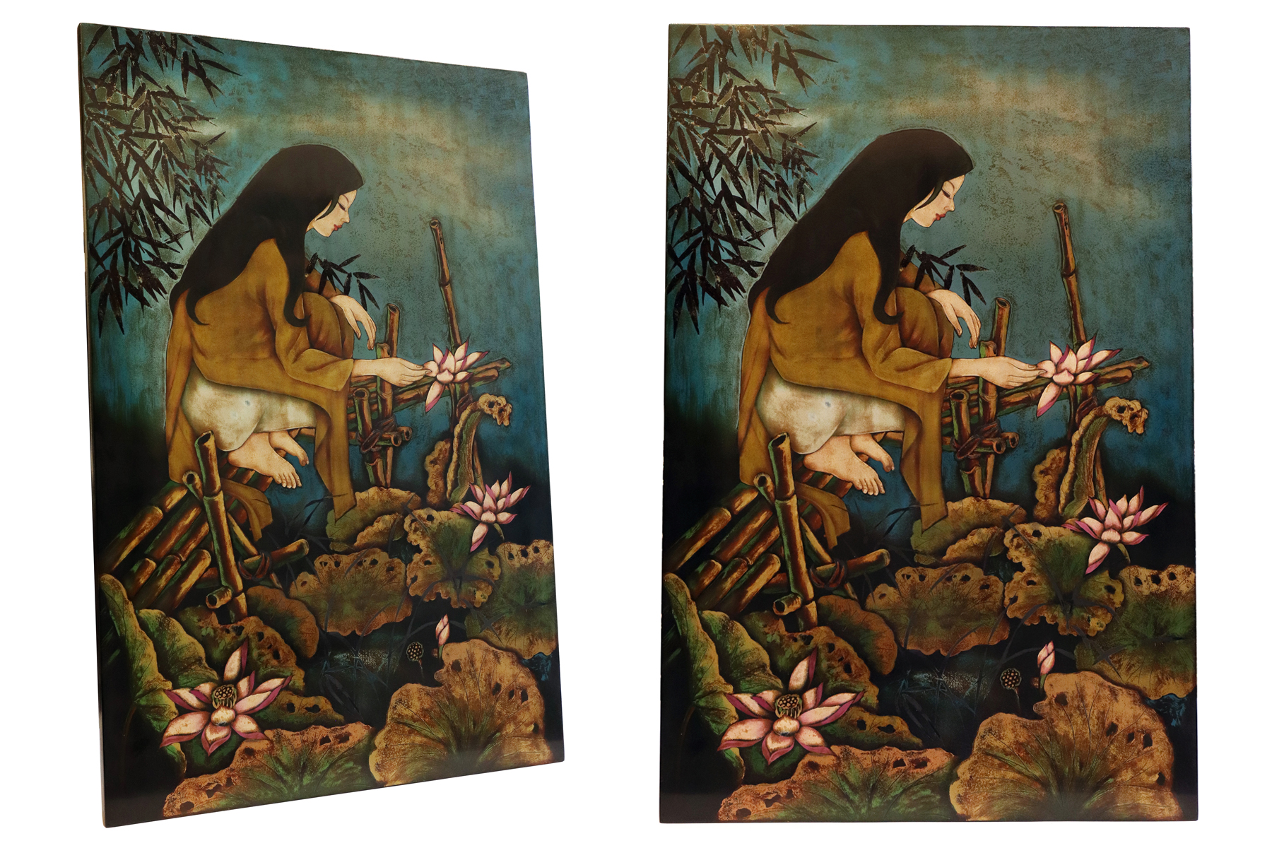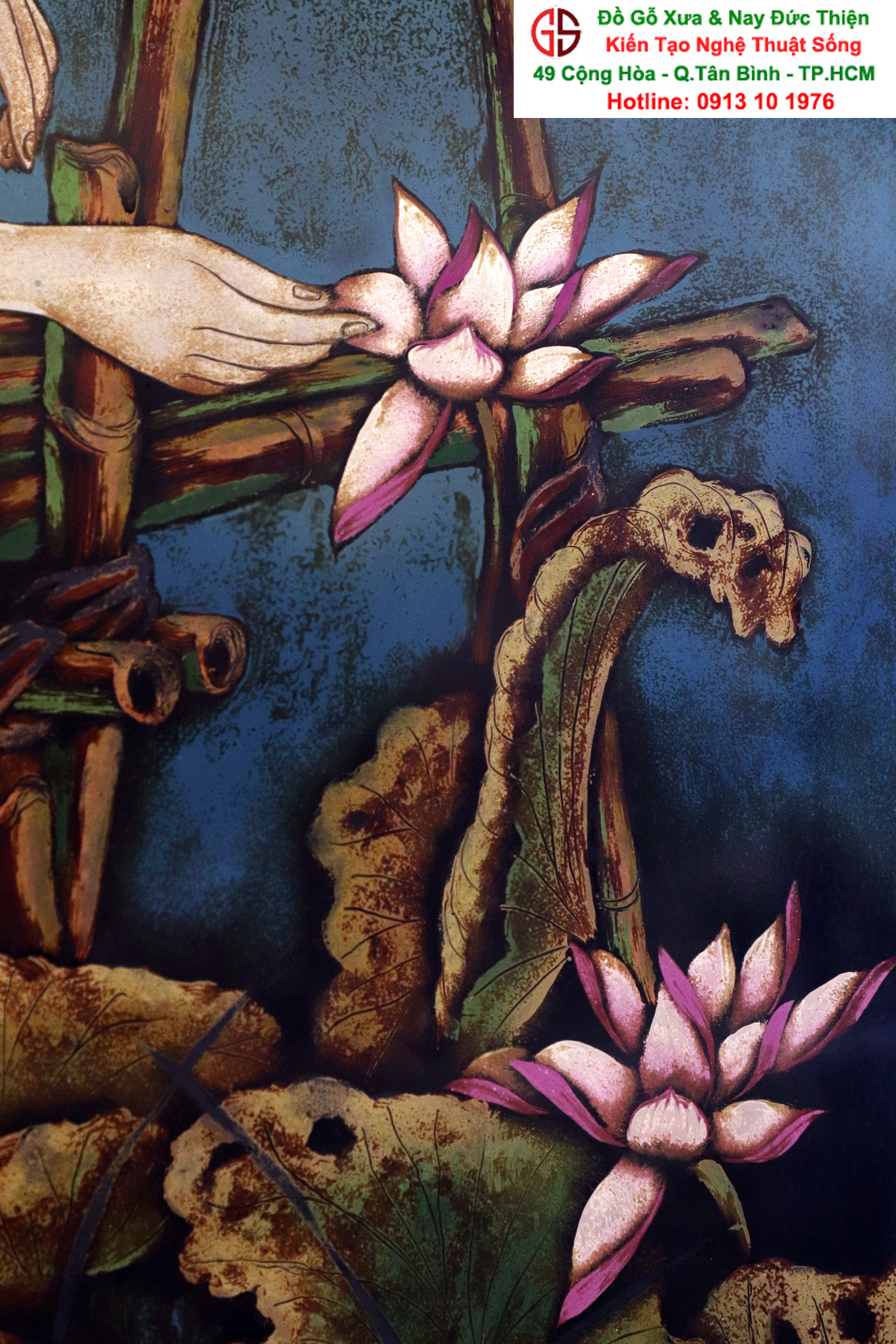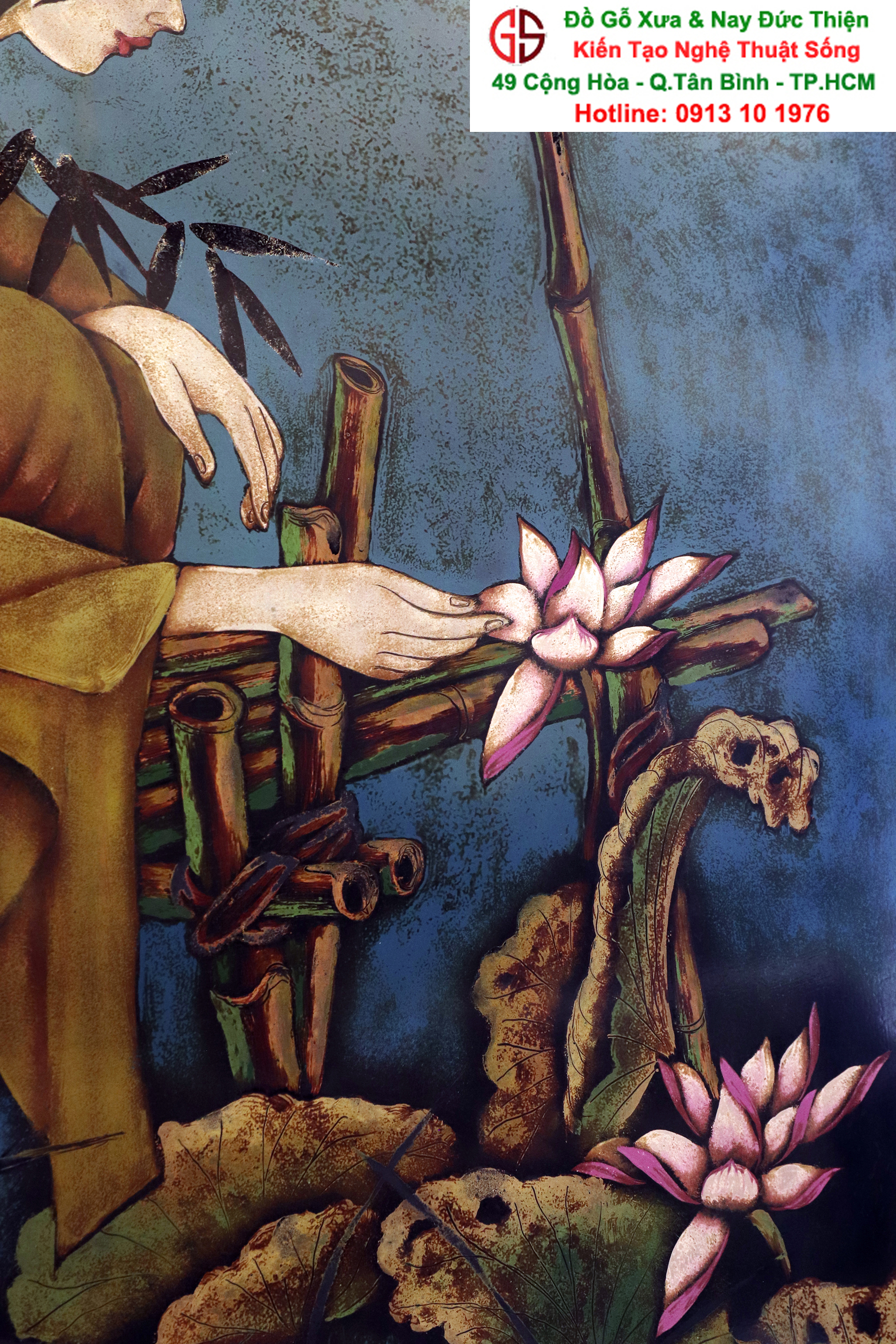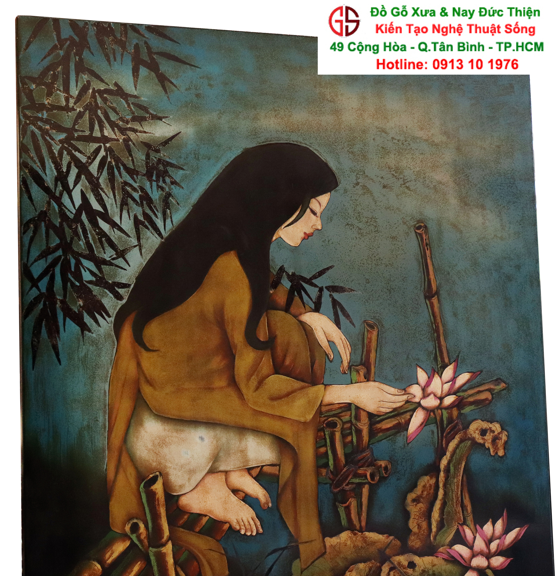 Tranh Sơn Mài Đẹp : Thiếu Nữ Hoa Sen