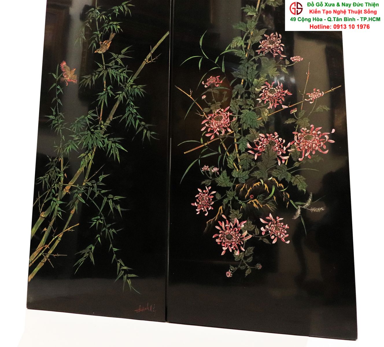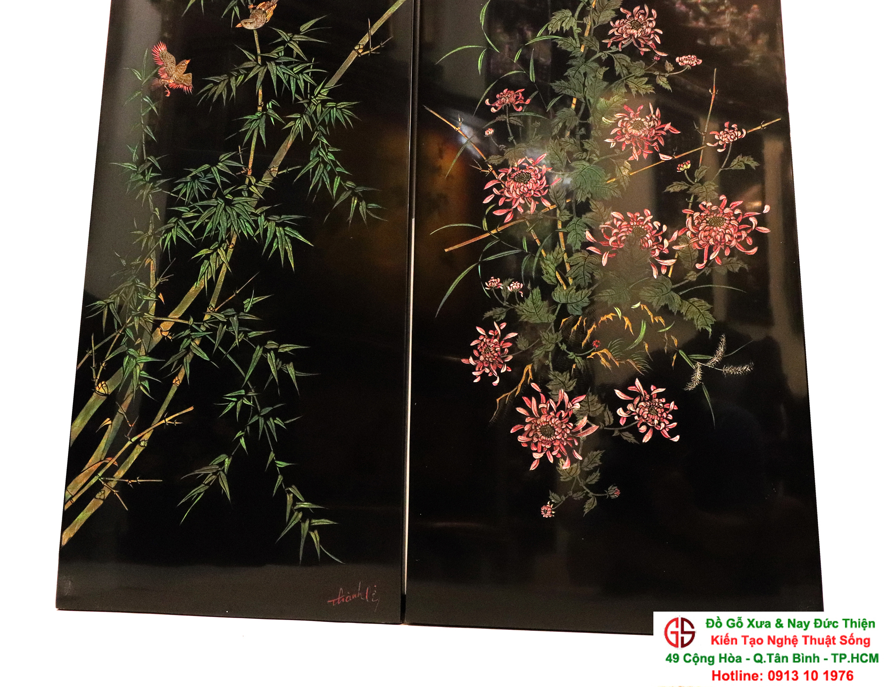 - Tranh sơn mài: tranh sơn mài sơn thủy hữu tình, tranh sơn mài của các họa sĩ nổi tiếng: Thành Lễ, Trần Hà...