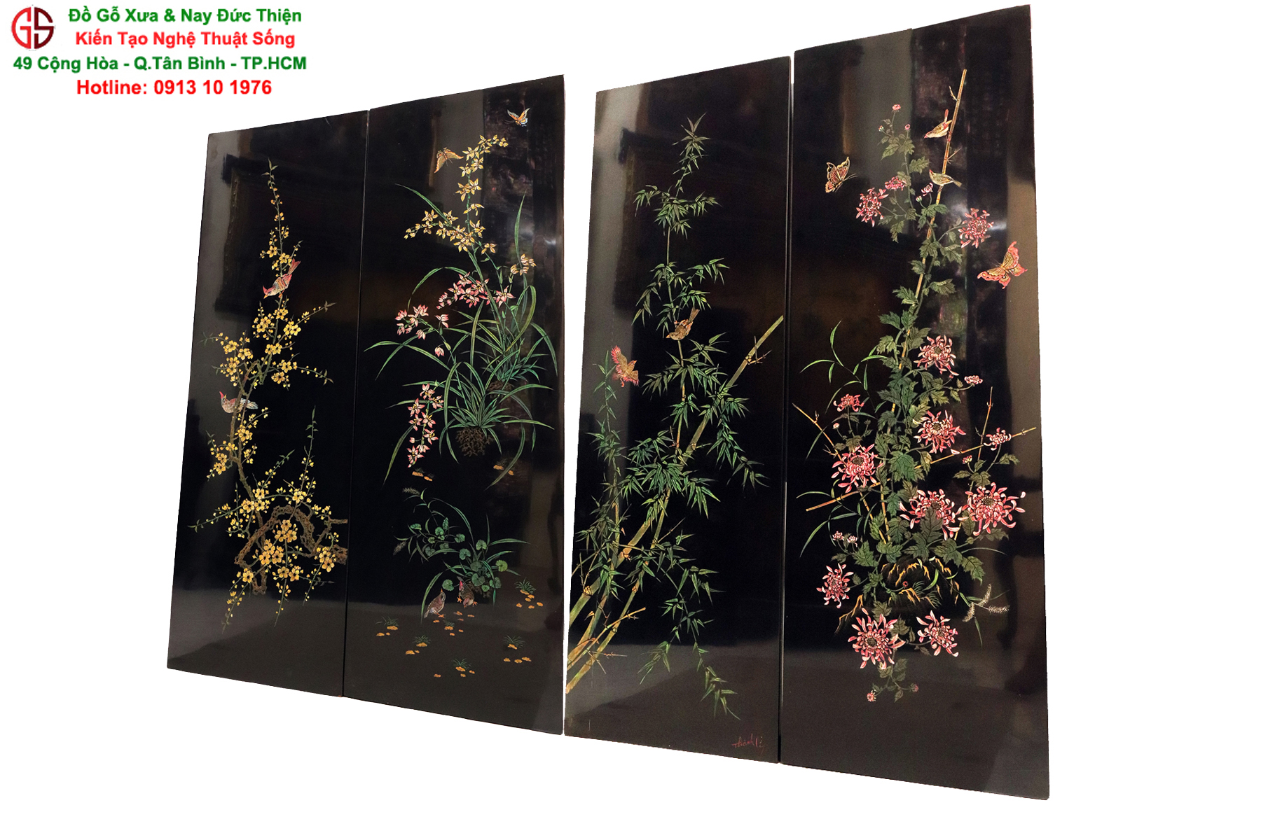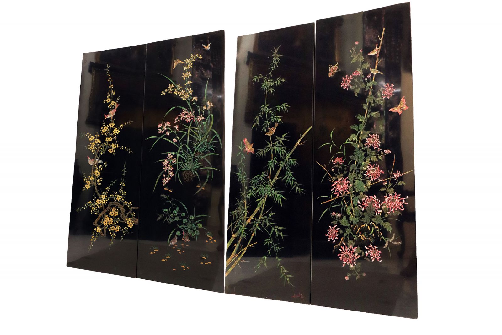Tranh Sơn Mài Khắc Trũng ( Mai - Lan - Cúc - Trúc )