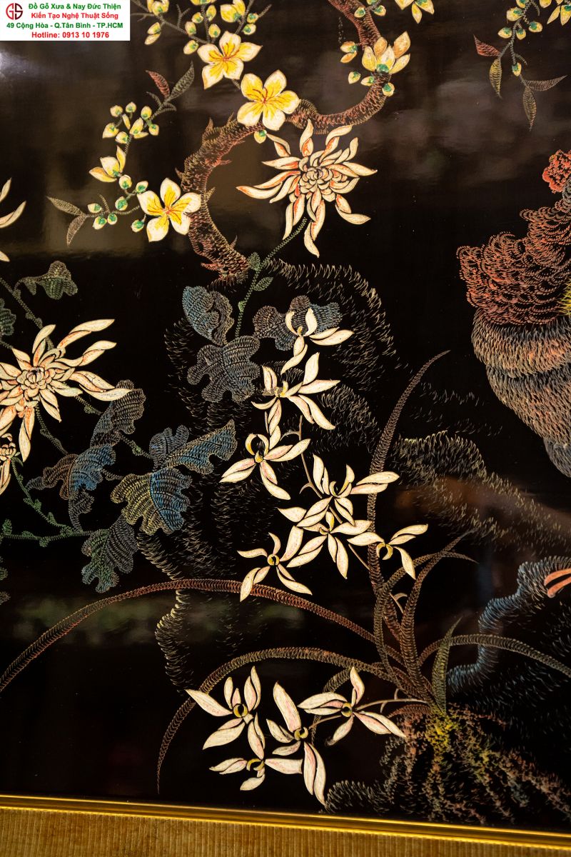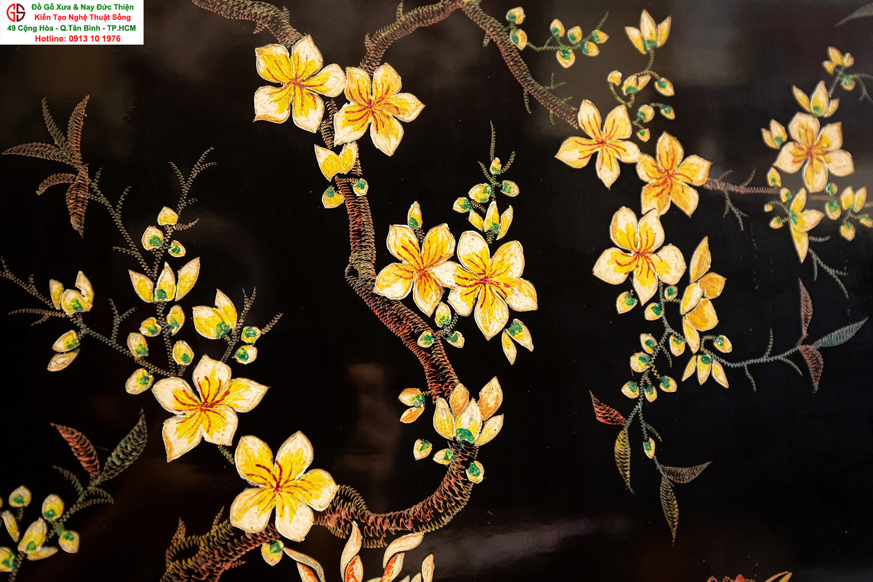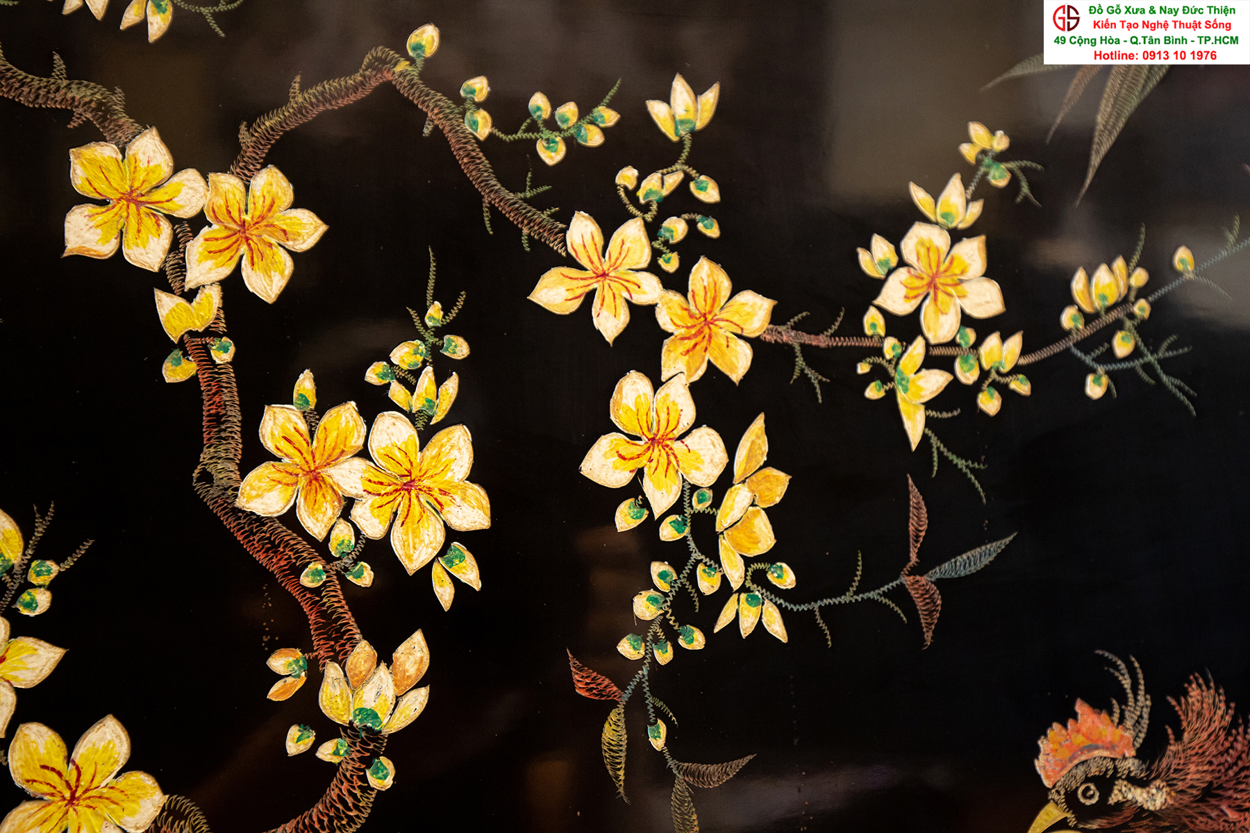 + Chất liệu: Gỗ Sơn mài + Thếp Vàng