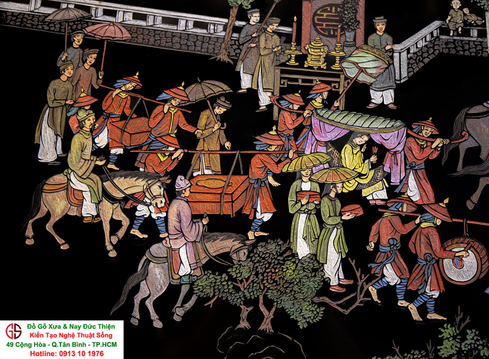 + Chất liệu: Gỗ sơn mài khắc trũng