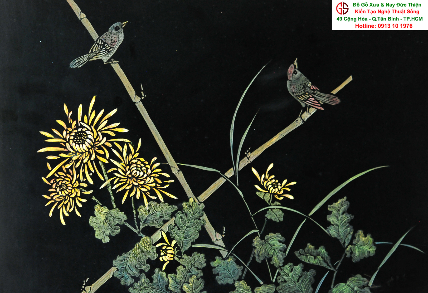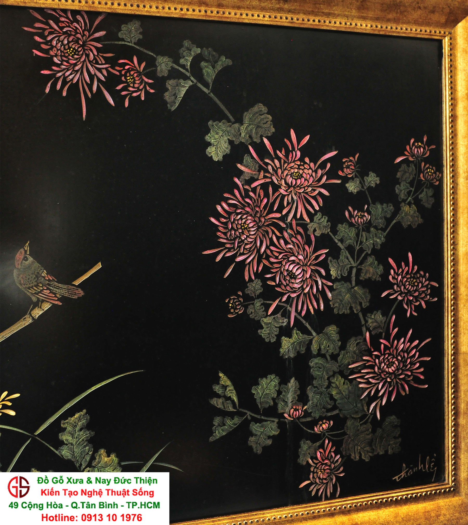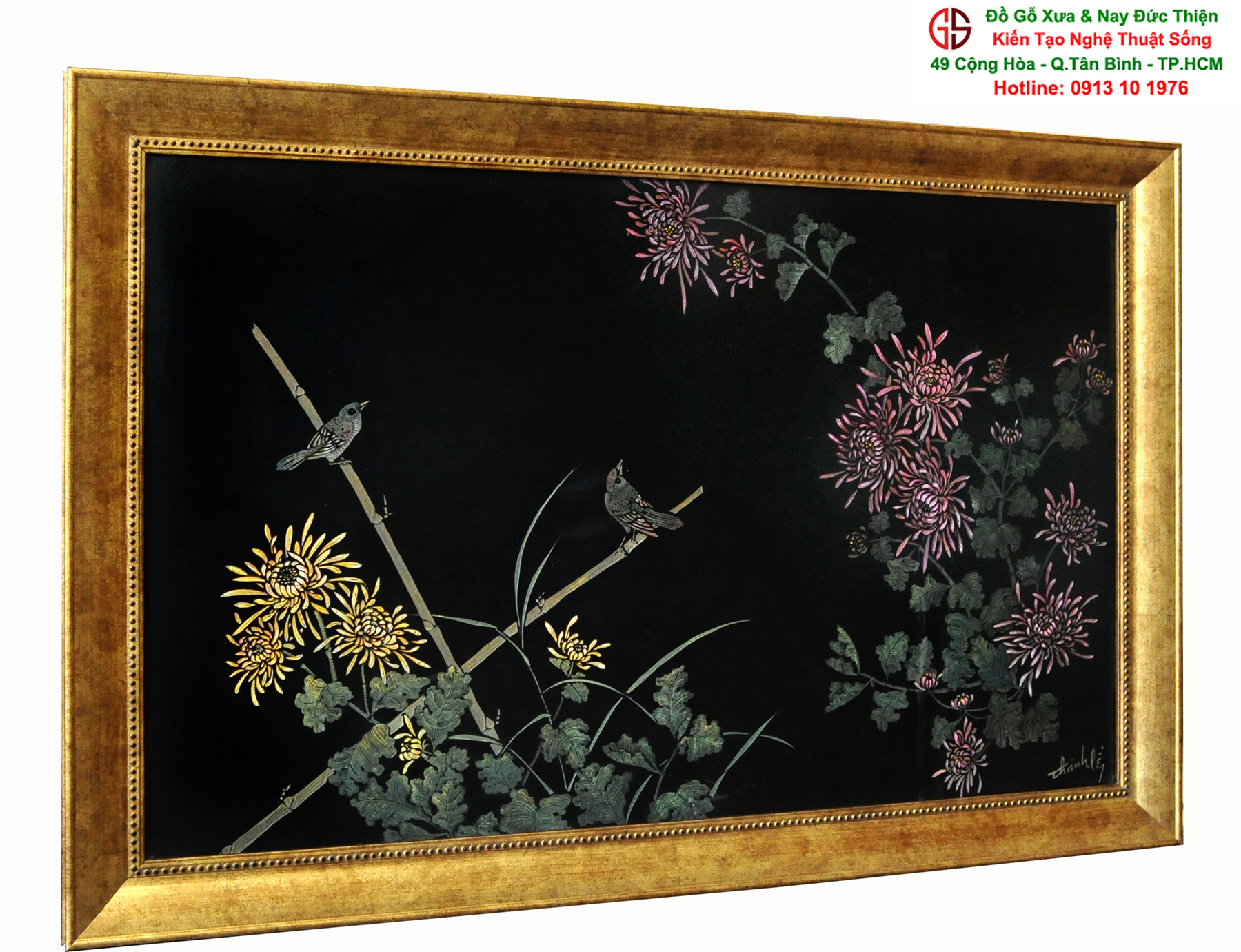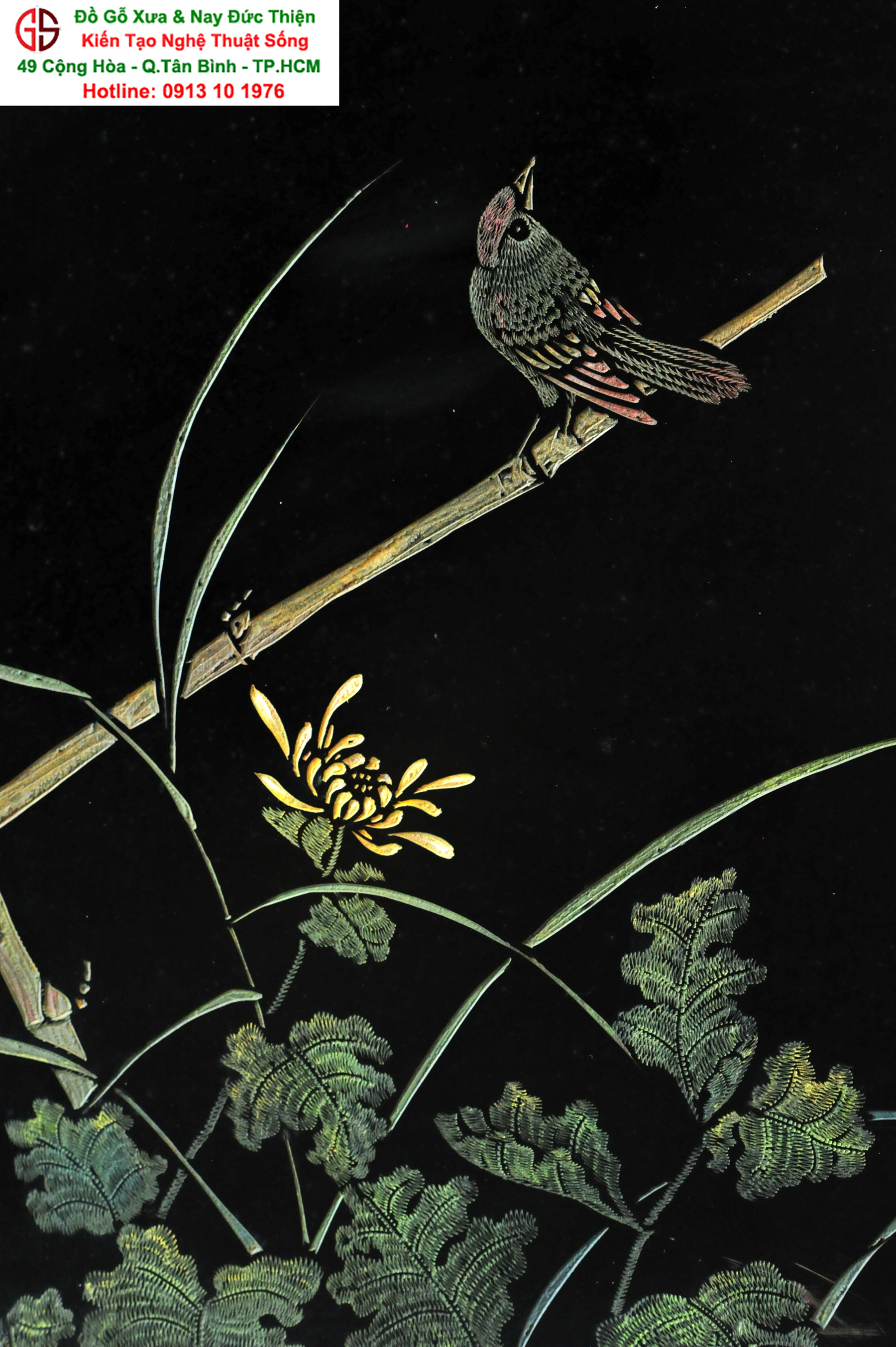 Tranh Sơn Mài Khắc Trũng Thành Lễ đề tài chim hoa
