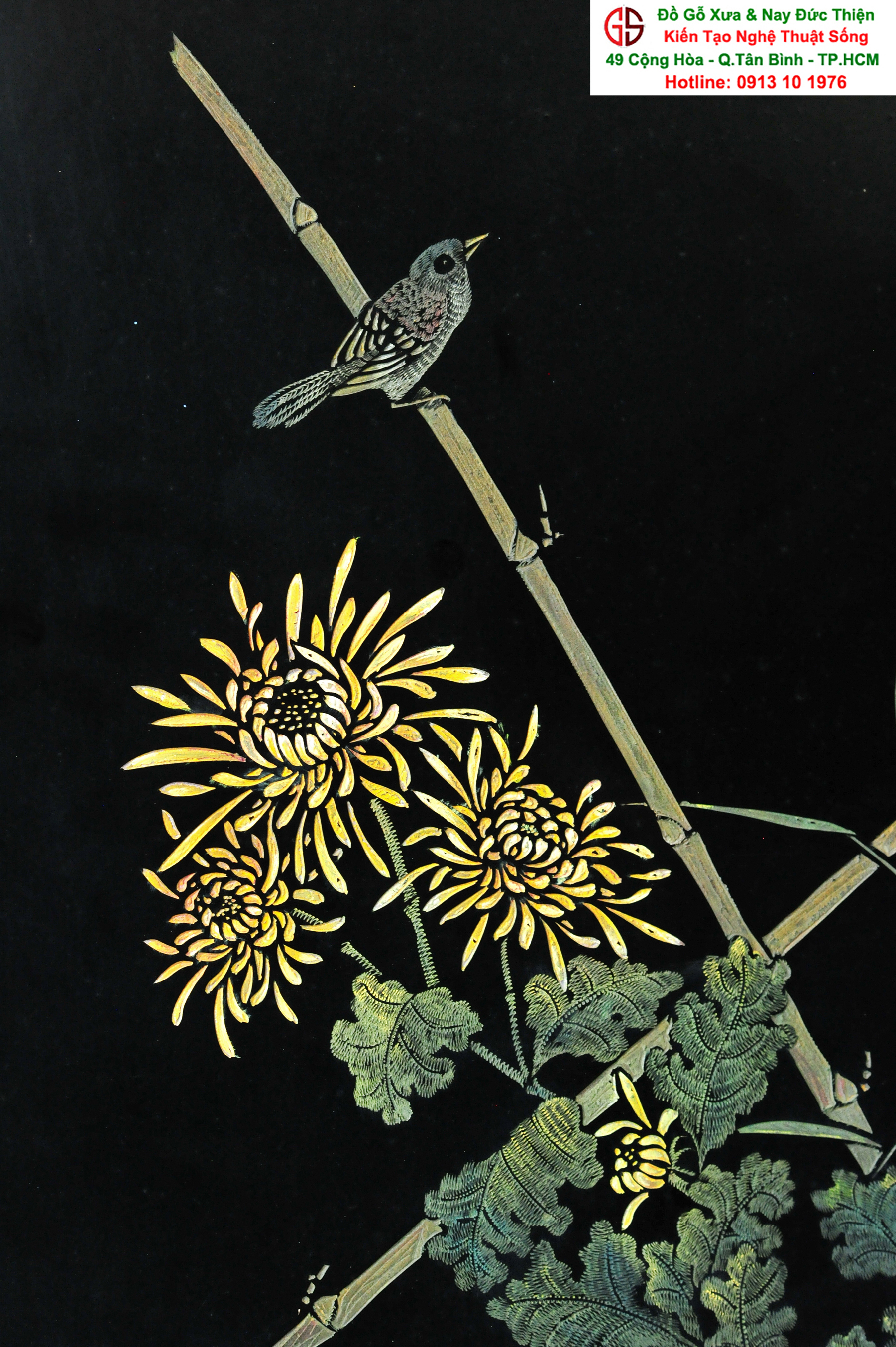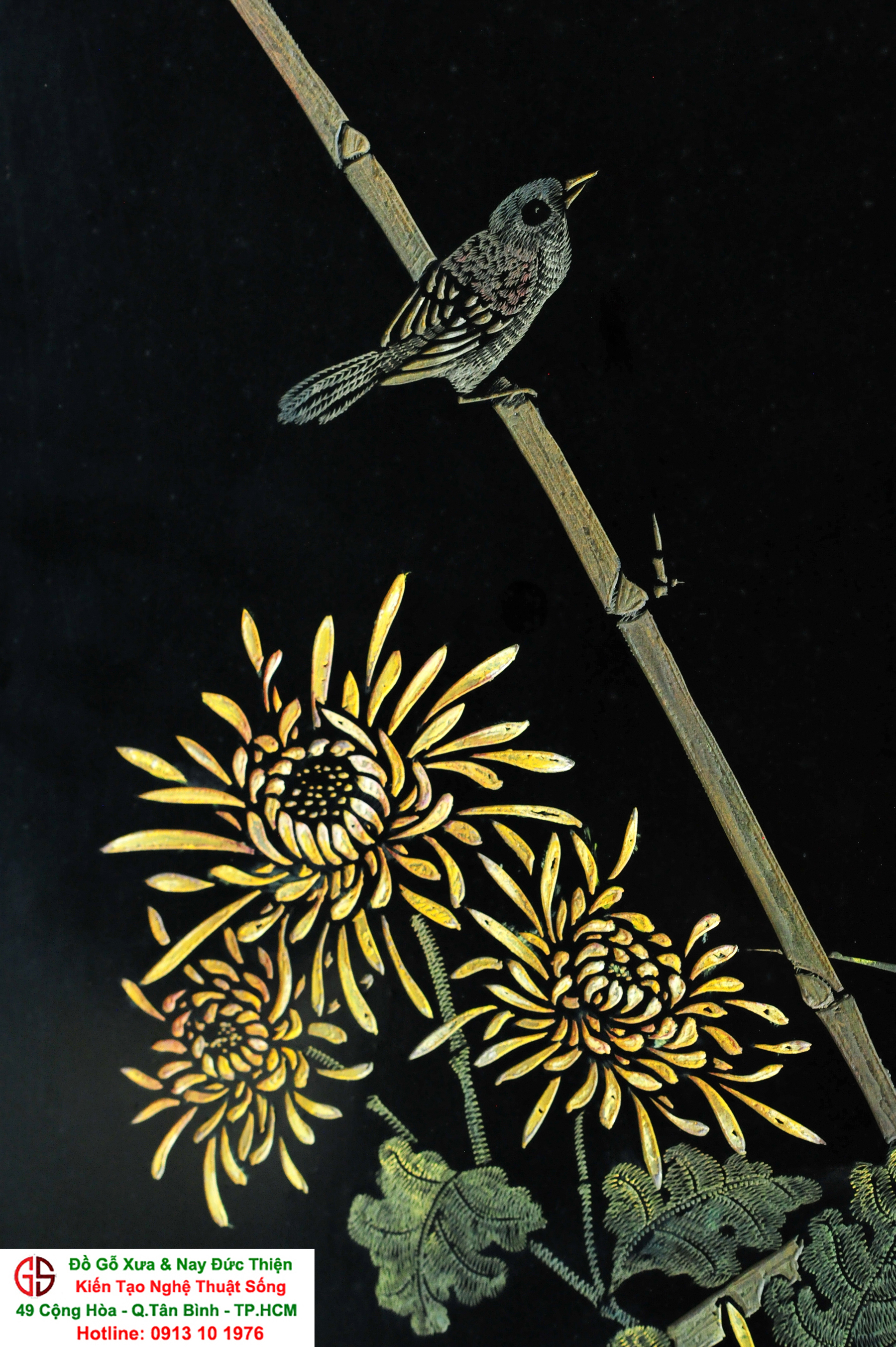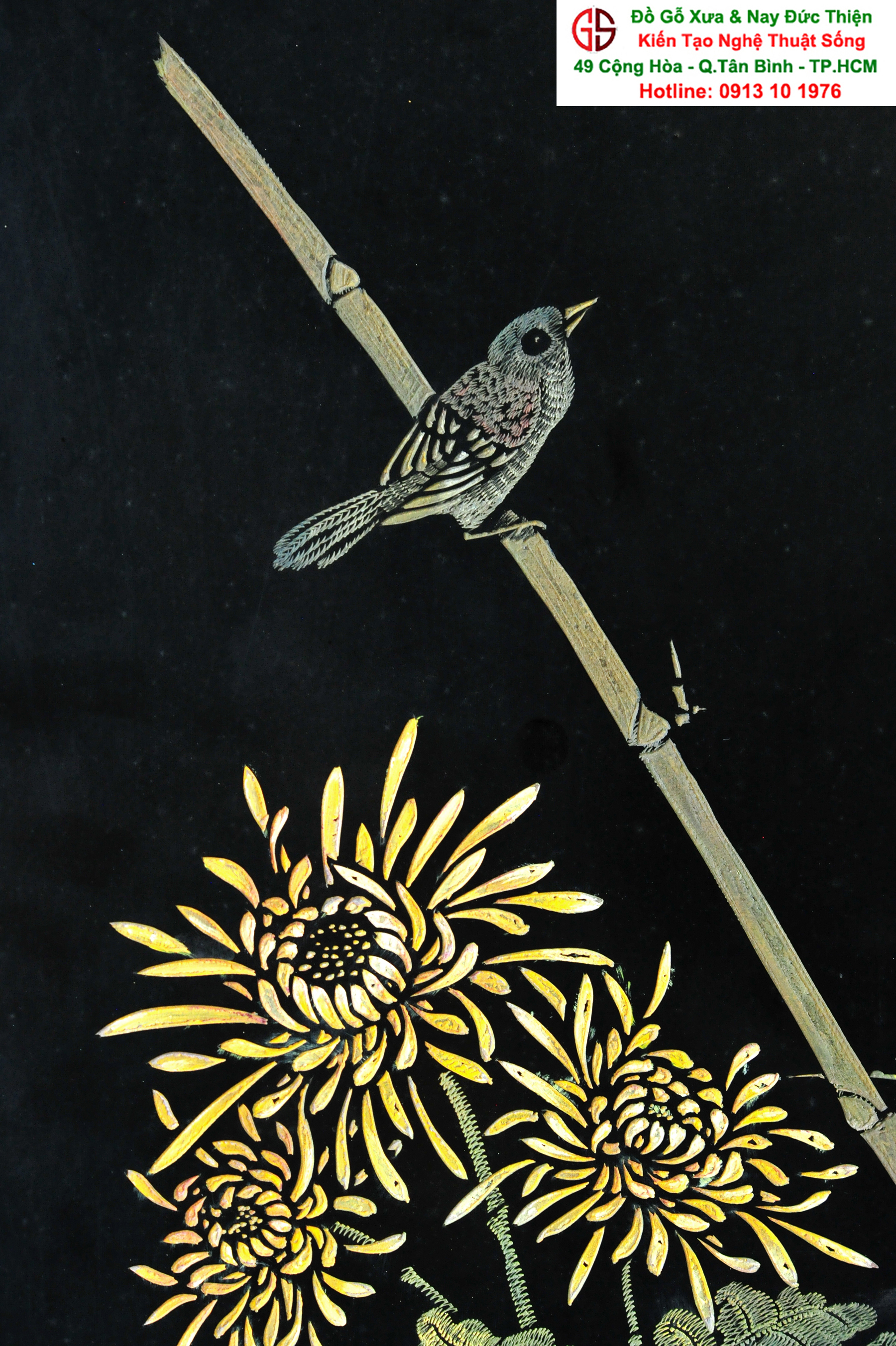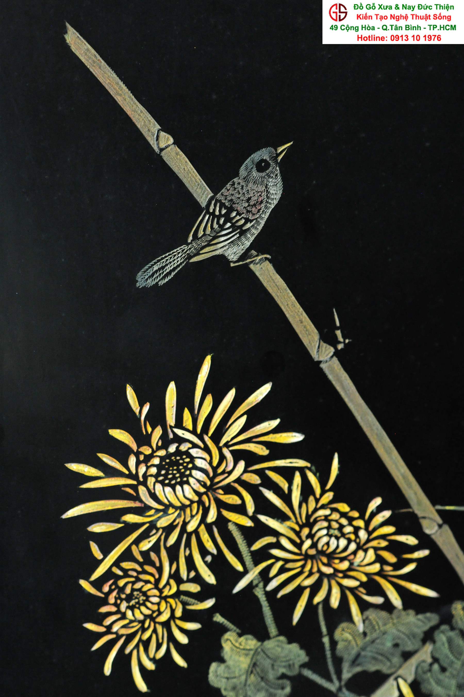 Tranh Sơn Mài Khắc Trũng Thành Lễ đề tài chim hoa