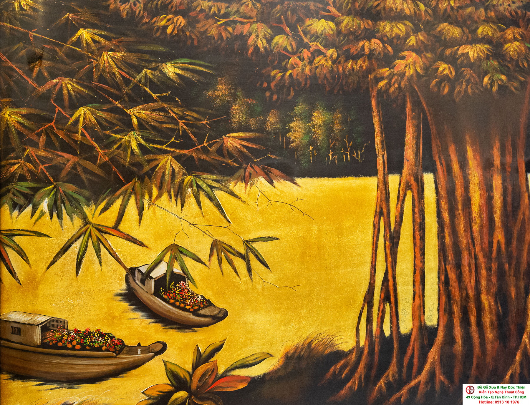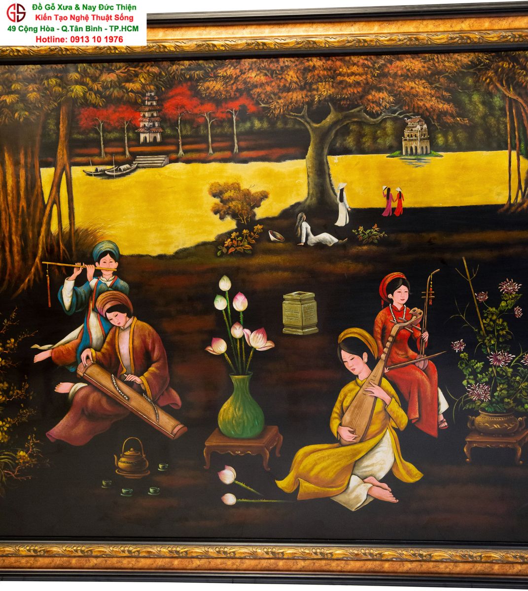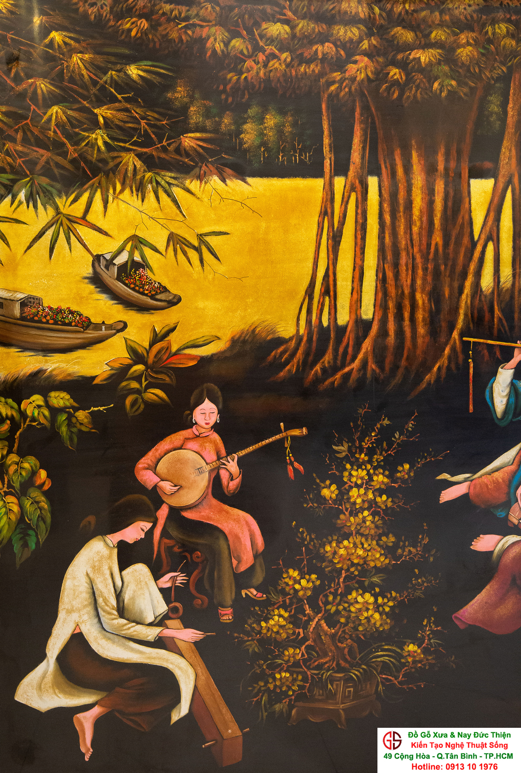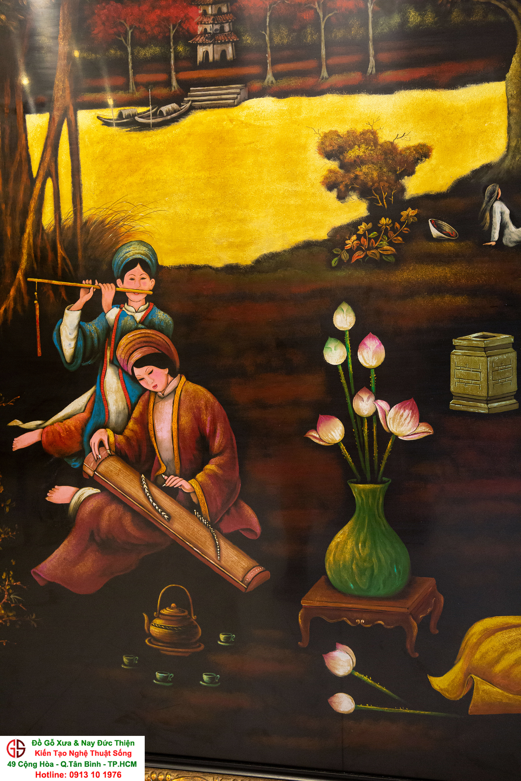 Tranh sơn mài thếp vàng đẹp tại quận Tân Bình,nơi mua bán trao trổi tranh sơn mài đẹp tại Sài Gòn