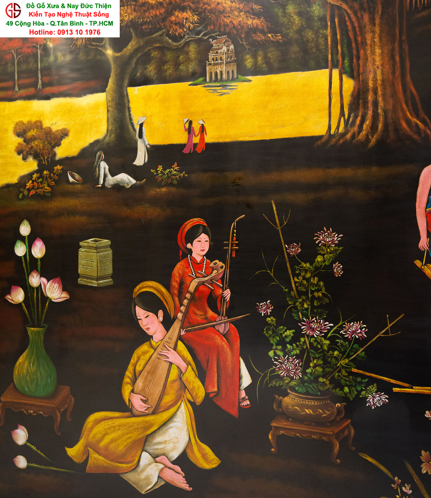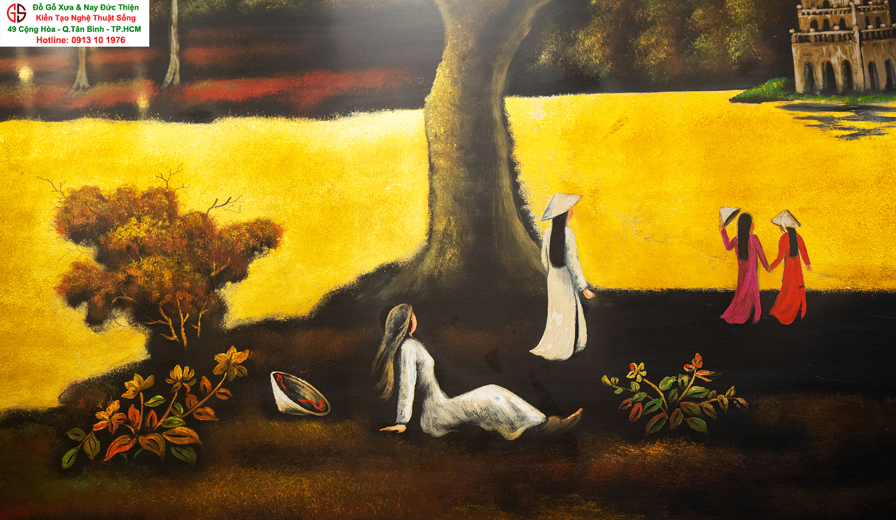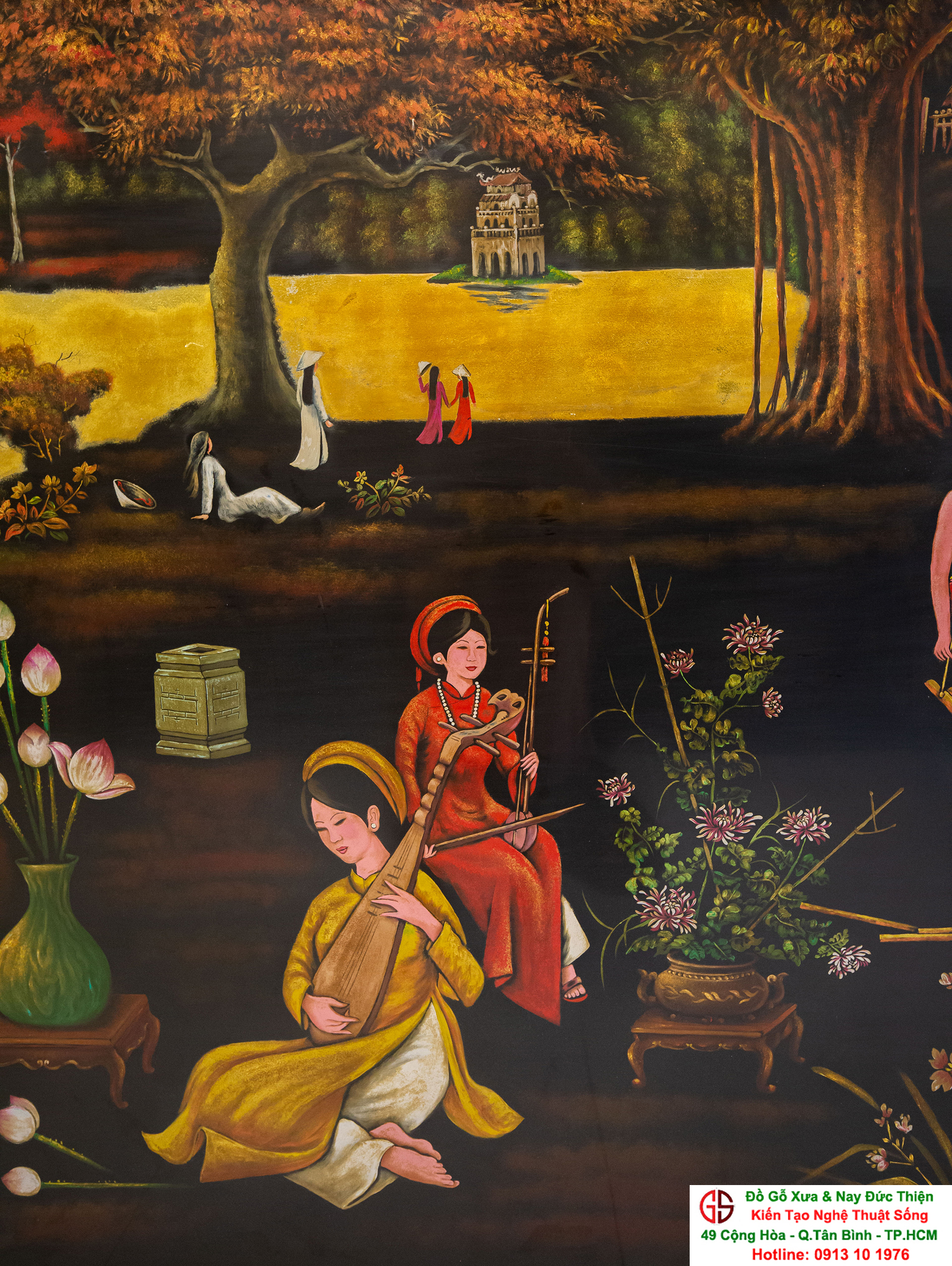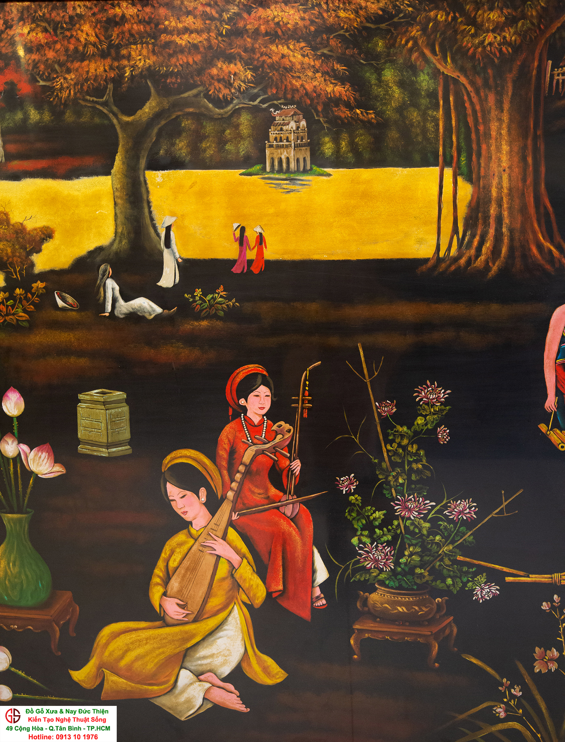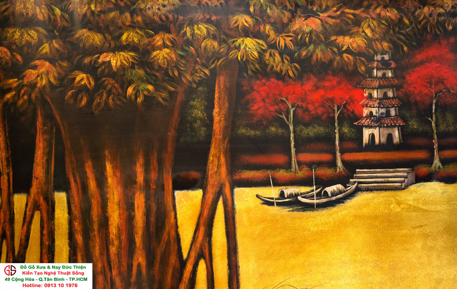 Tranh sơn mài thếp vàng đẹp tại quận Tân Bình,nơi mua bán trao trổi tranh sơn mài đẹp tại Sài Gòn