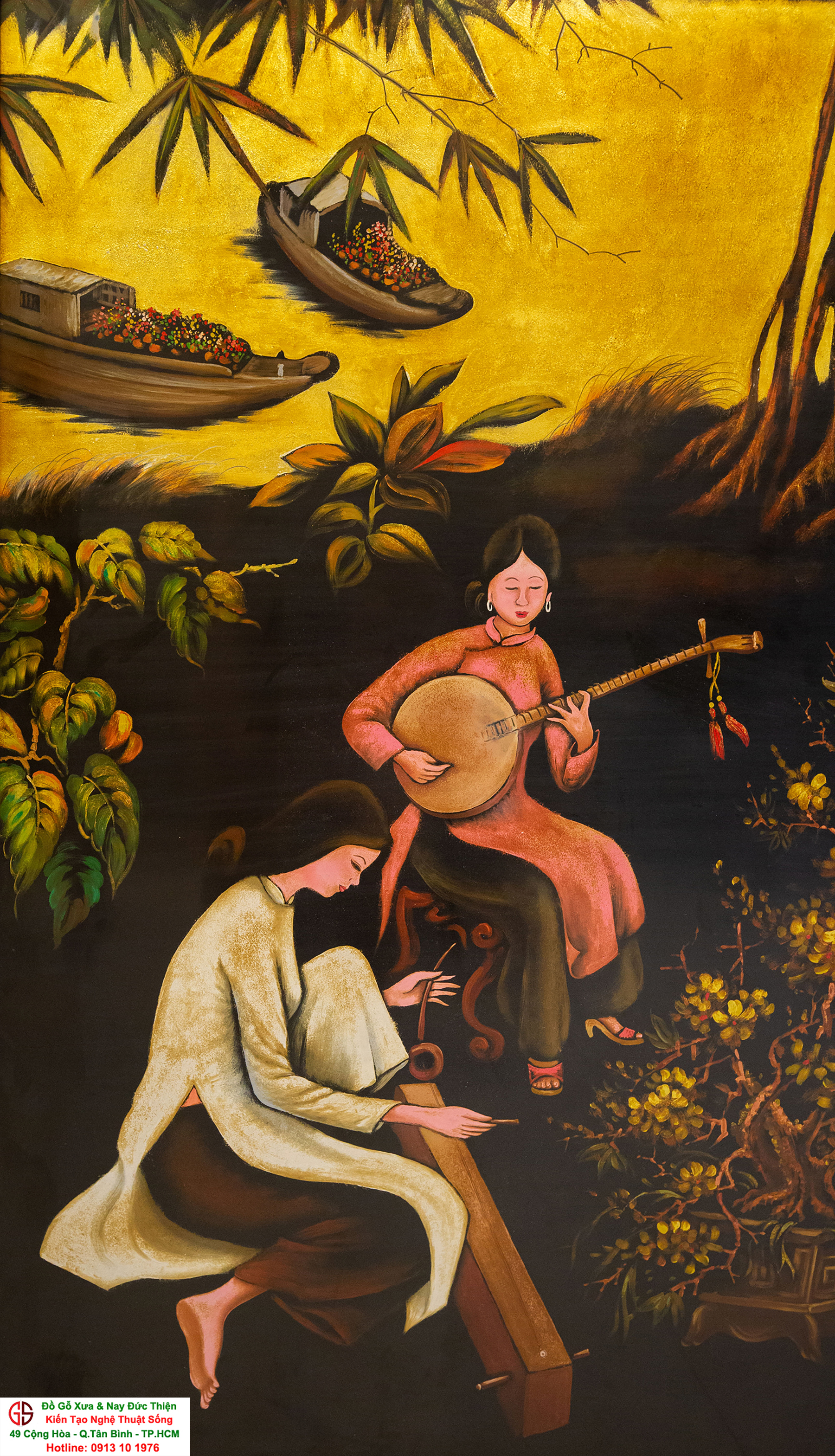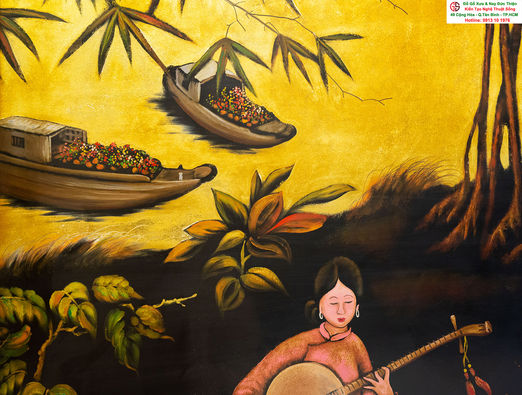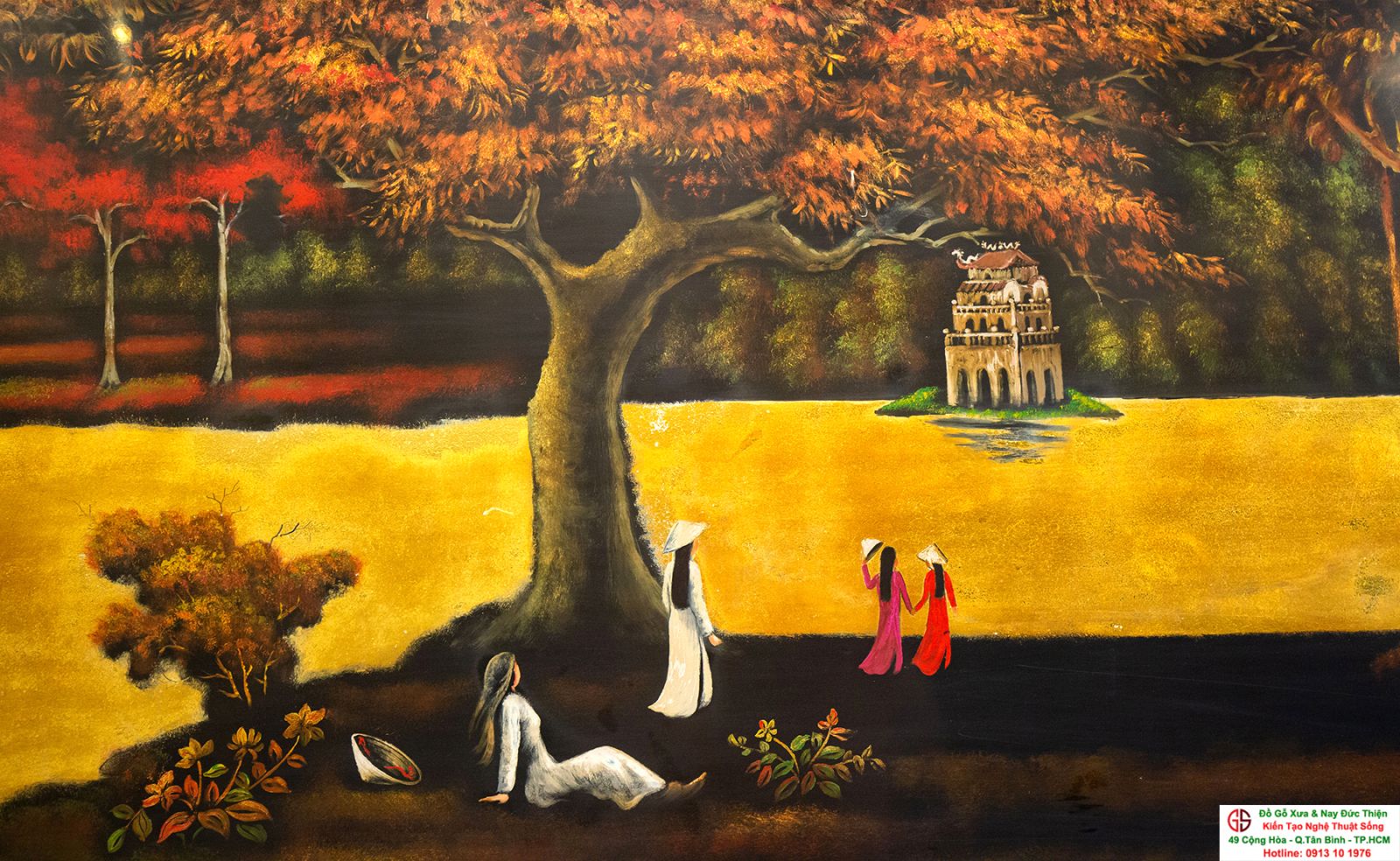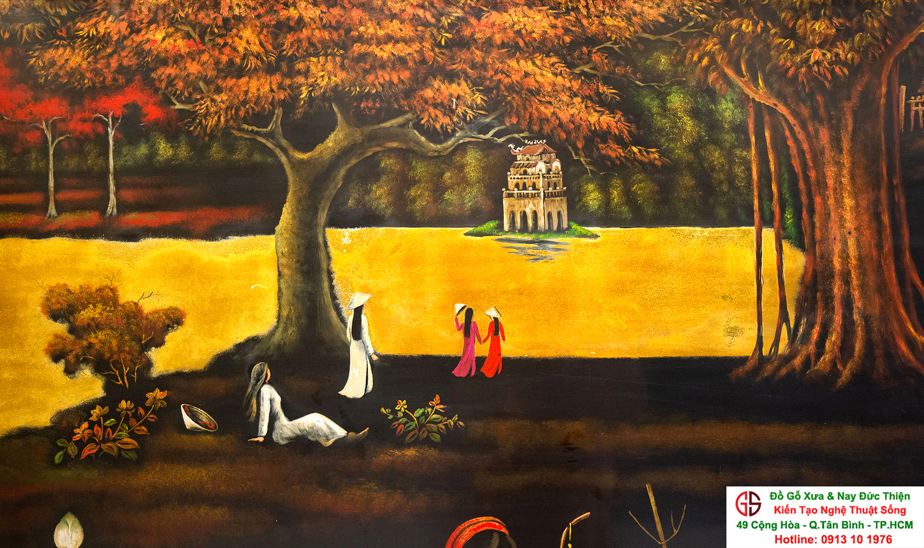 Tranh sơn mài thếp vàng đẹp tại quận Tân Bình,nơi mua bán trao trổi tranh sơn mài đẹp tại Sài Gòn