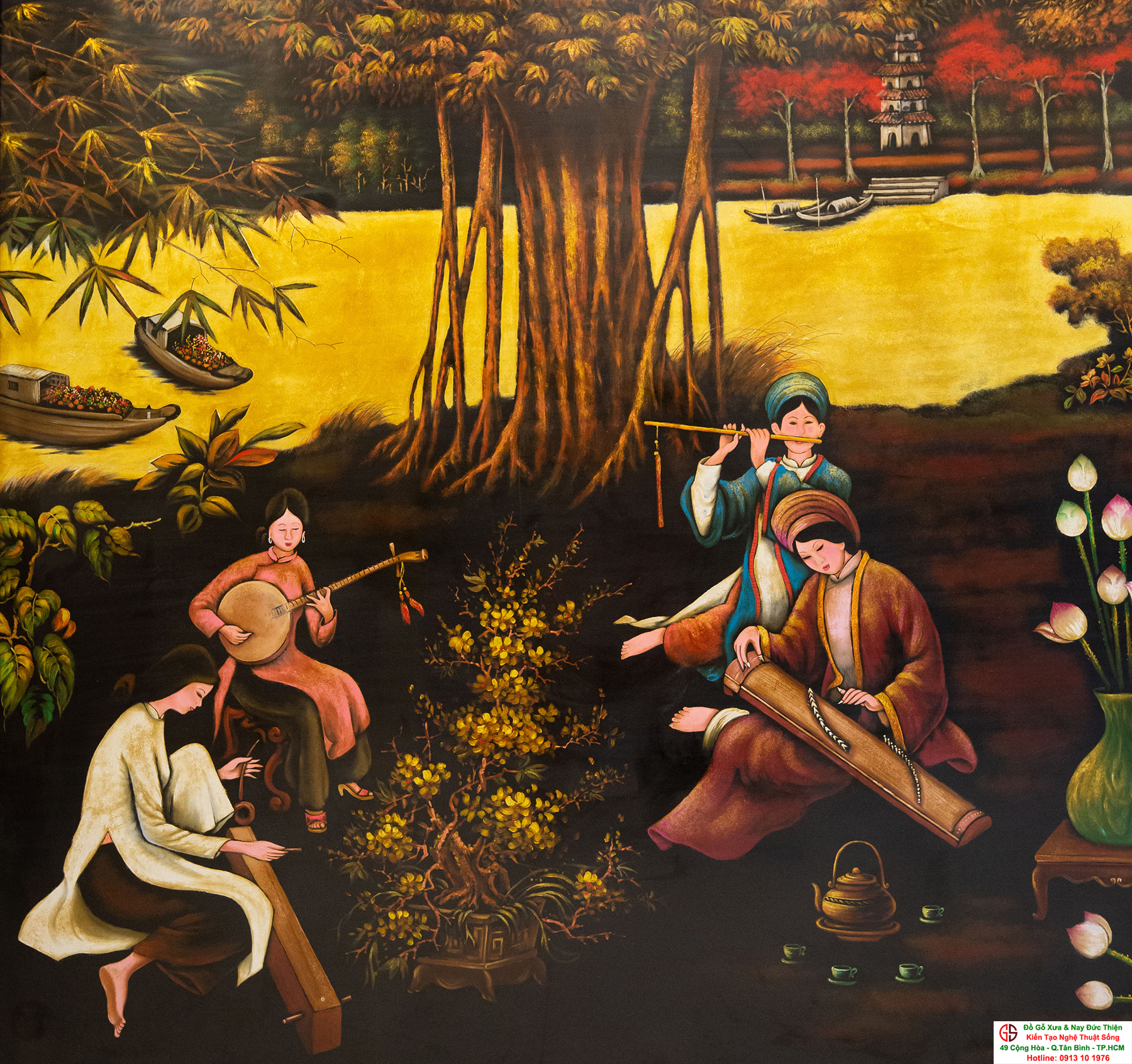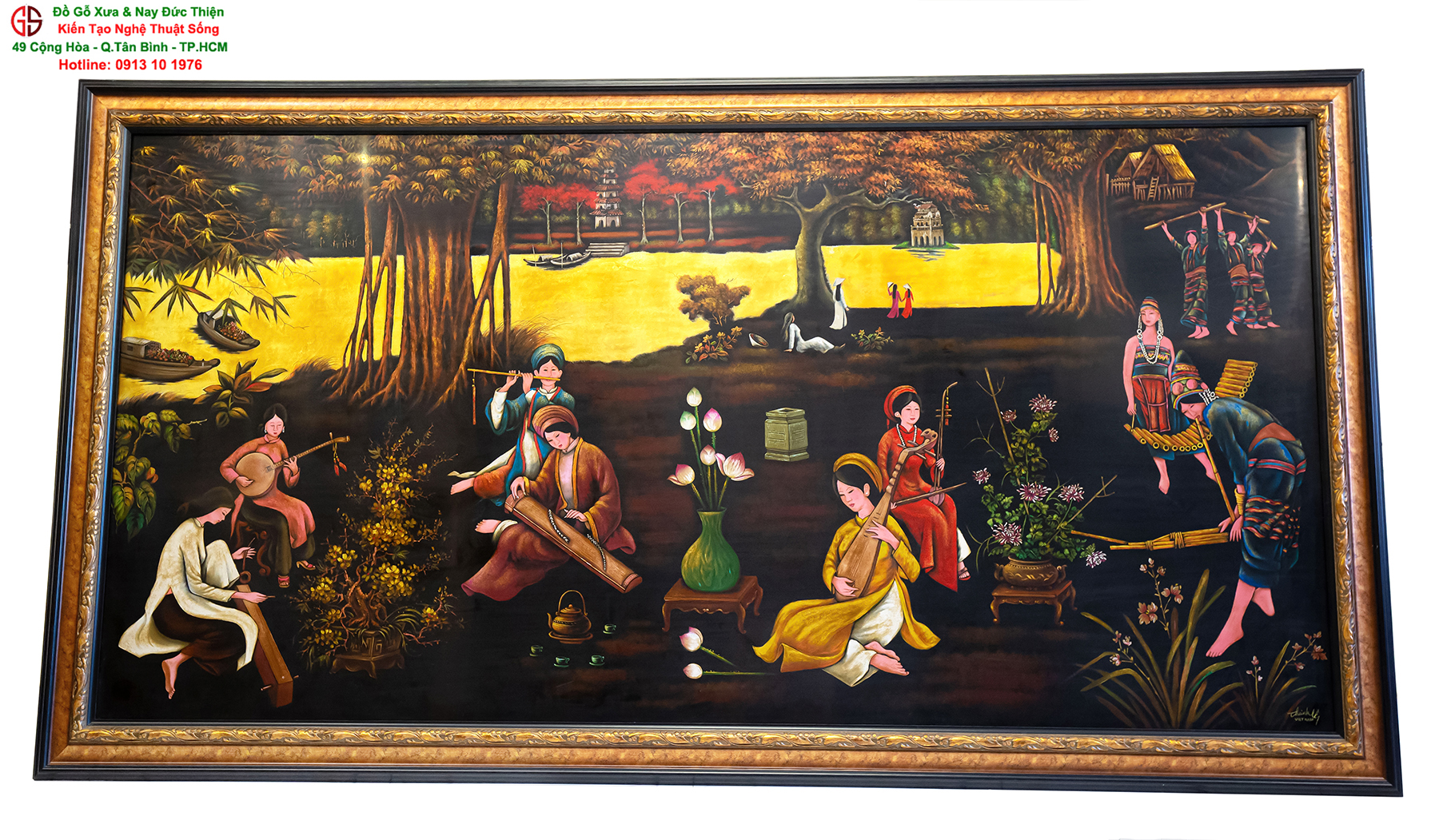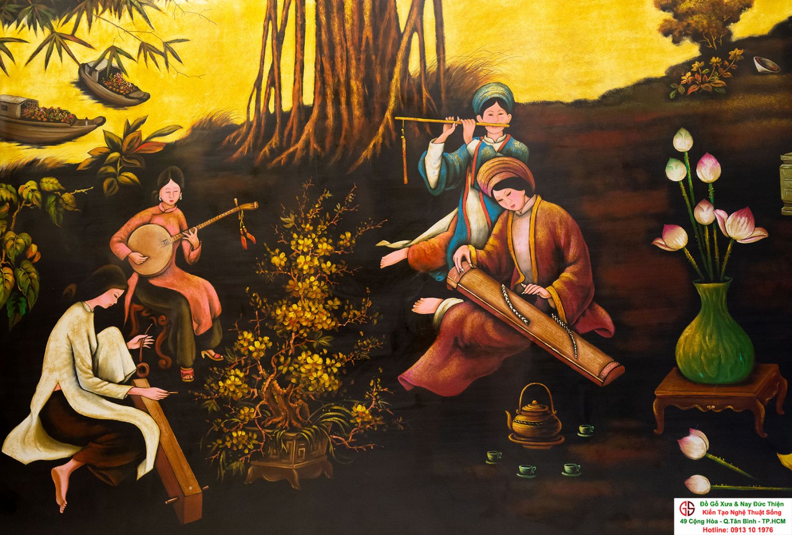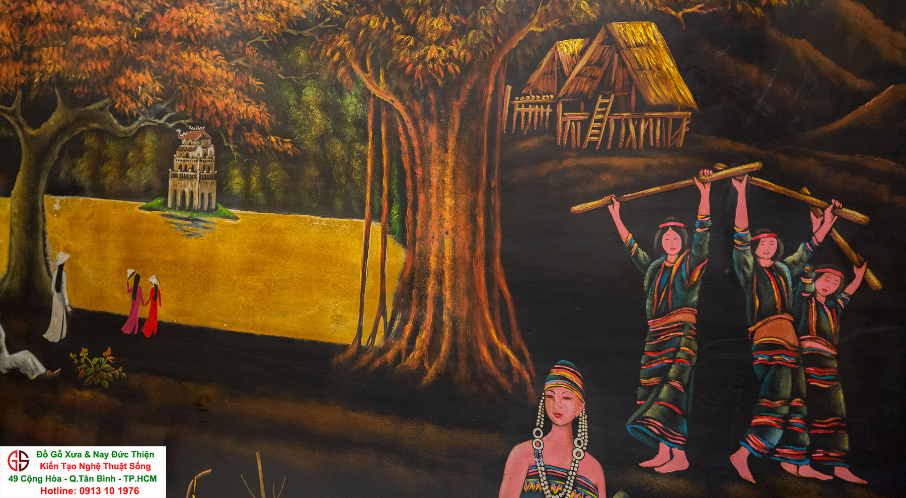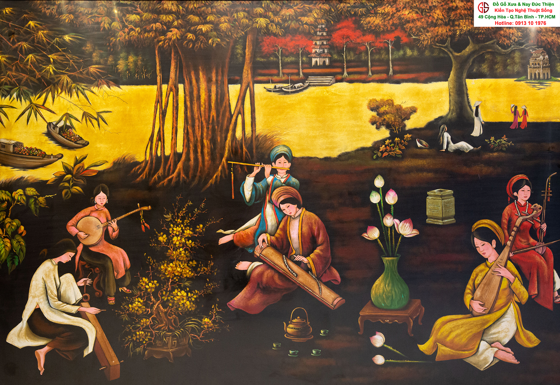 Tranh sơn mài thếp vàng đẹp tại quận Tân Bình,nơi mua bán trao trổi tranh sơn mài đẹp tại Sài Gòn