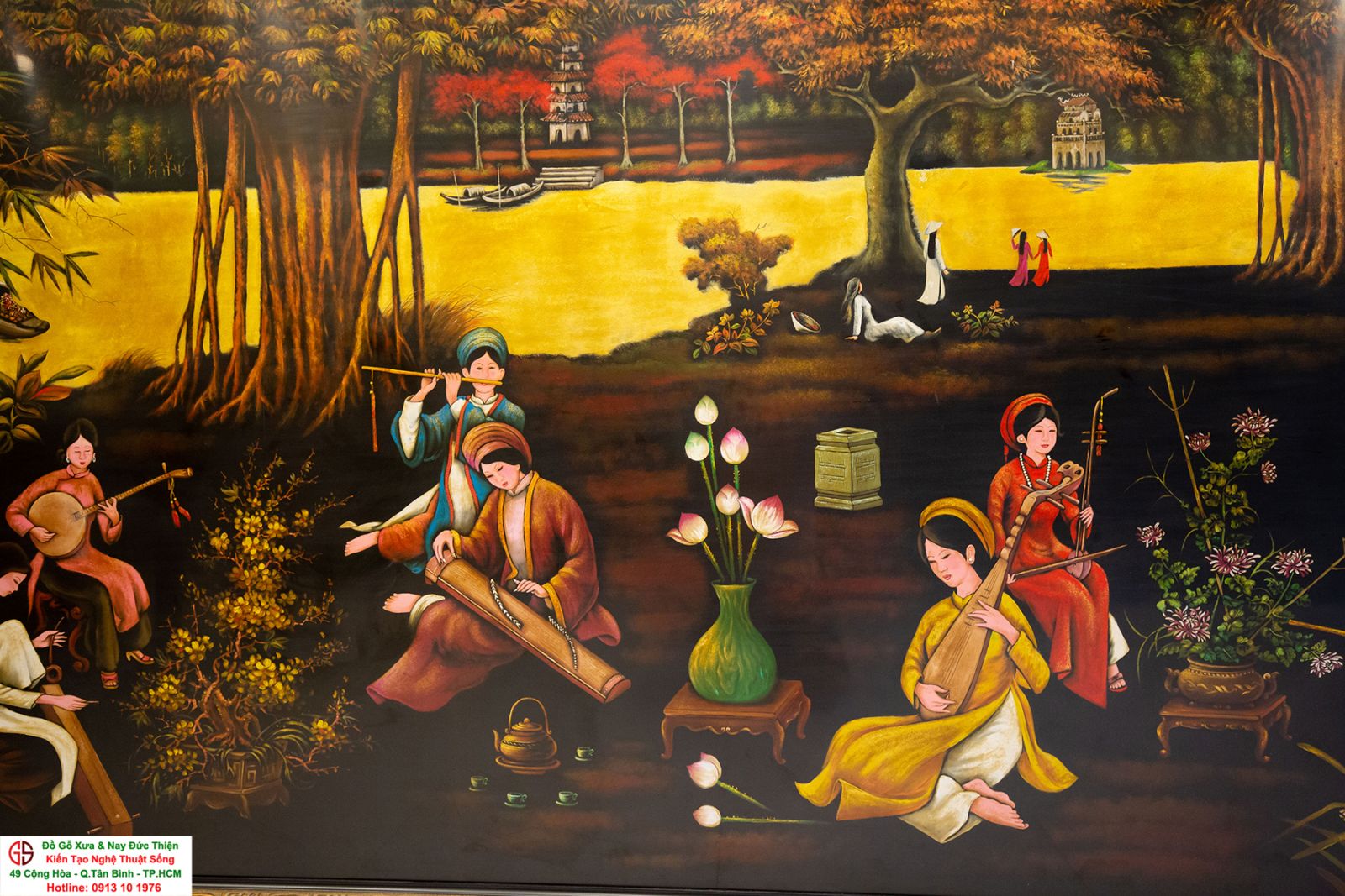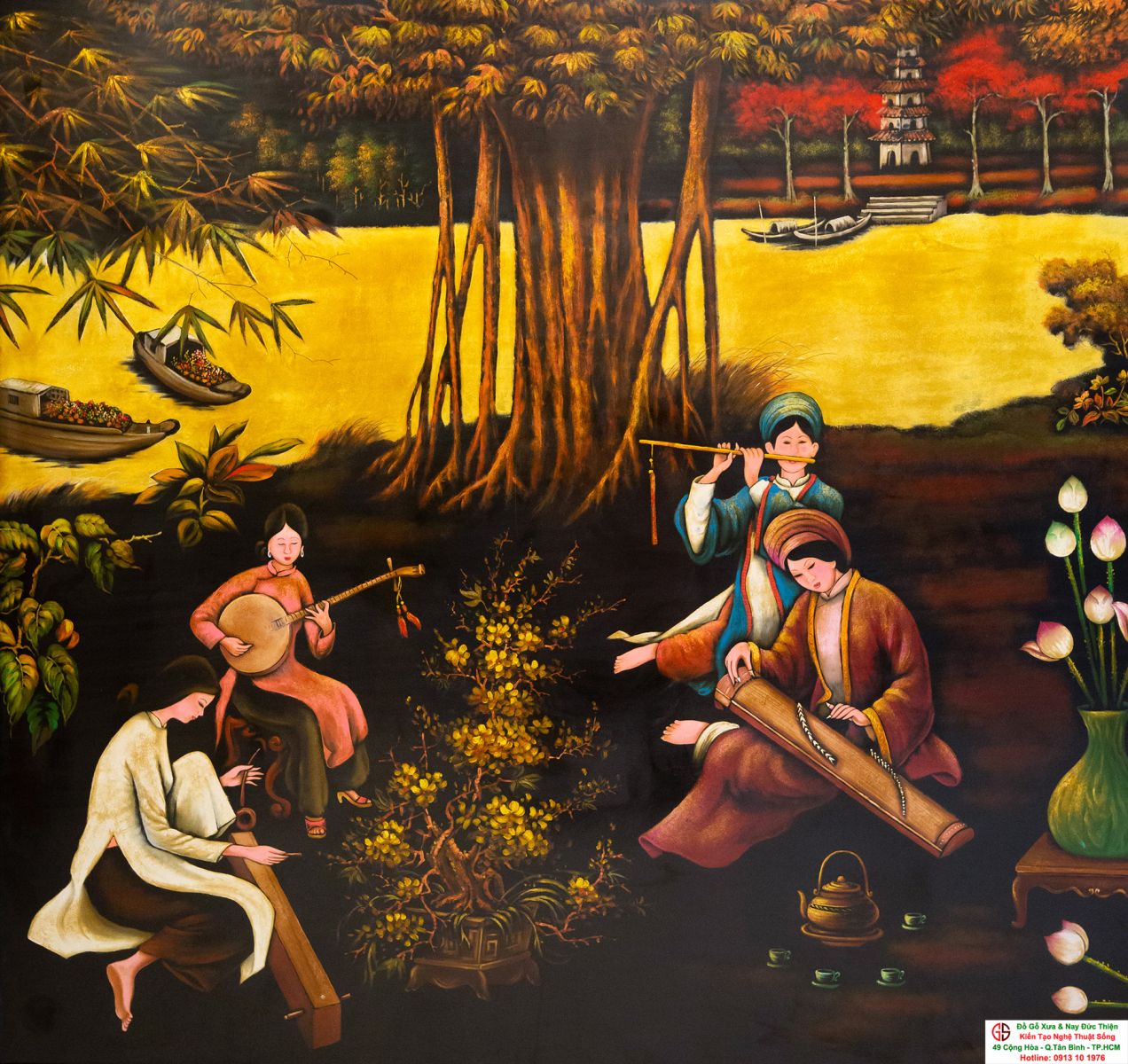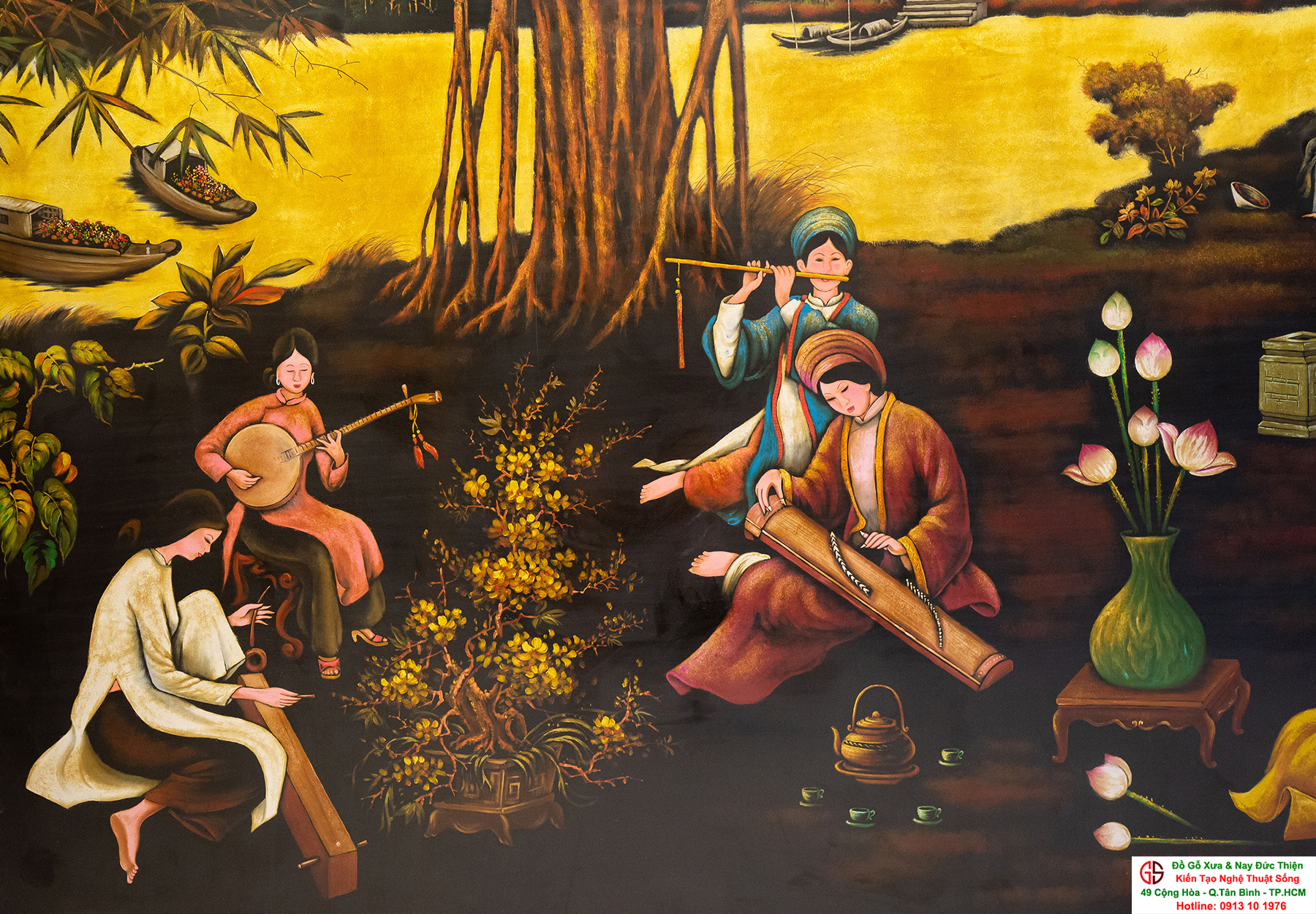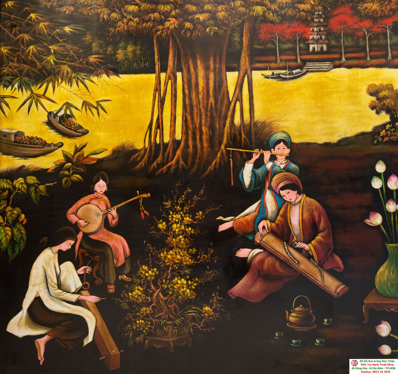 Tranh sơn mài thếp vàng đẹp tại quận Tân Bình,nơi mua bán trao trổi tranh sơn mài đẹp tại Sài Gòn