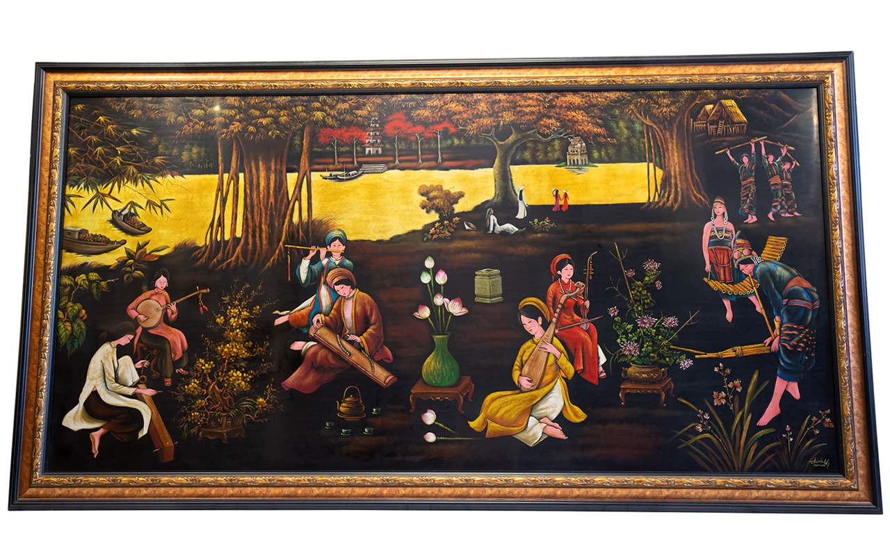 - Tranh sơn mài: tranh sơn mài sơn thủy hữu tình, tranh sơn mài của các họa sĩ nổi tiếng: Thành Lễ, Trần Hà...