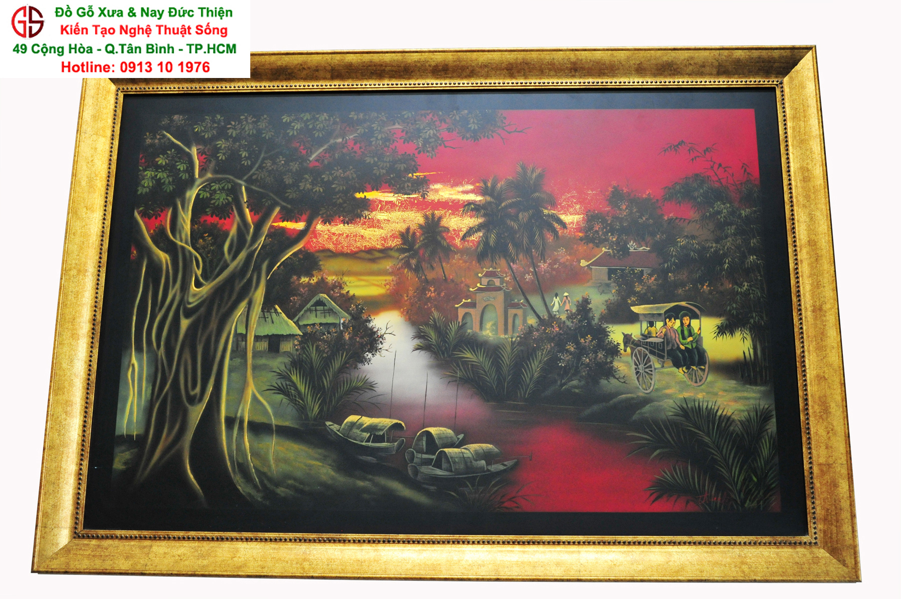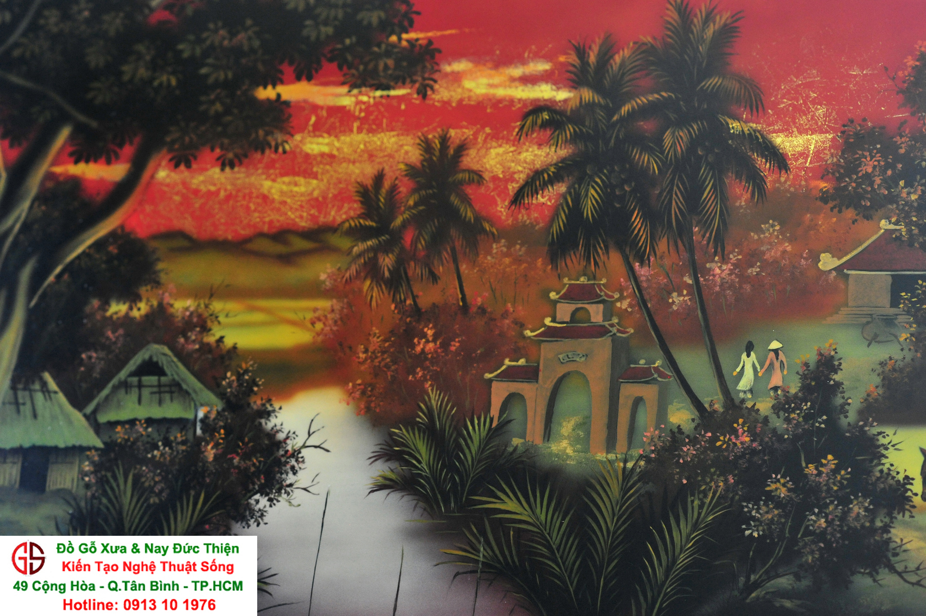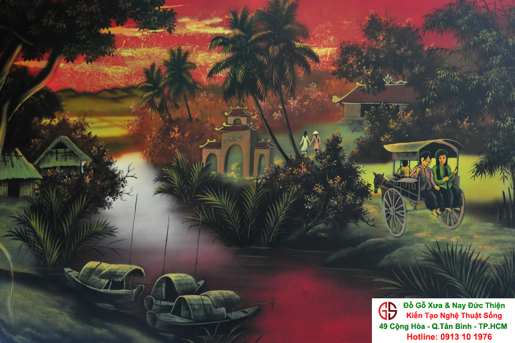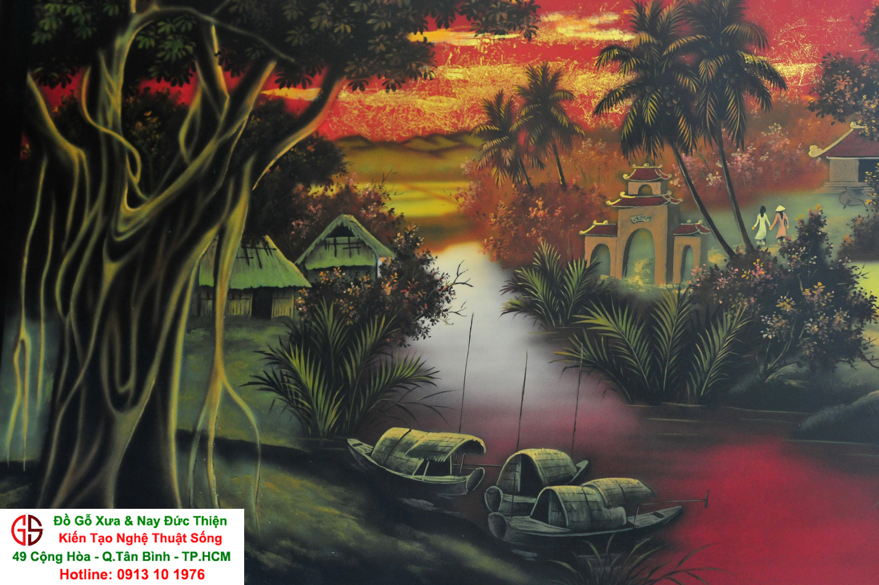 - Tranh sơn mài: tranh sơn mài sơn thủy hữu tình, tranh sơn mài của các họa sĩ nổi tiếng: Thành Lễ, Trần Hà...