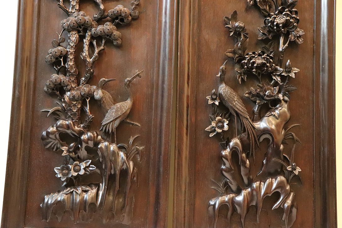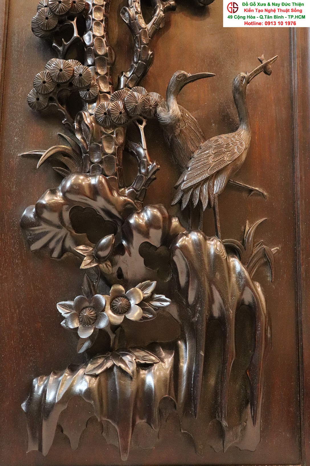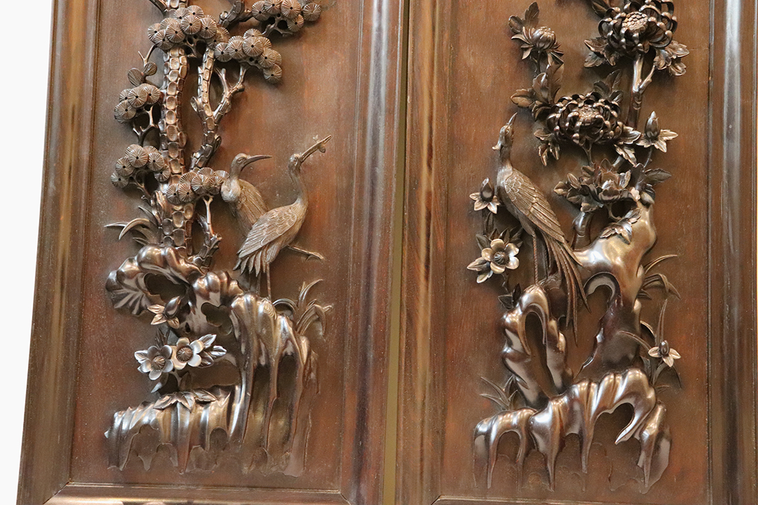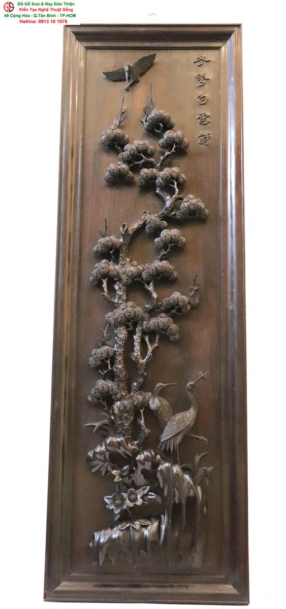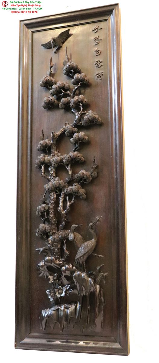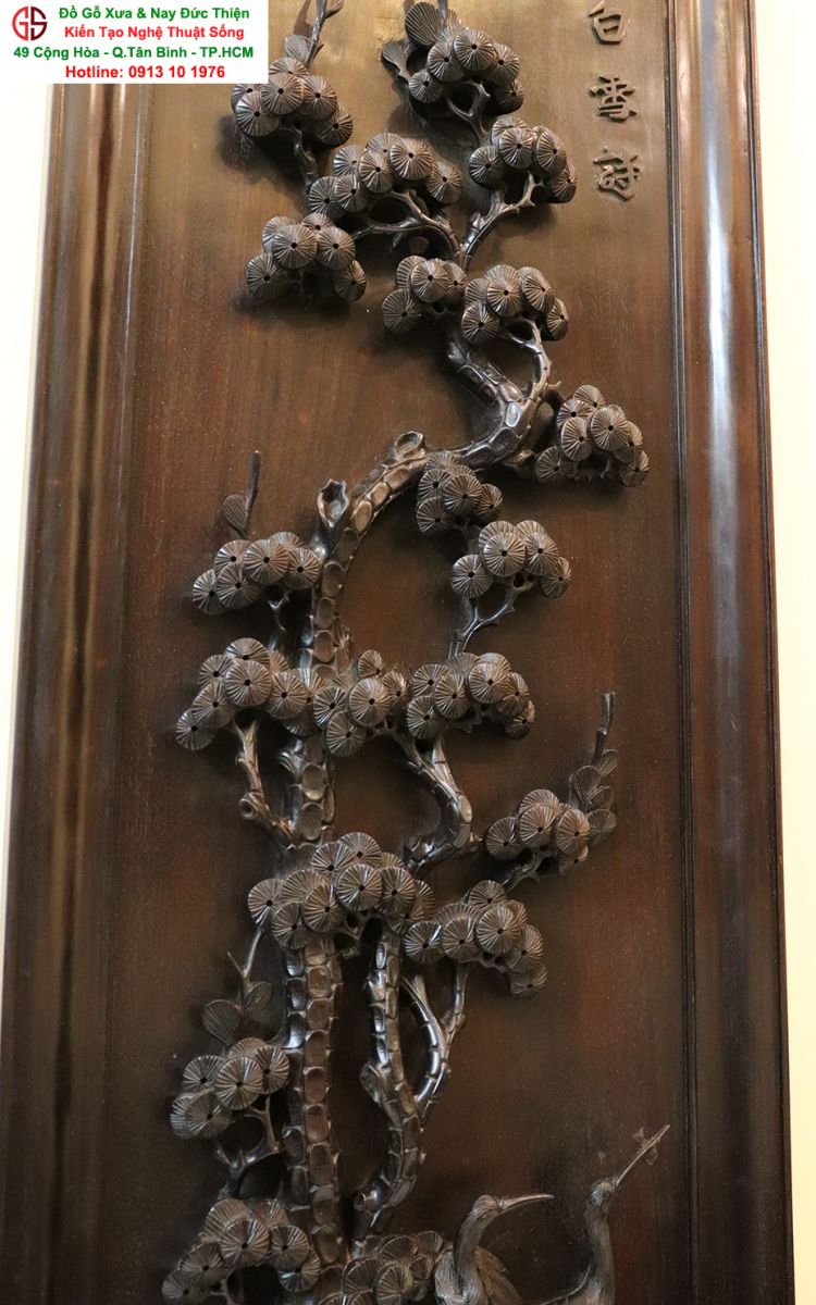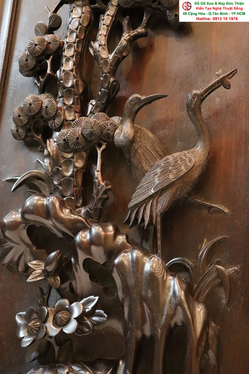 Chi tiết bức tranh chạm tùng hạc: