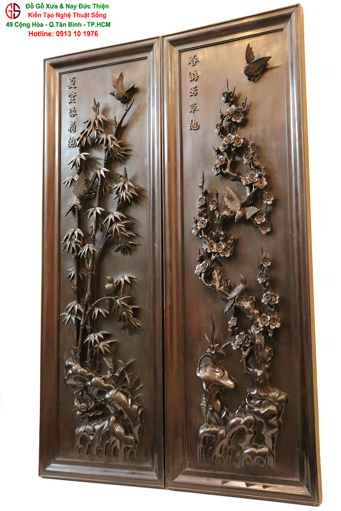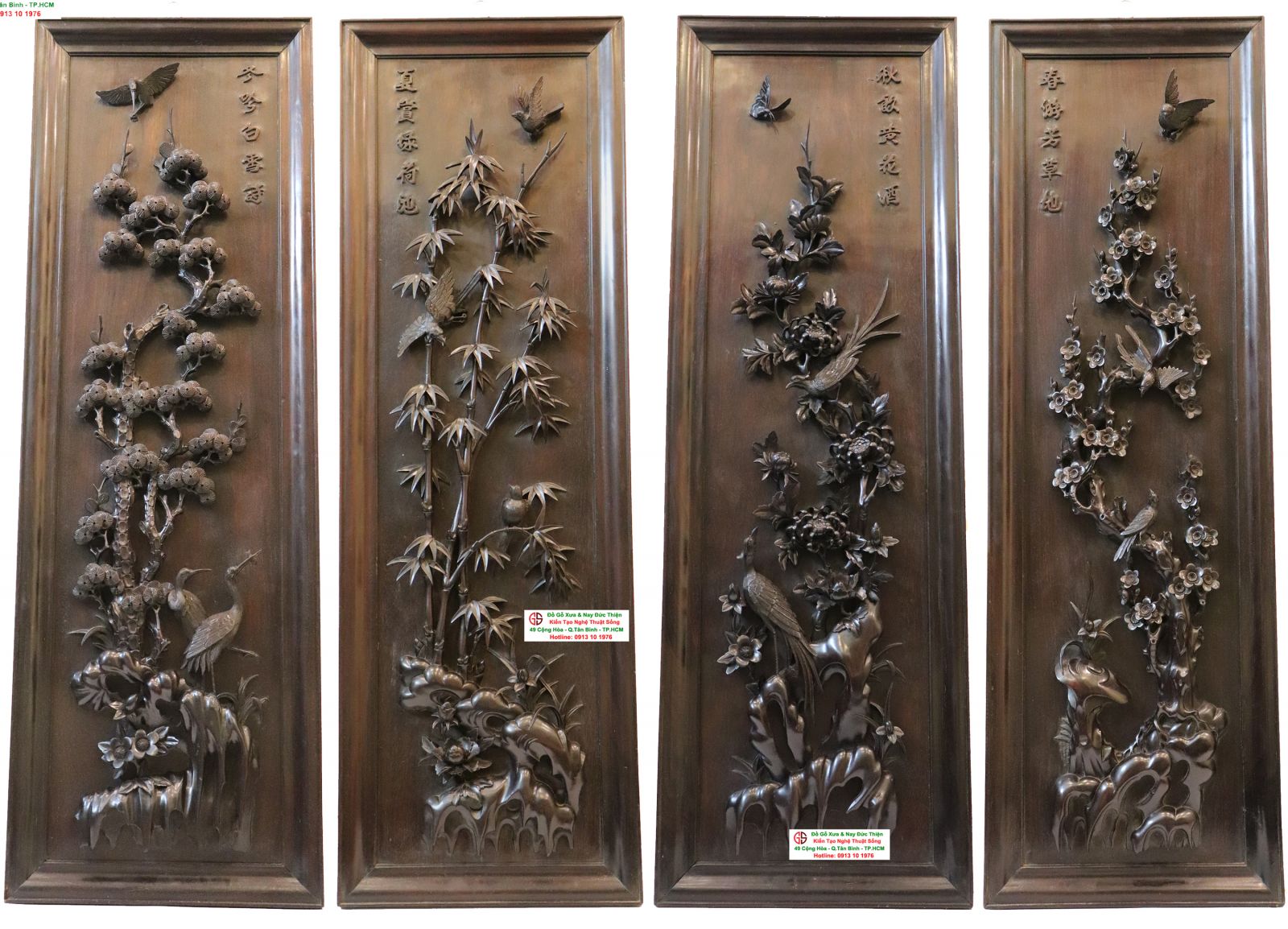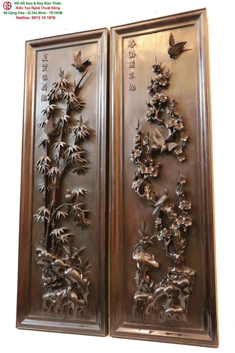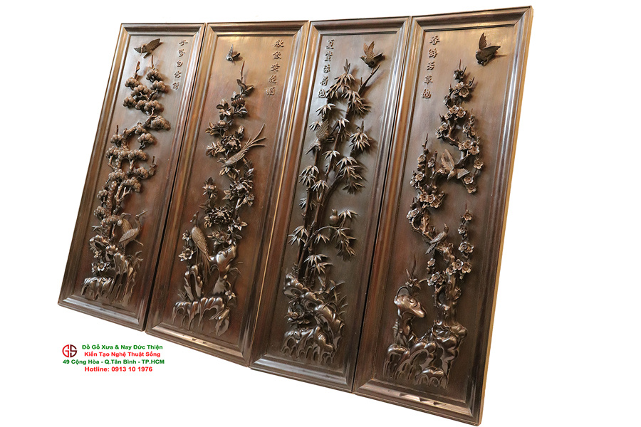 Hôm nay, Đồ Gỗ xưa và nay Đức Thiện sẽ giới thiệu với bạn một bộ tranh chạm nổi kênh bong đẹp, một chuẩn mực để bạn lựa chọn một bộ tranh tứ quý đẹp ưng ý cho gia đình.