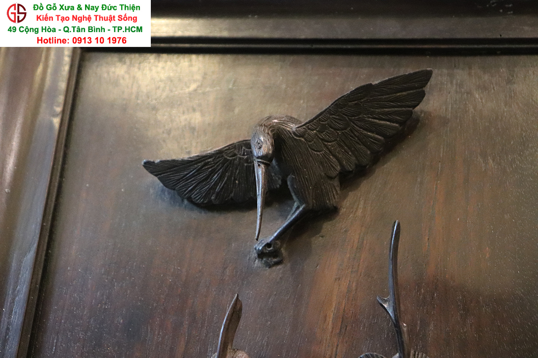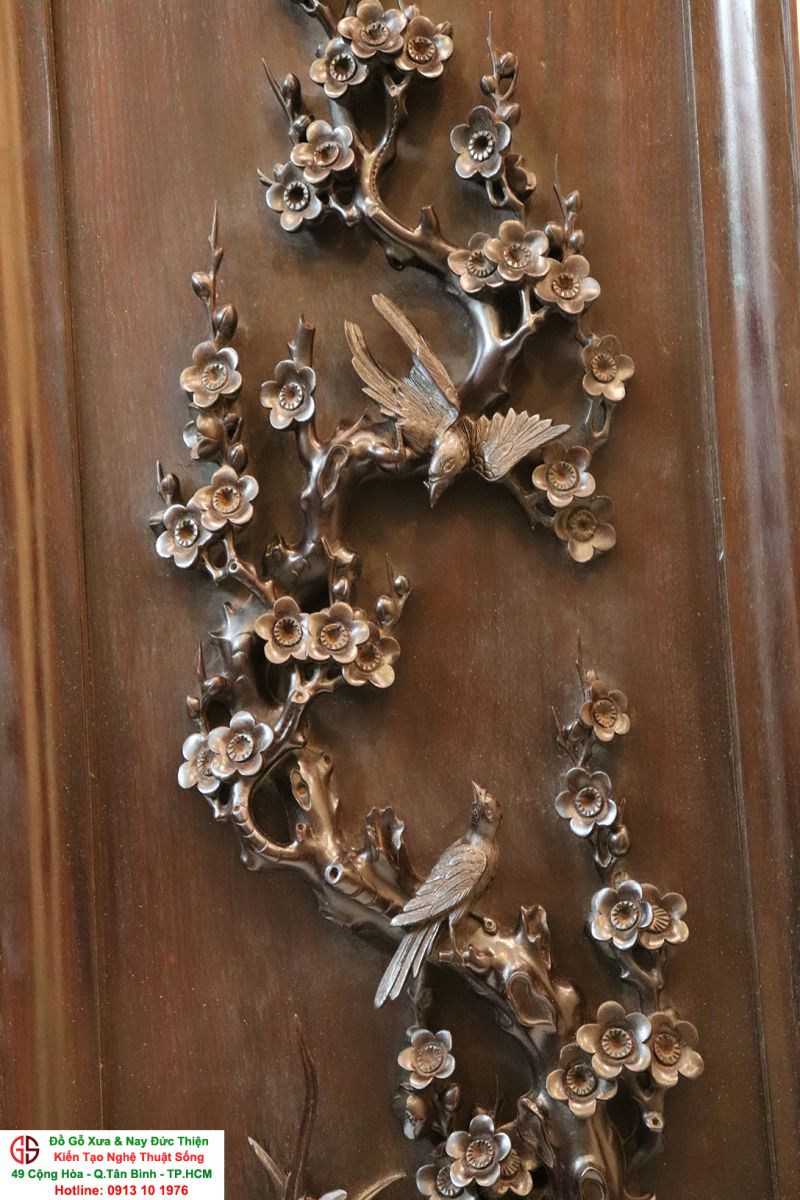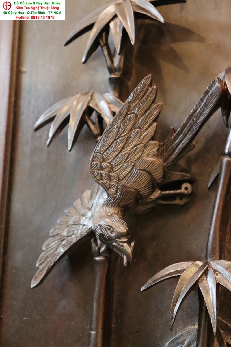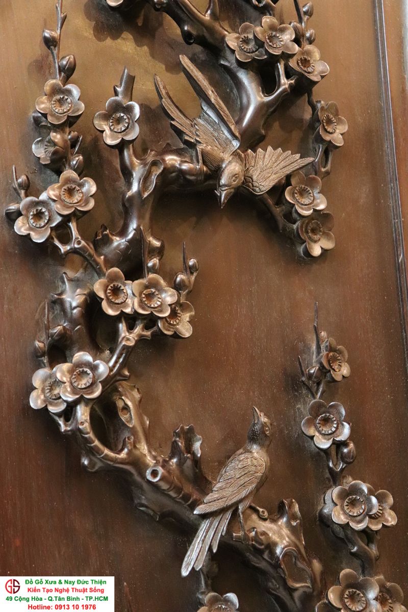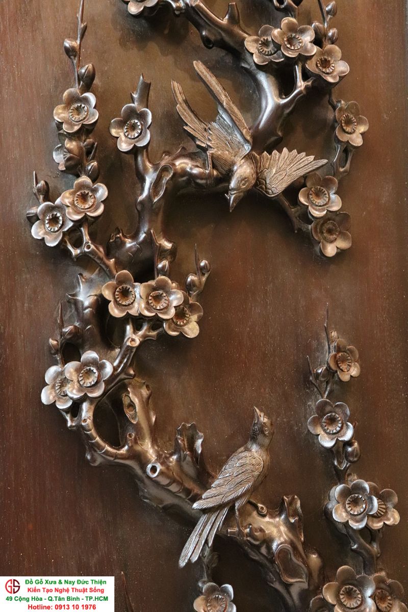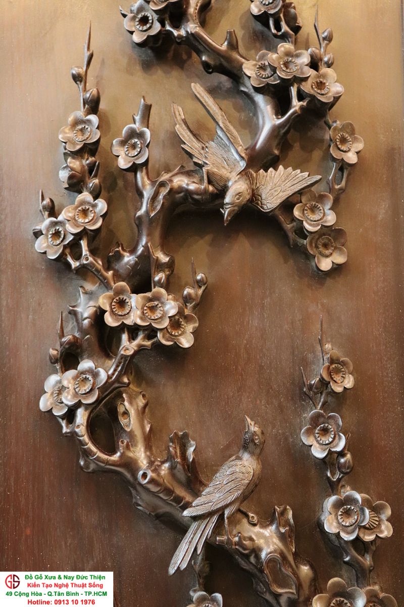 Chi tiết bức tranh chạm mai điểu: