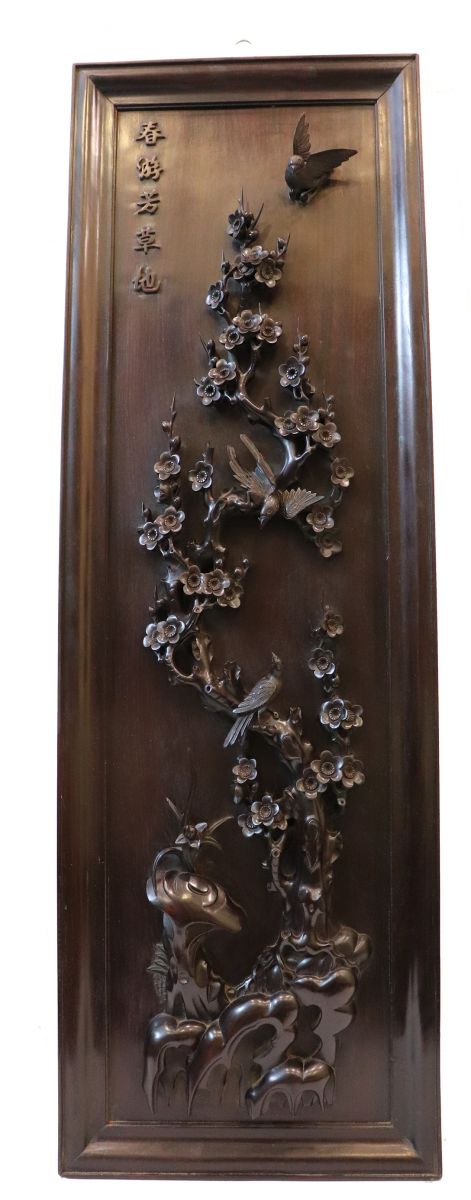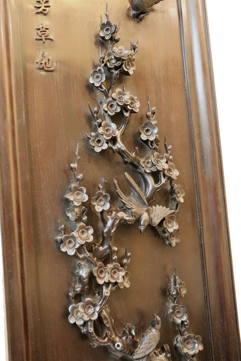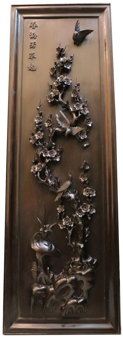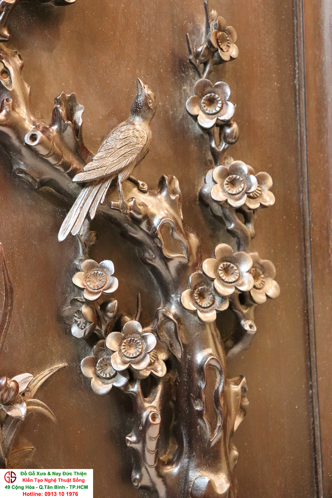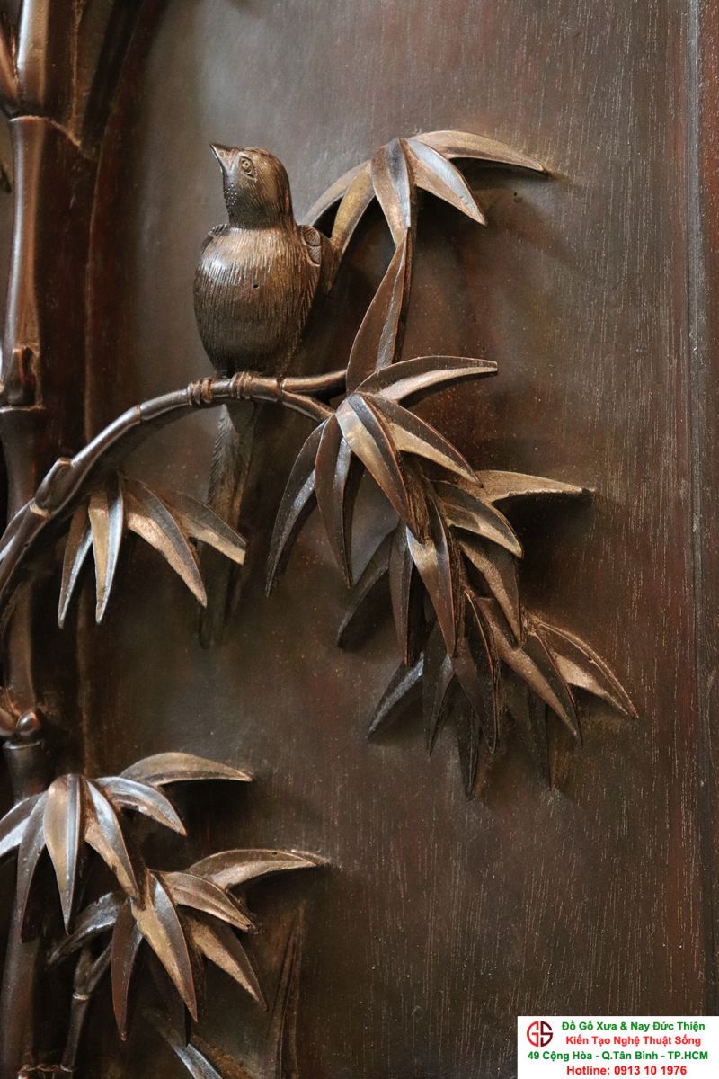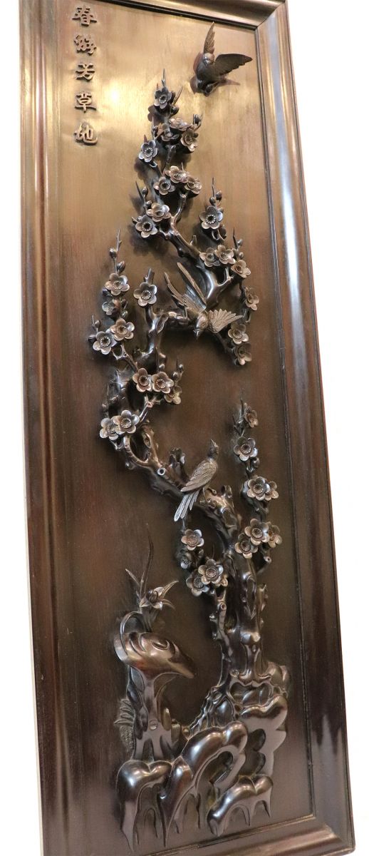 Chi tiết bức tranh chạm mai điểu: