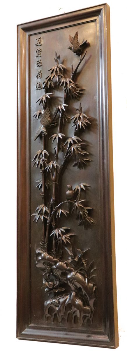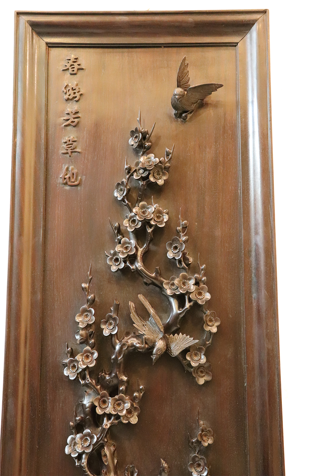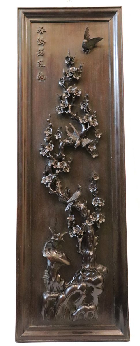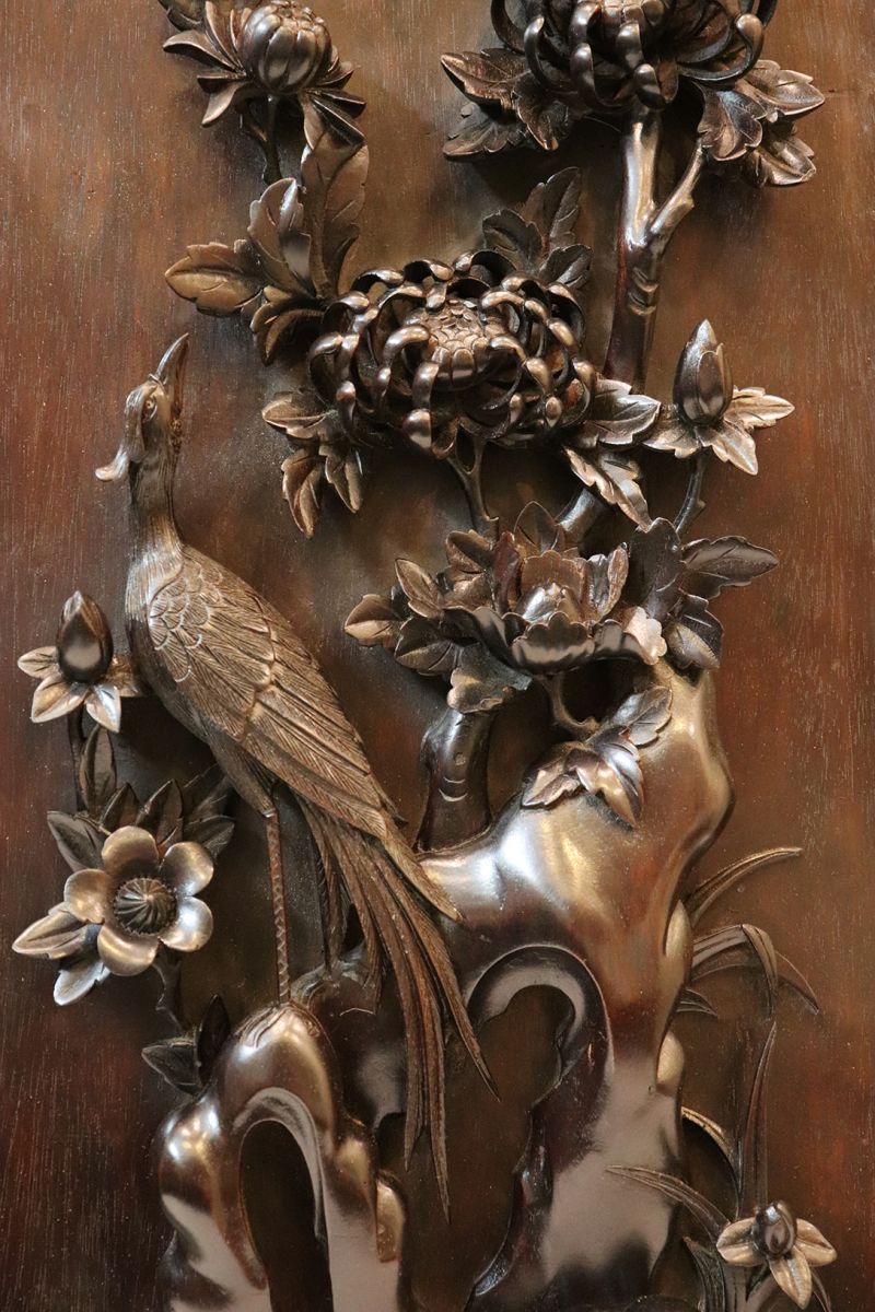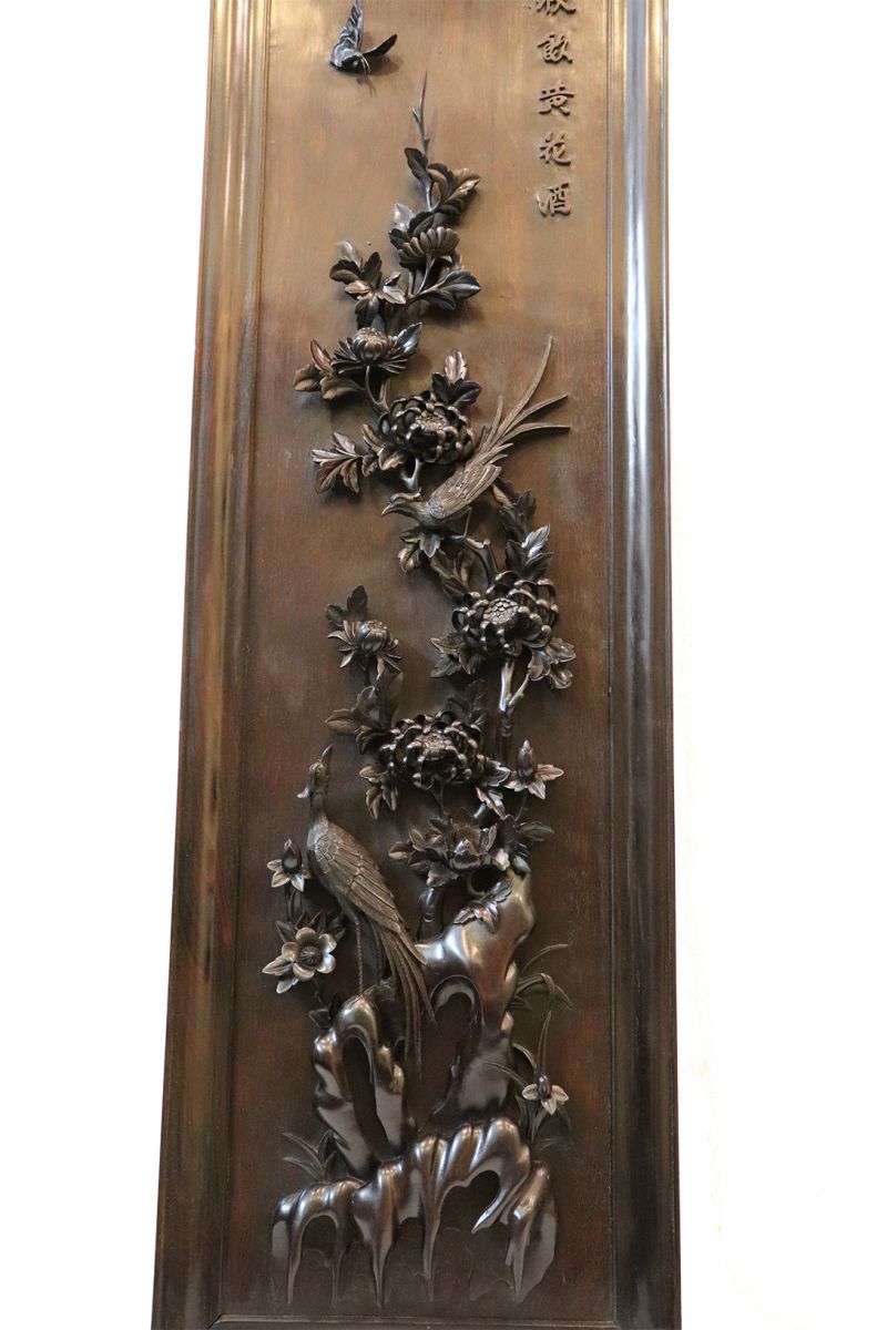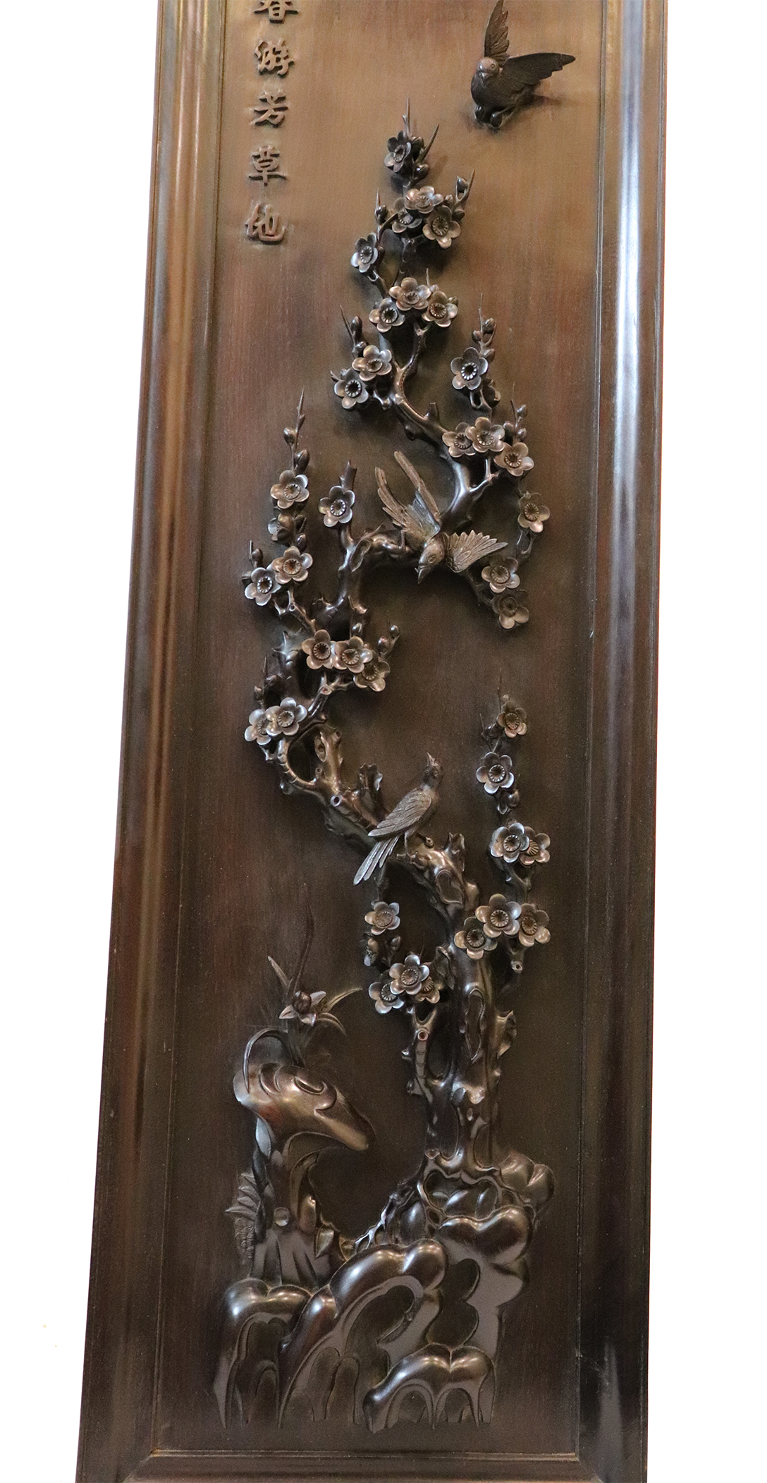 Chi tiết bức tranh chạm mai điểu: