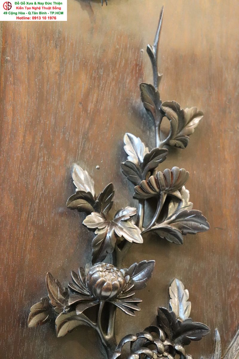 Chi tiết bức tranh chạm cúc