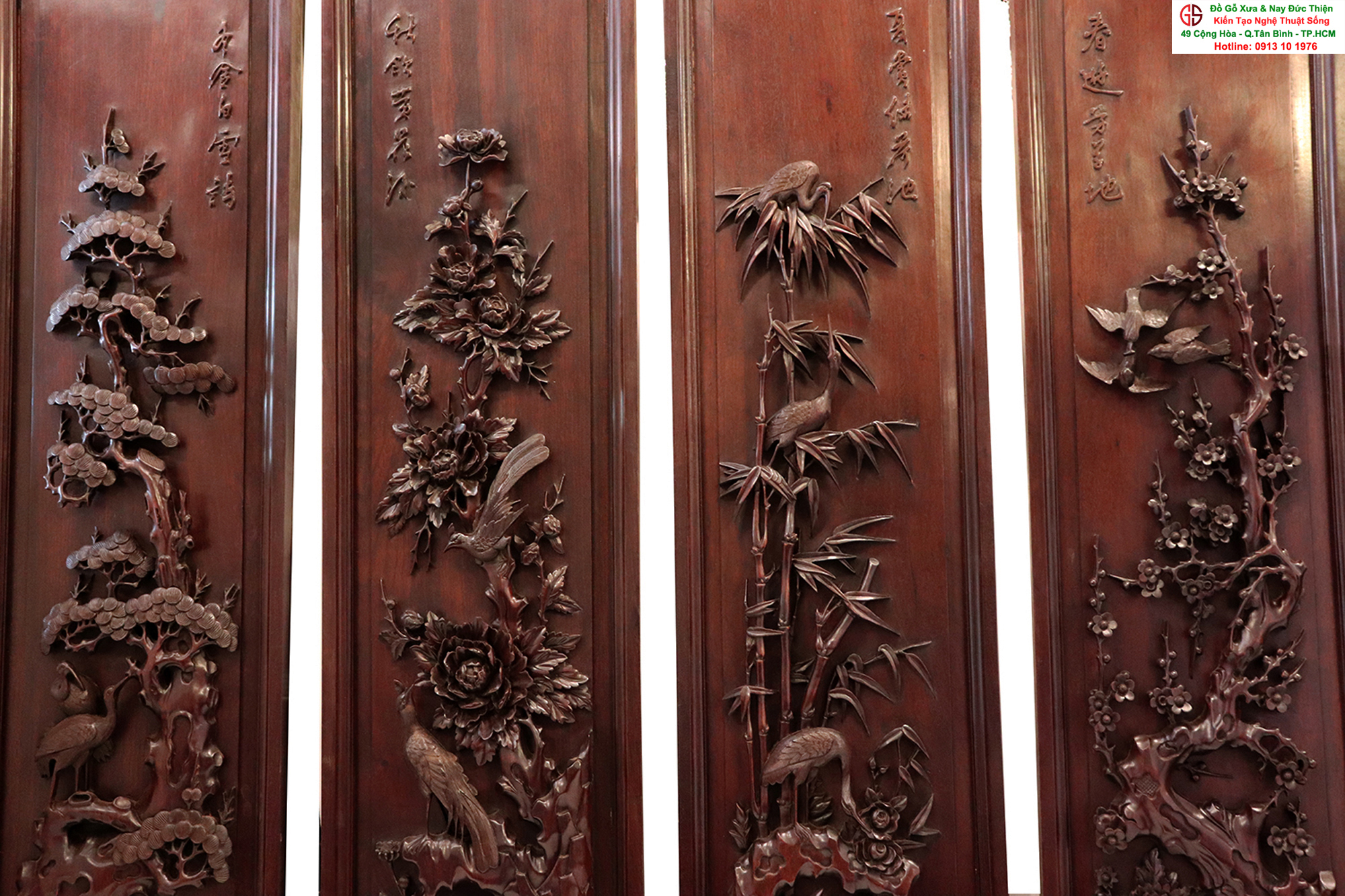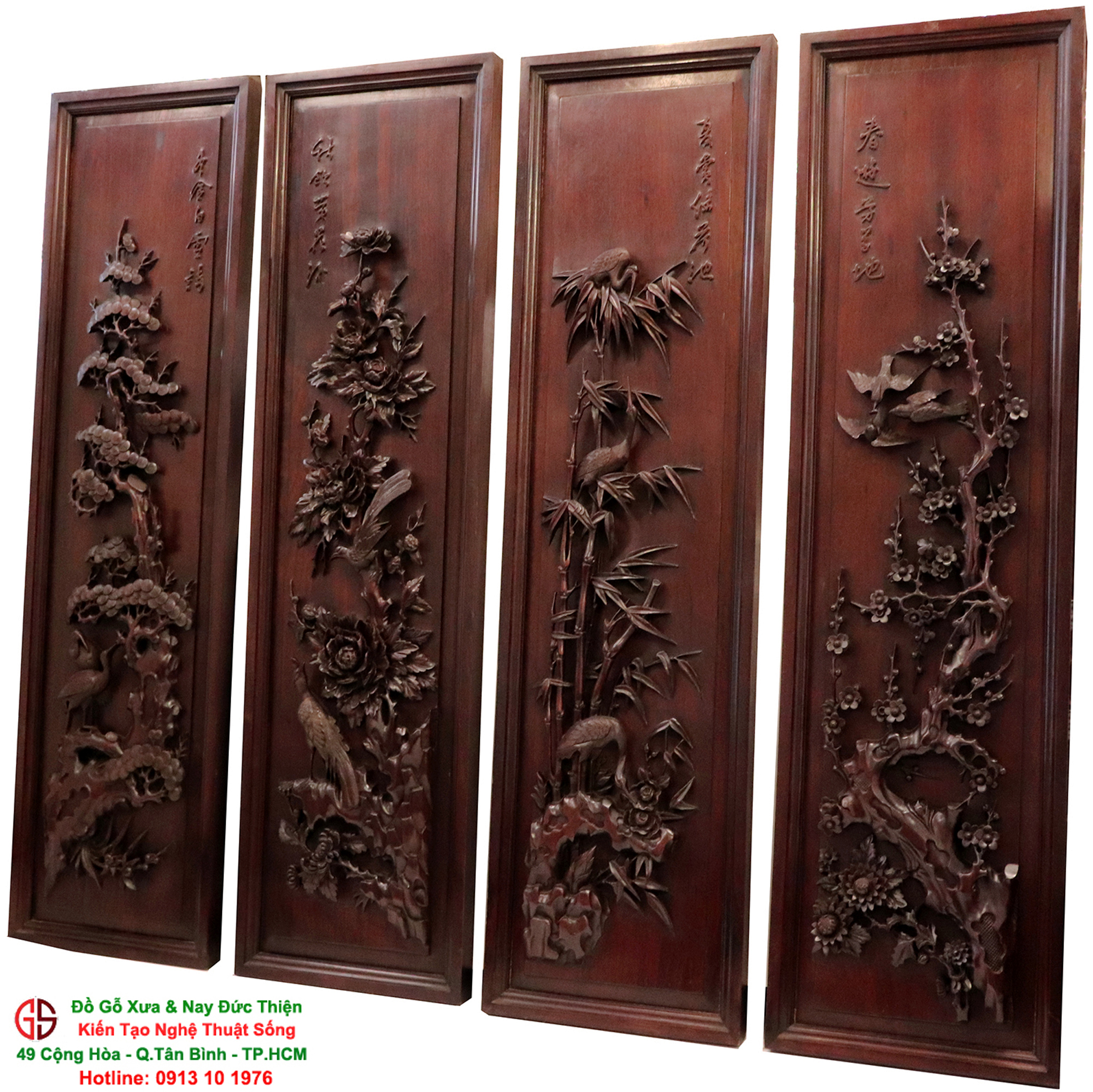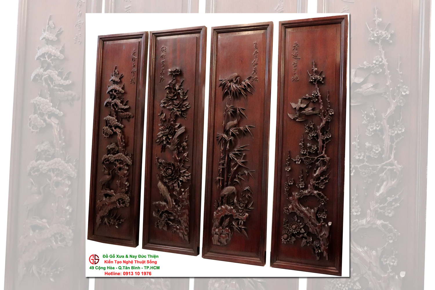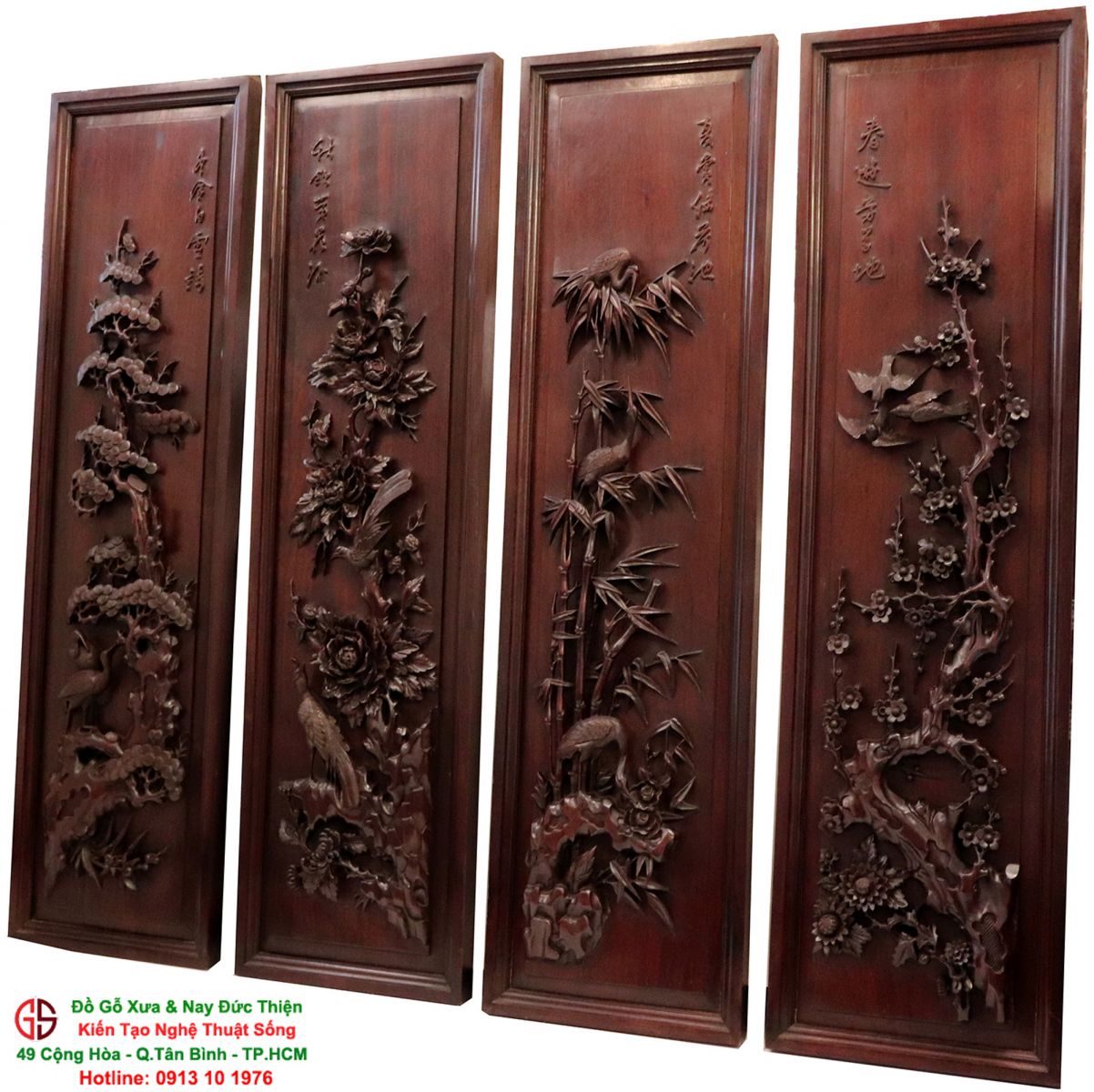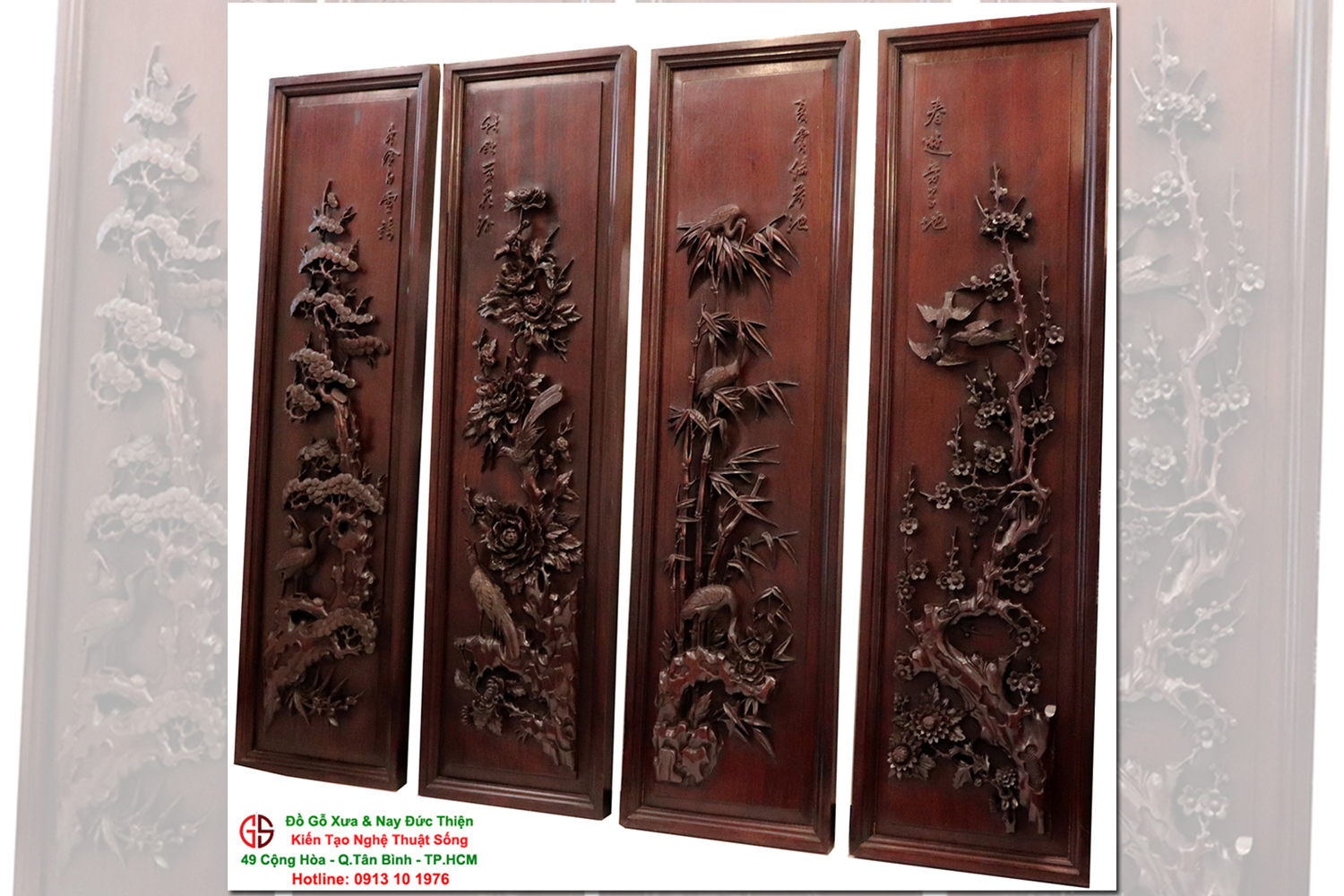 Hôm nay, Đồ Gỗ xưa và nay Đức Thiện sẽ giới thiệu với bạn một bộ tranh chạm nổi kênh bong đẹp, một chuẩn mực để bạn lựa chọn một bộ tranh tứ quý đẹp ưng ý cho gia đình.
