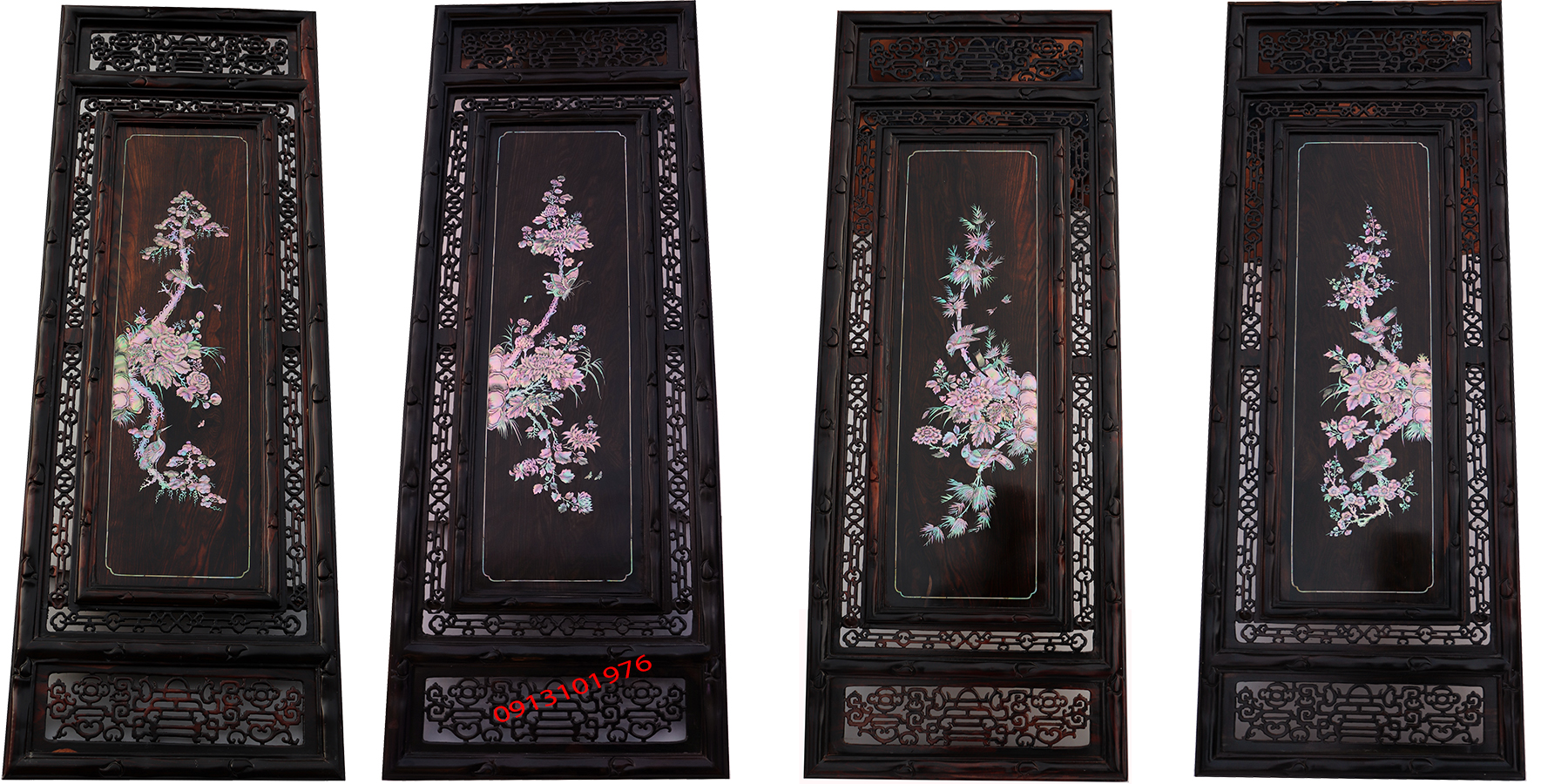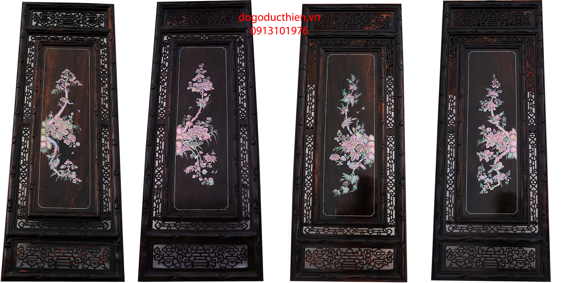 Bộ tranh tứ quý gỗ mun vân sọc khảm ốc hoàn thiện kỹ bởi bàn tay nghệ nhân là một tuyệt phẩm hiếm có giúp không gian nhà bạn trở lên đẹp sang trọng hơn