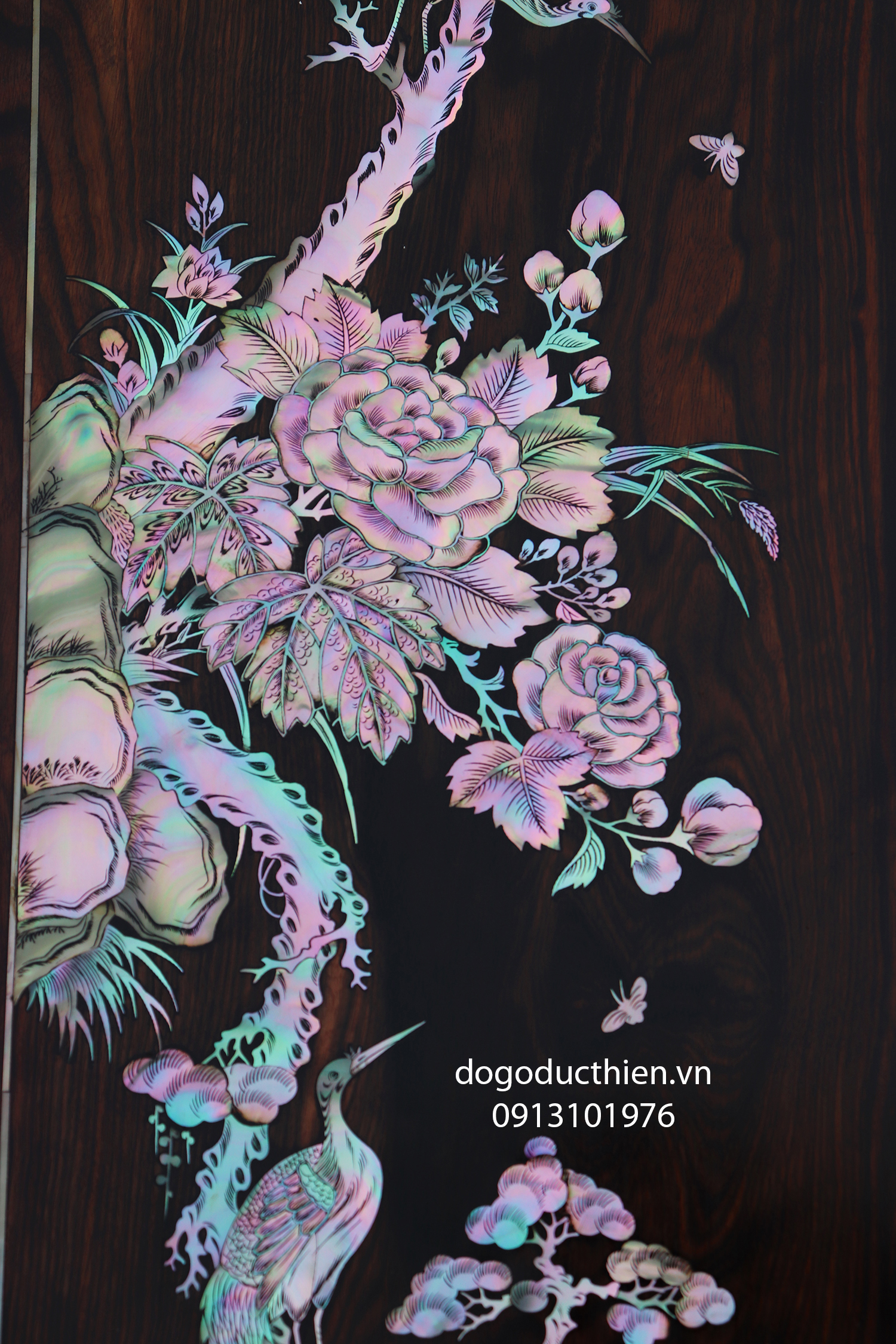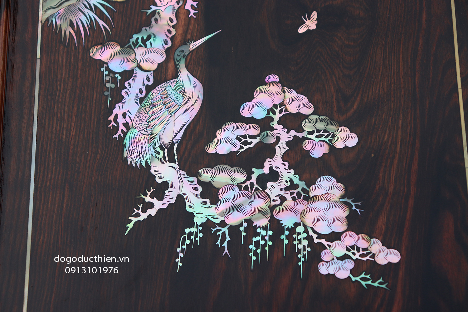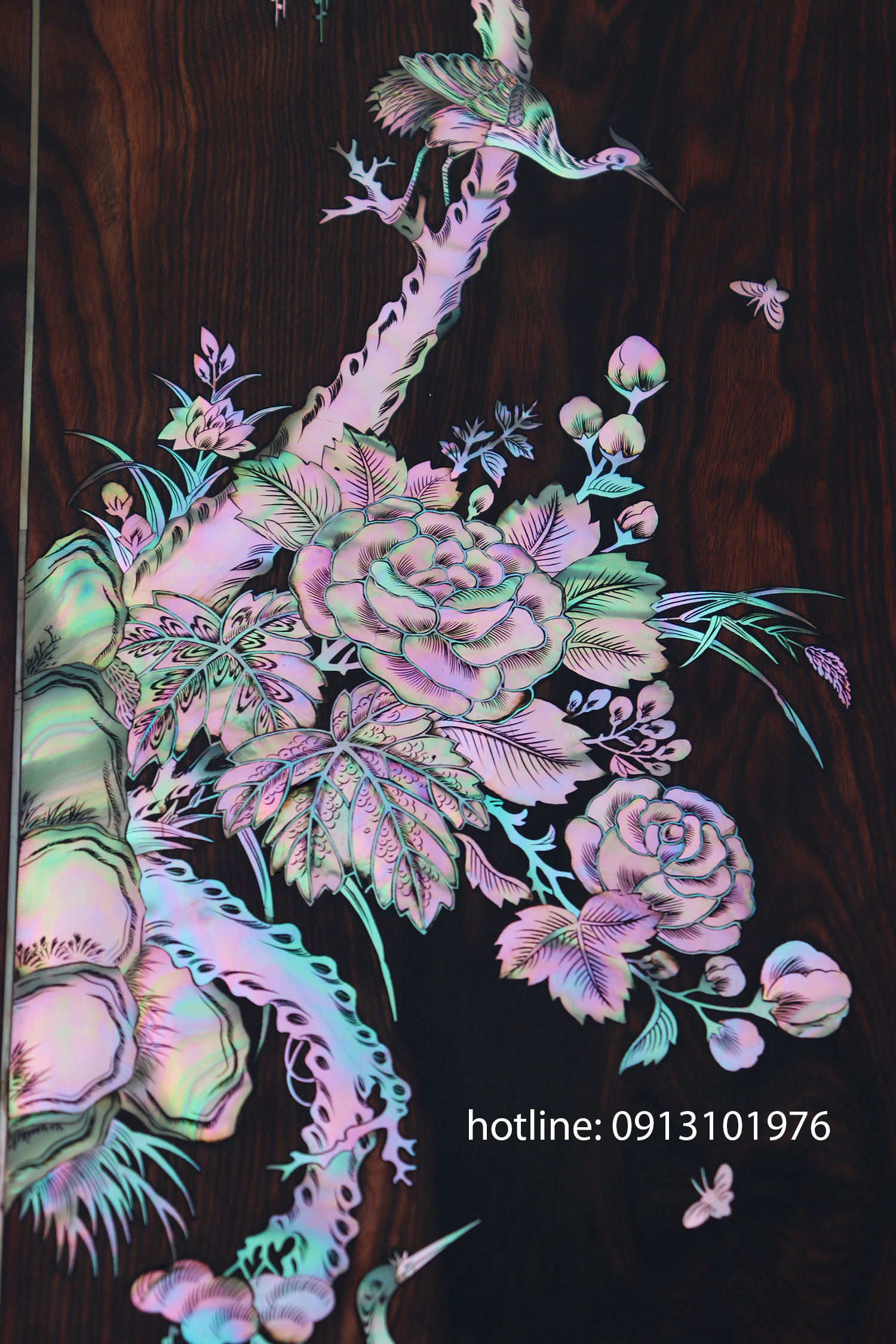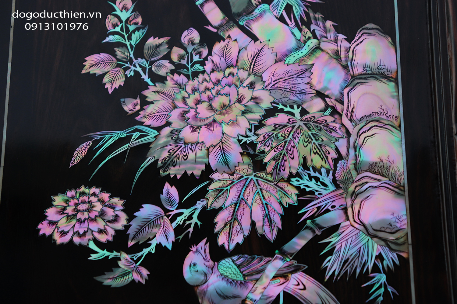 Chất liệu tranh: tranh được hoàn thiện trên chất liệu gỗ mun mang màu đen và rất chắc. Ốc xà cừ khảm trên bức tranh được hoàn thiện kỹ bởi bàn tay nghệ nhân lâu năm.