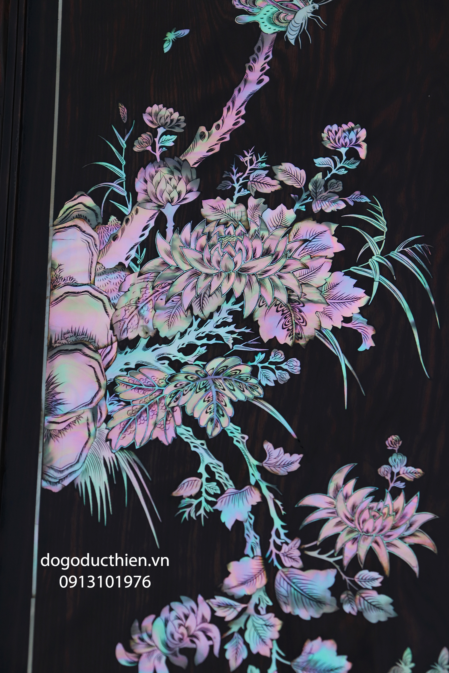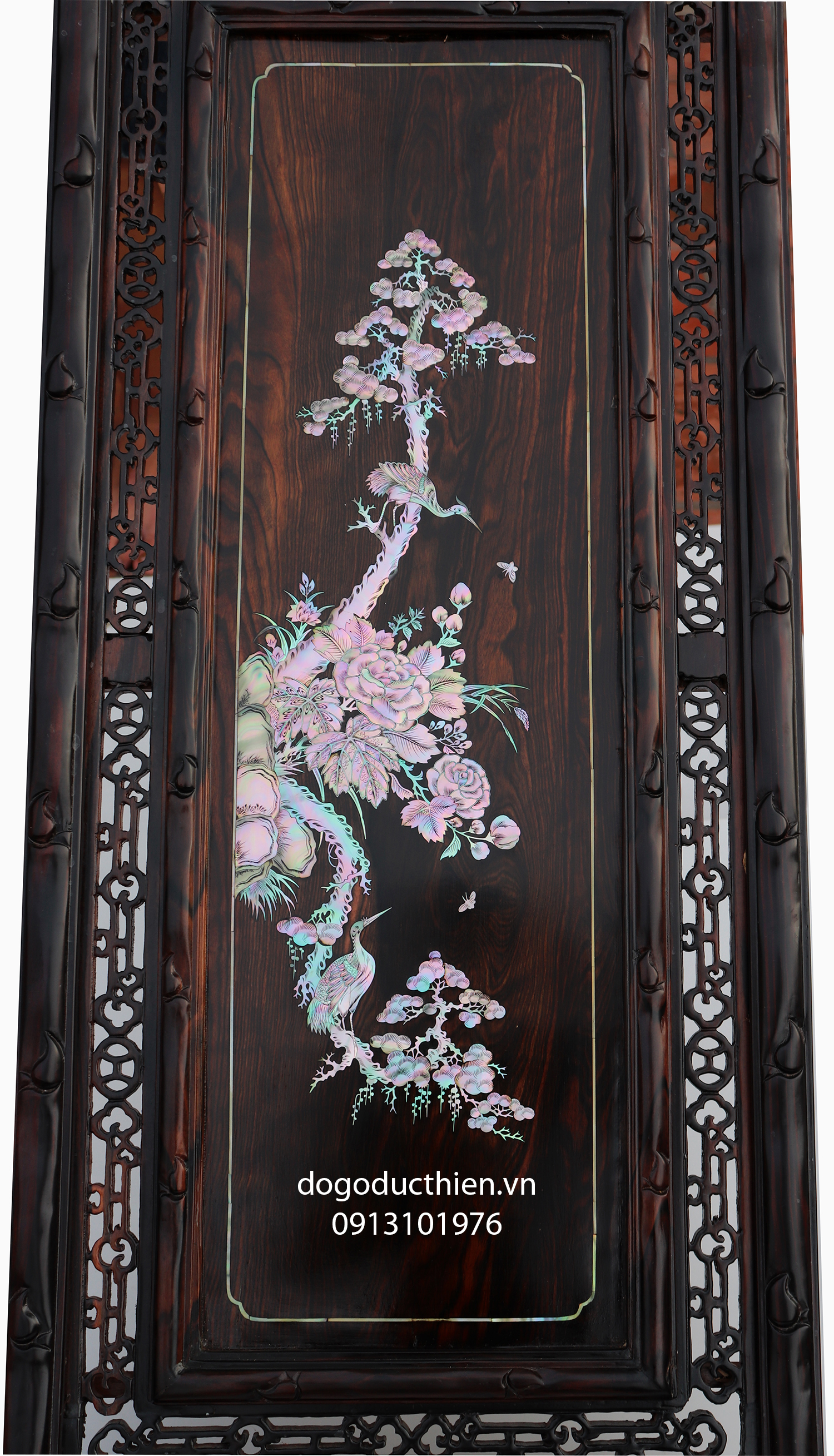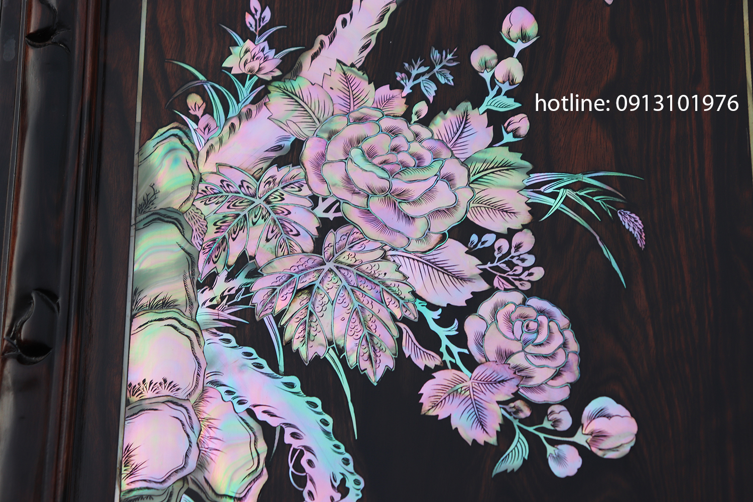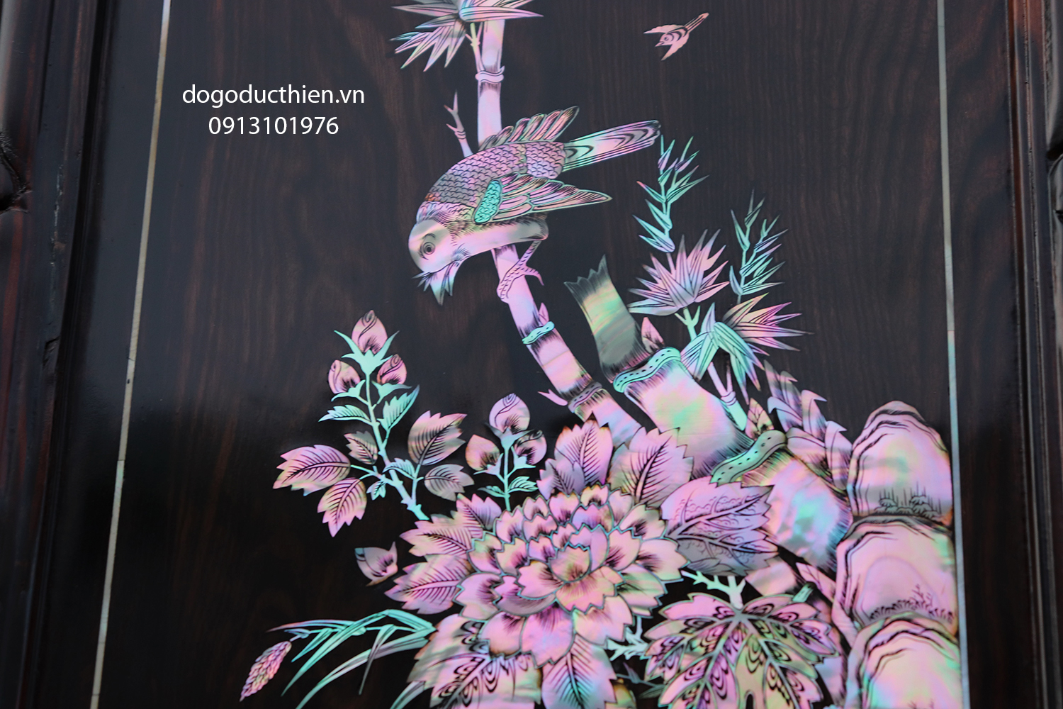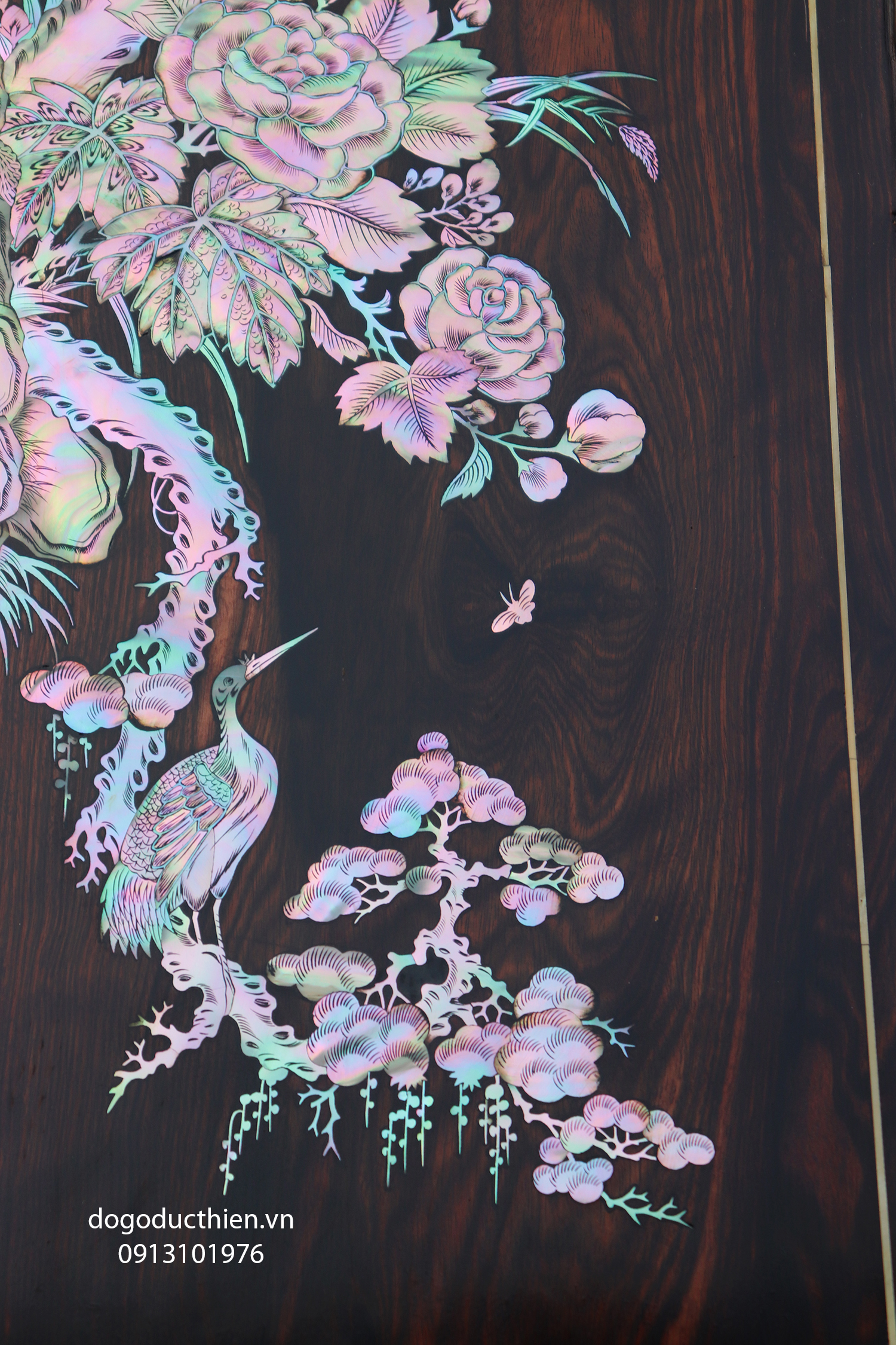 Chất liệu tranh: tranh được hoàn thiện trên chất liệu gỗ mun mang màu đen và rất chắc. Ốc xà cừ khảm trên bức tranh được hoàn thiện kỹ bởi bàn tay nghệ nhân lâu năm.