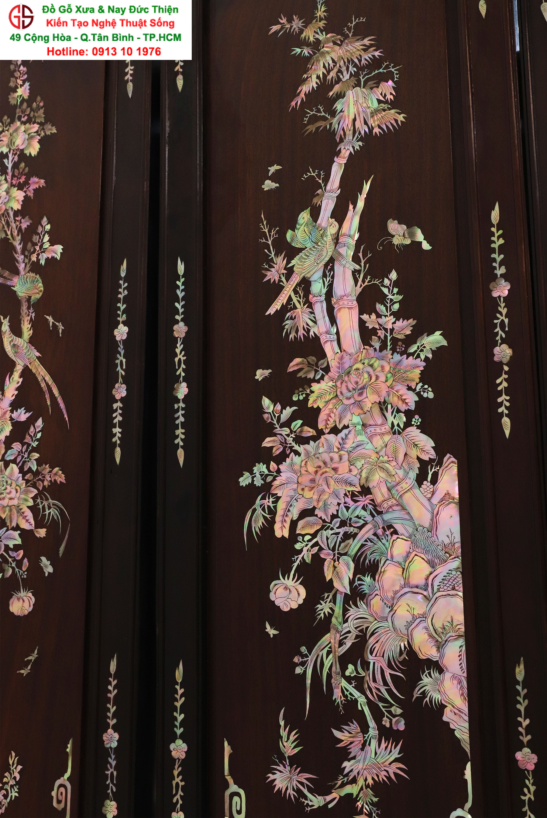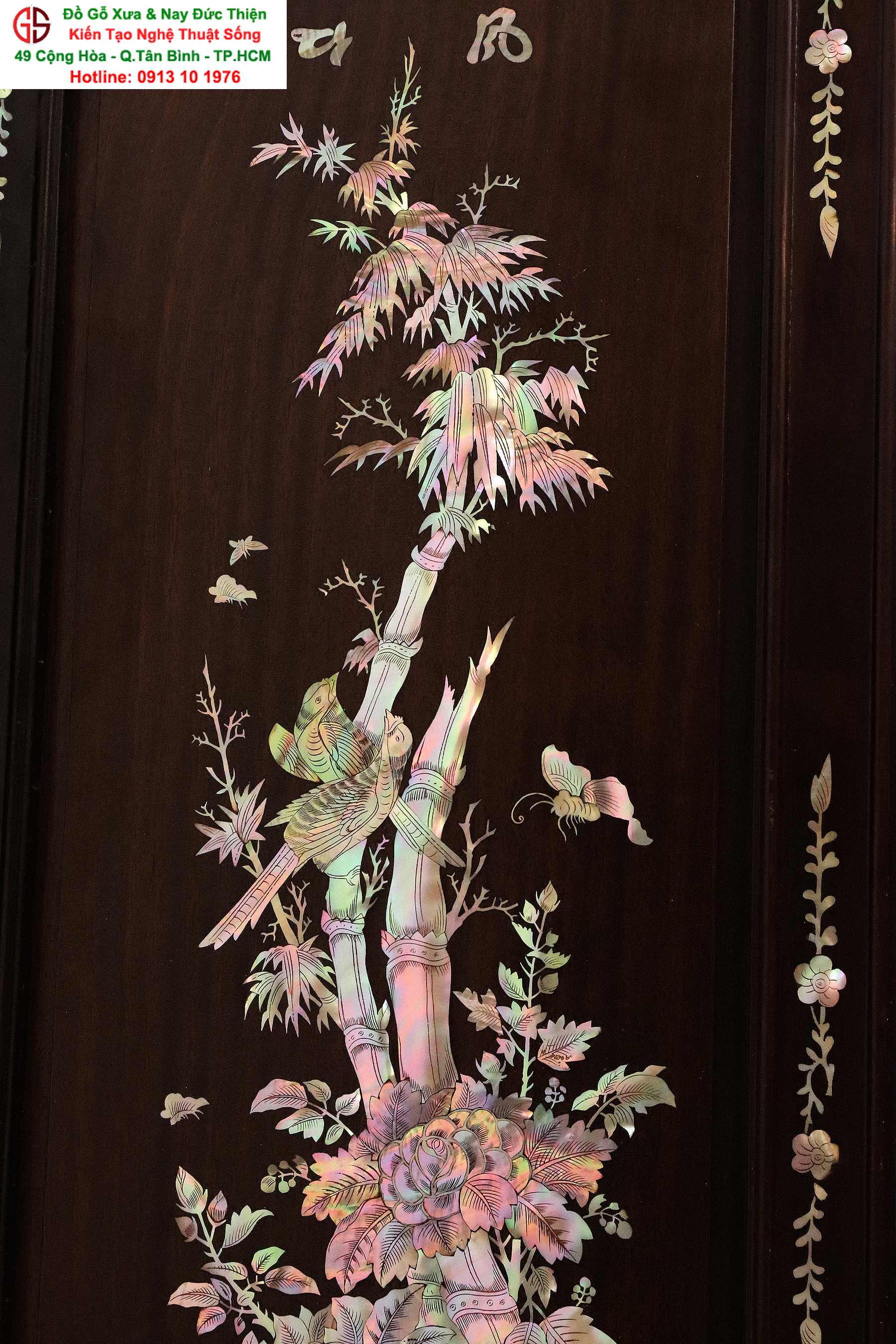 - Sập cẩn ốc xà cừ: sập cẩn ốc sen vịt, sập sen vịt tùng hạc.