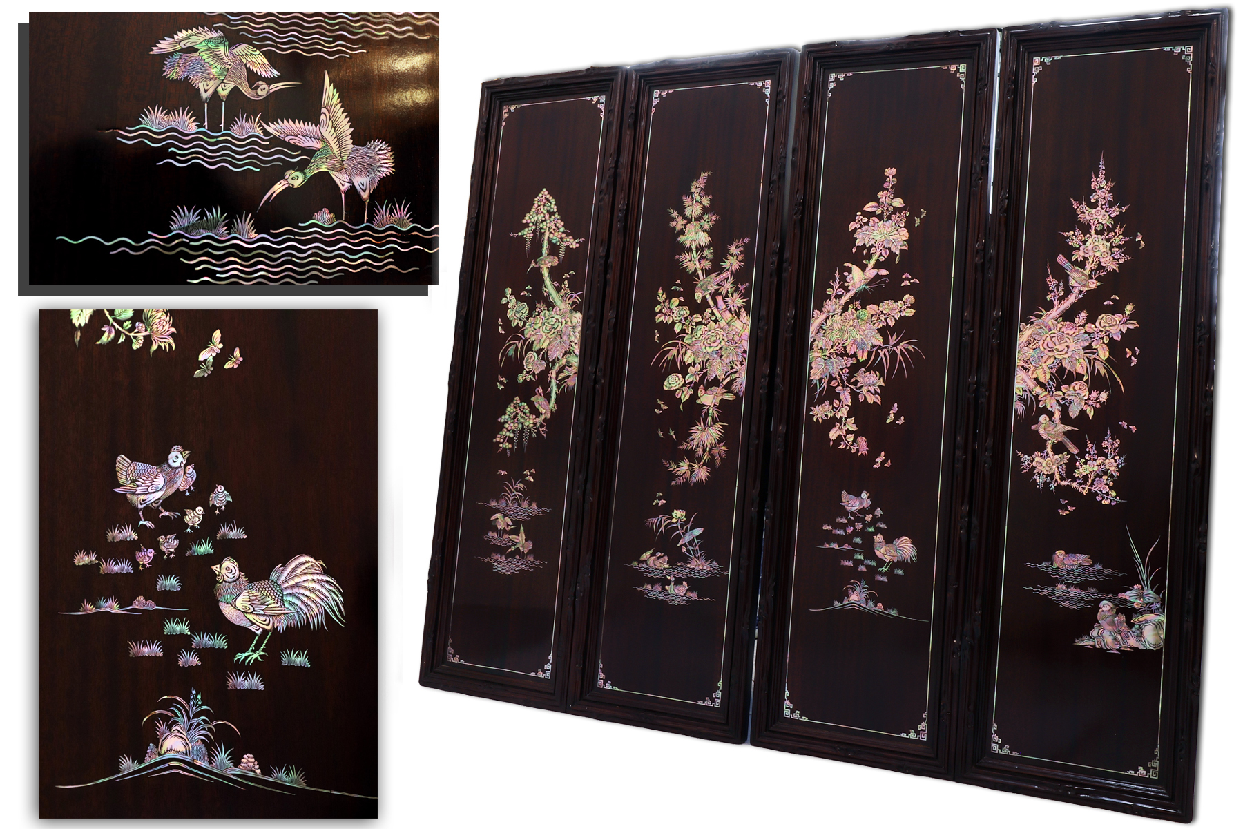 Thuộc top những bộ tranh tứ quý khảm ốc đẹp nhất, xứng đáng là món đồ chơi sưu tầm thực sự thể hiện được đẳng cấp của gia chủ