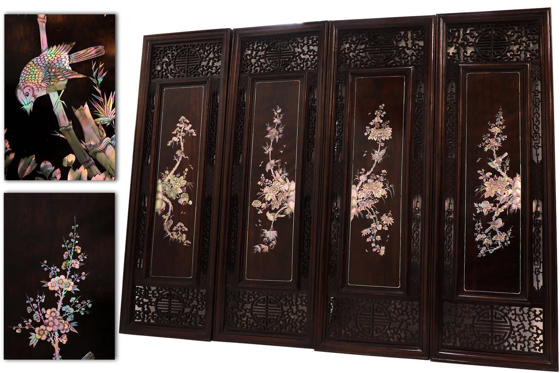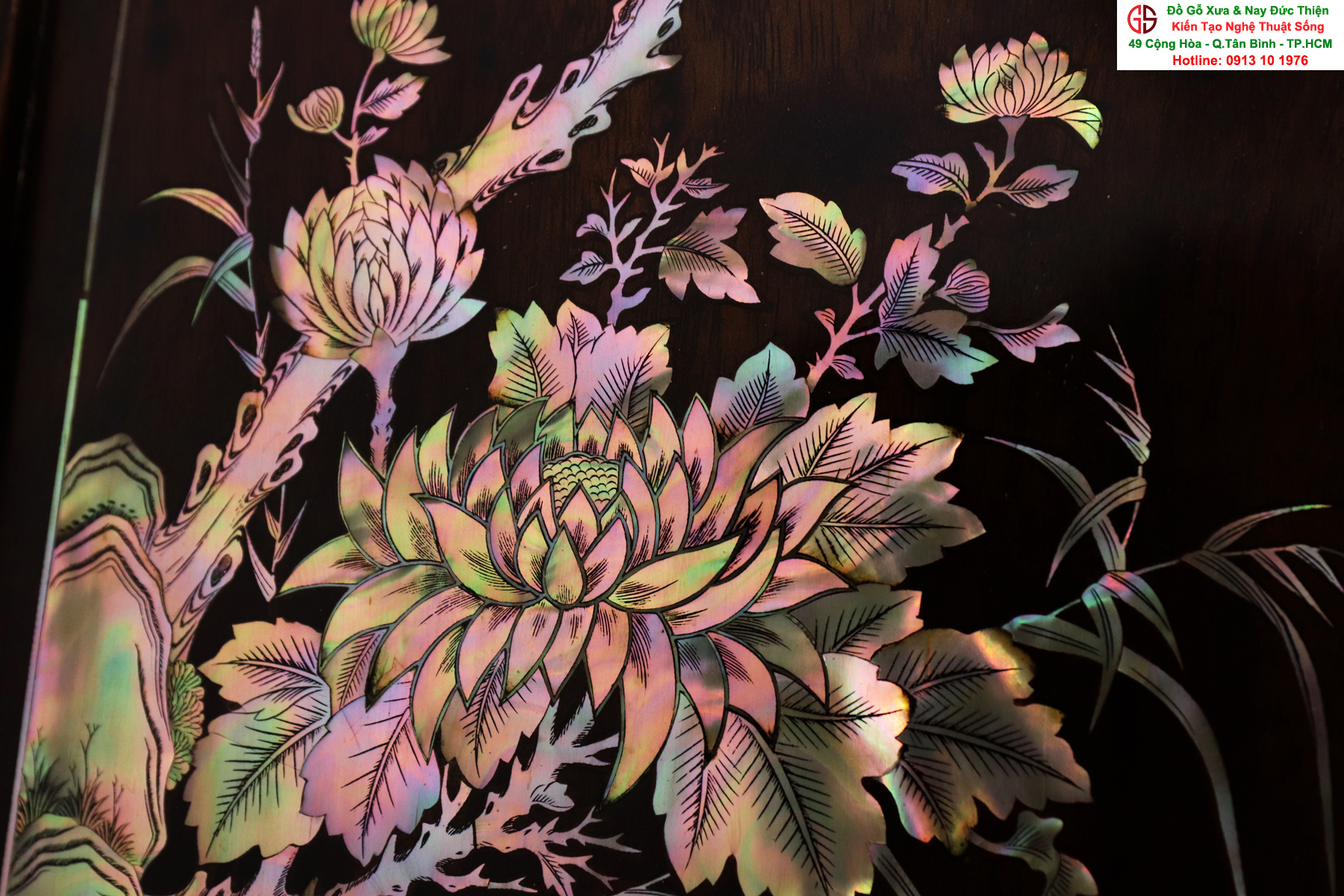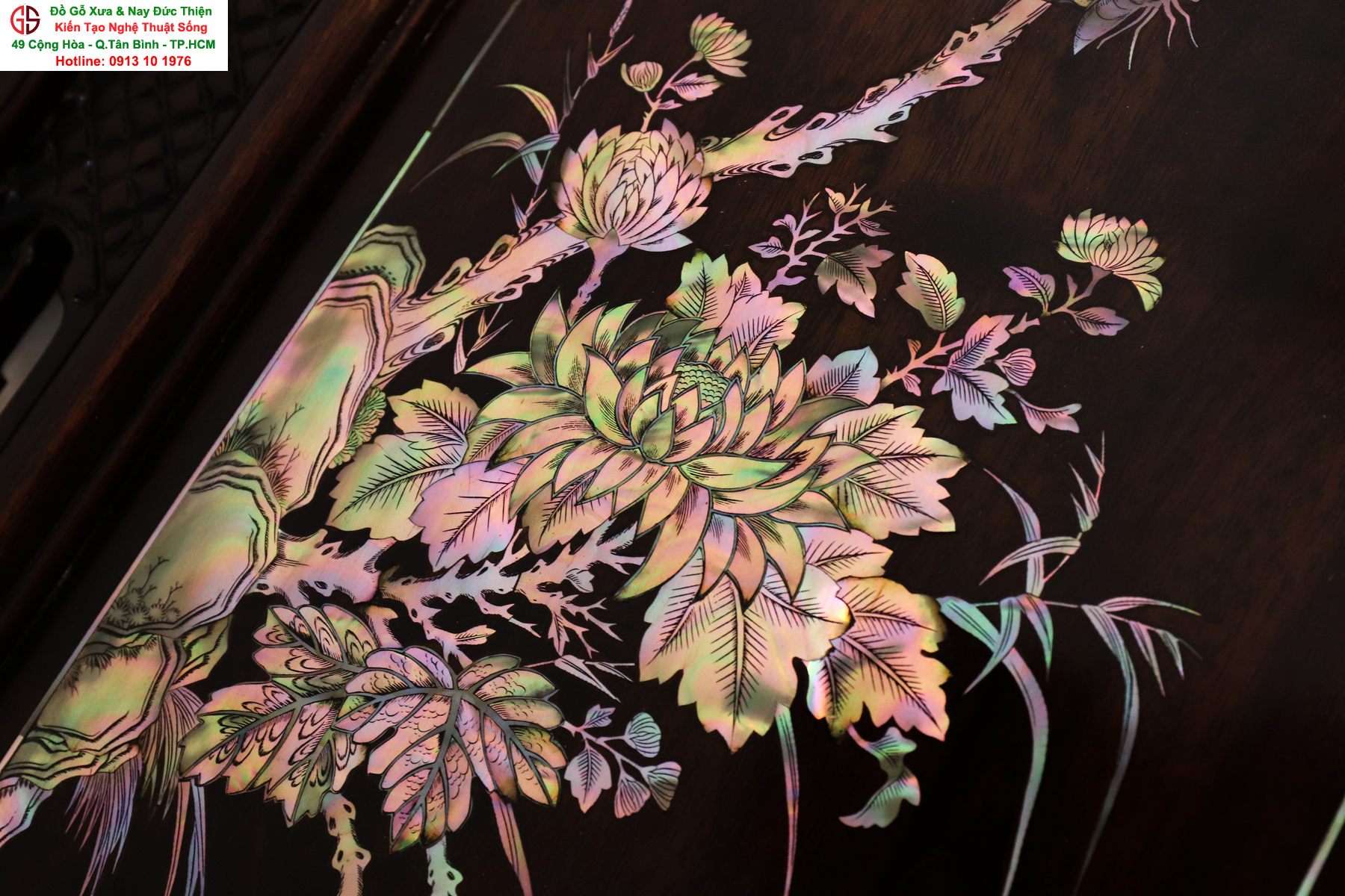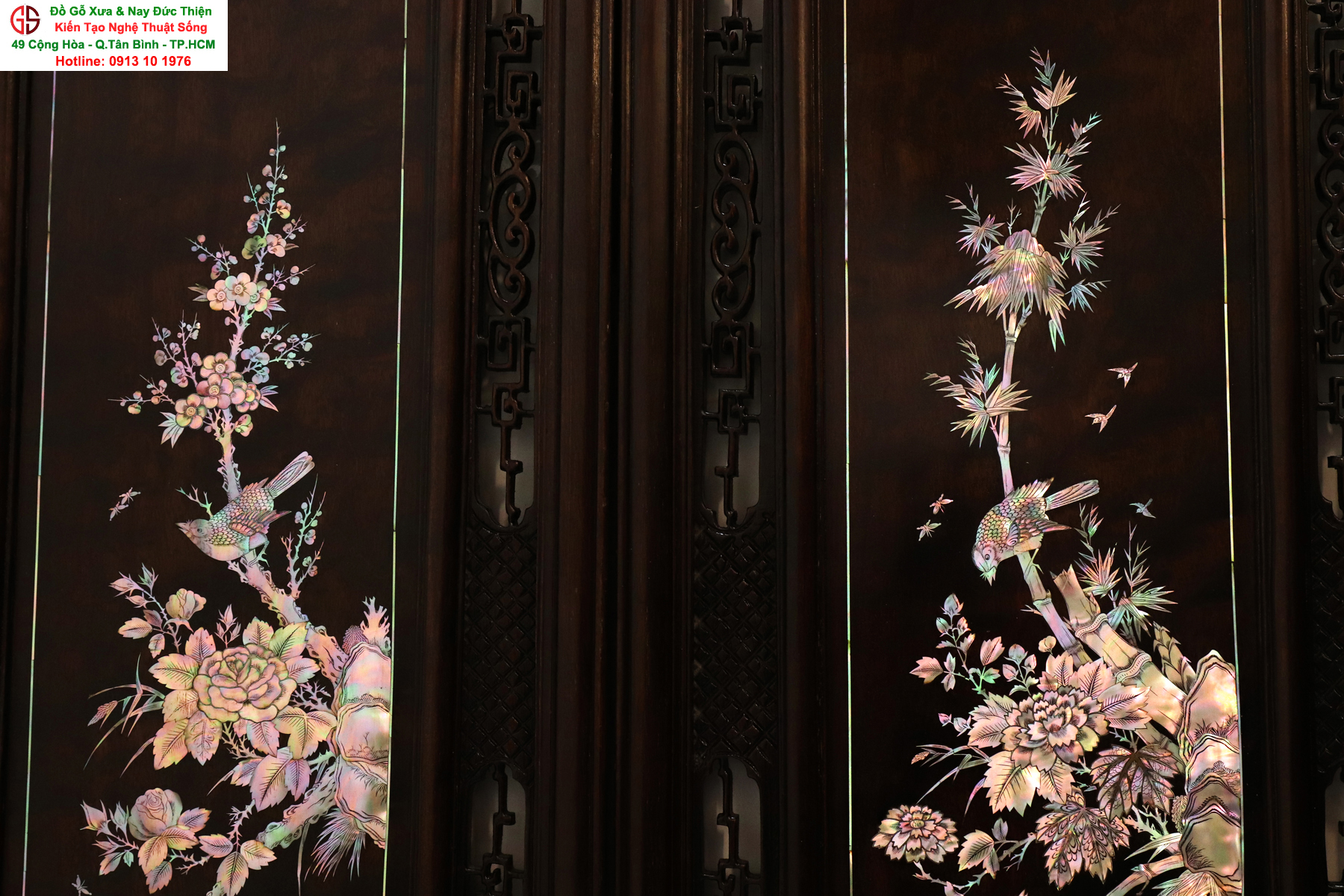 - Sập cẩn ốc xà cừ: sập cẩn ốc sen vịt, sập sen vịt tùng hạc.