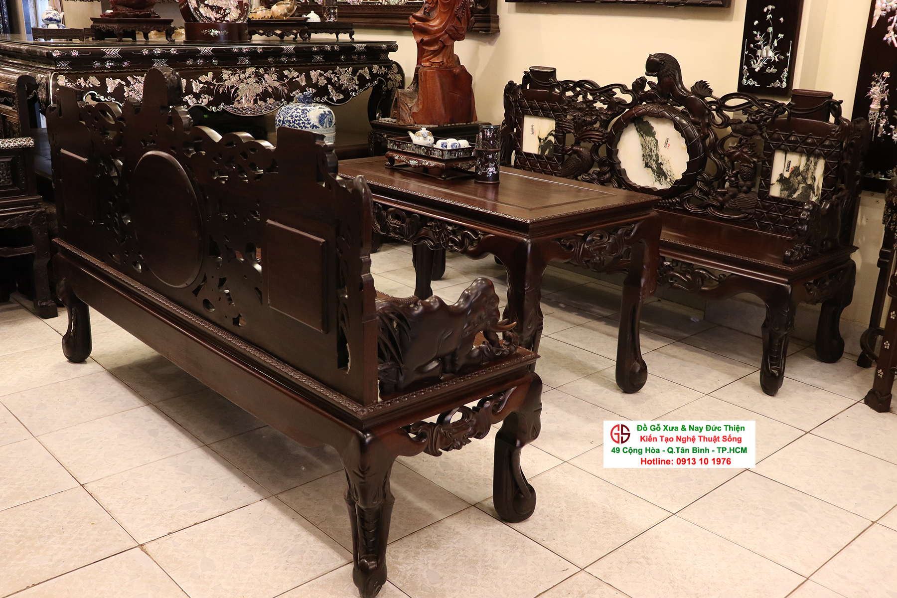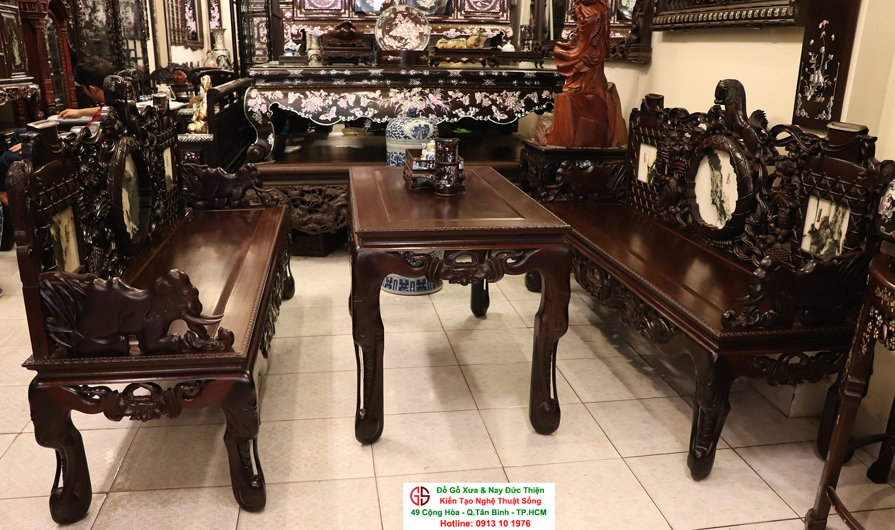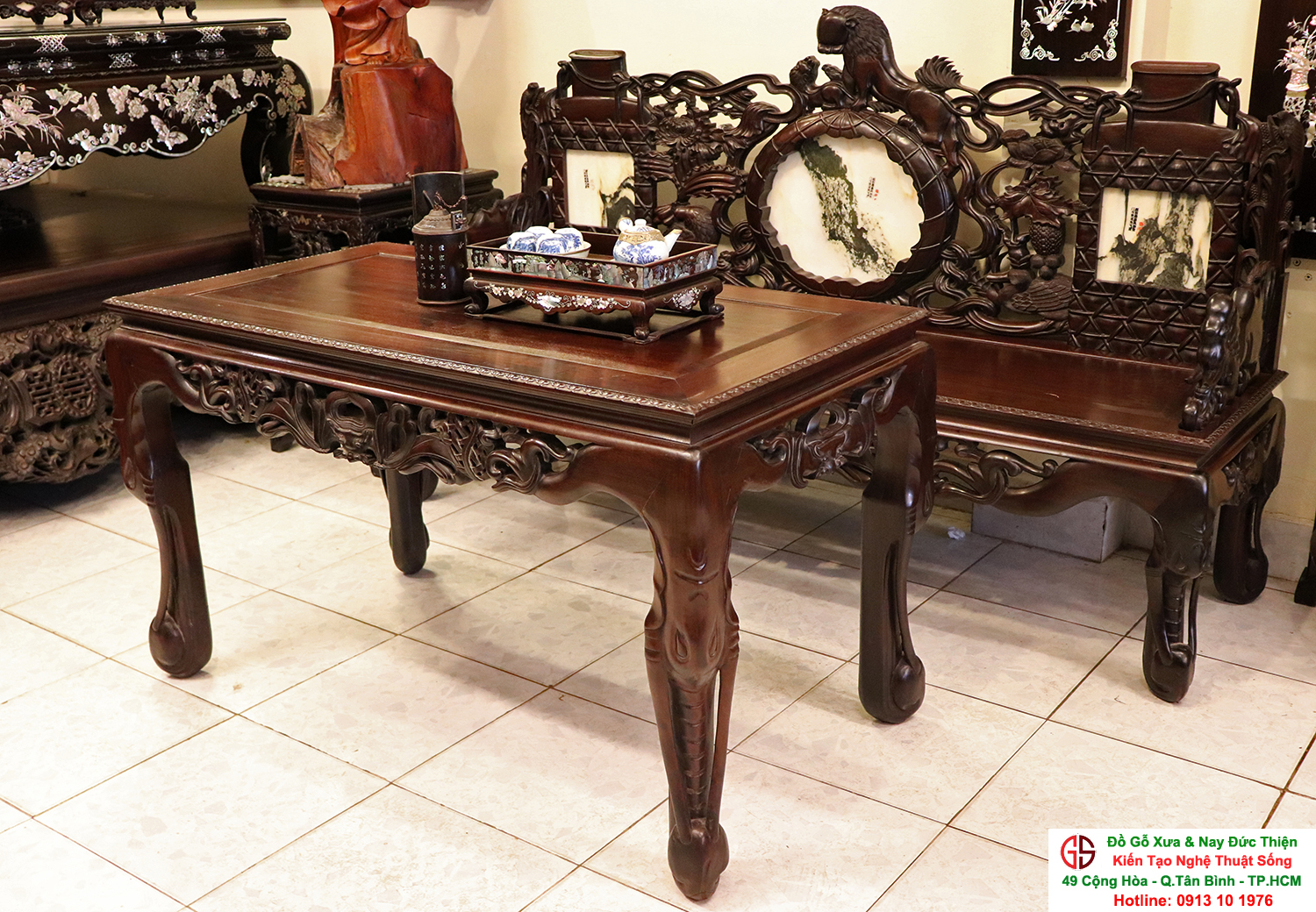 - Bàn ghế Louis, đôn trống gỗ trắc, bộ bàn ăn cẩn ốc, bàn ghế phương kỷ, bàn trung đường cẩn ốc xà cừ