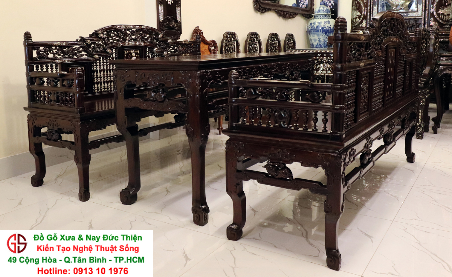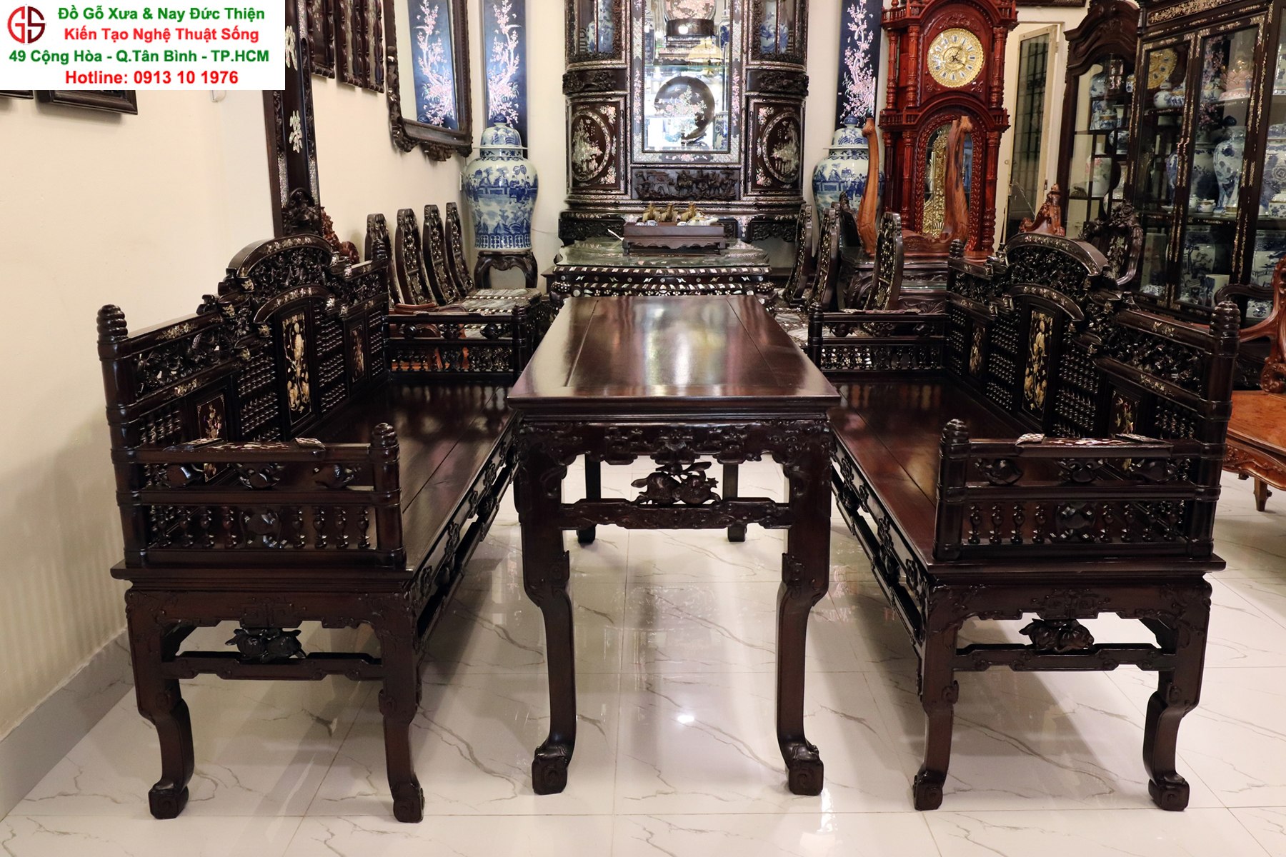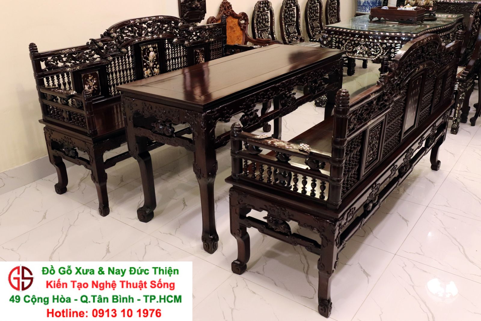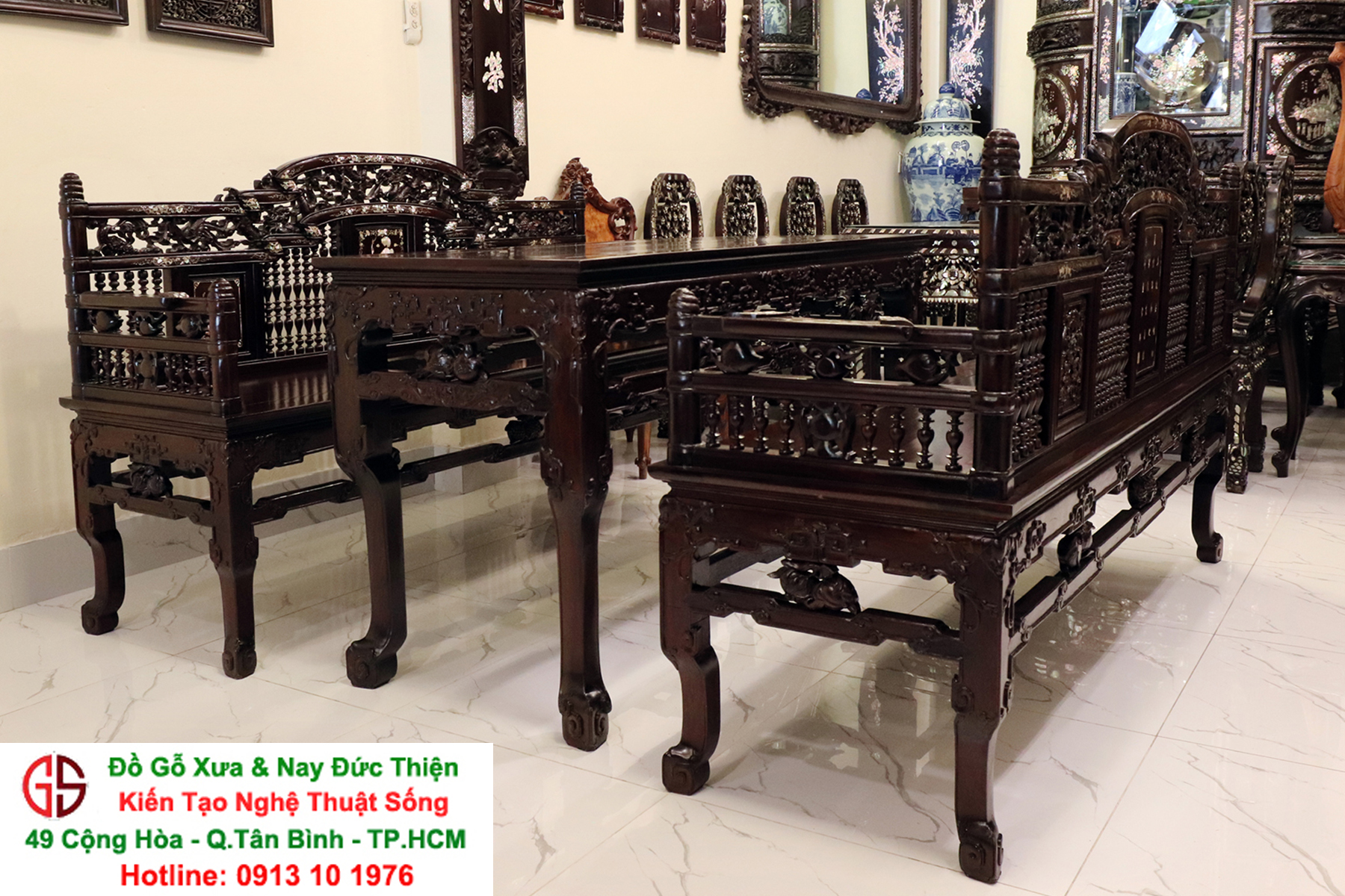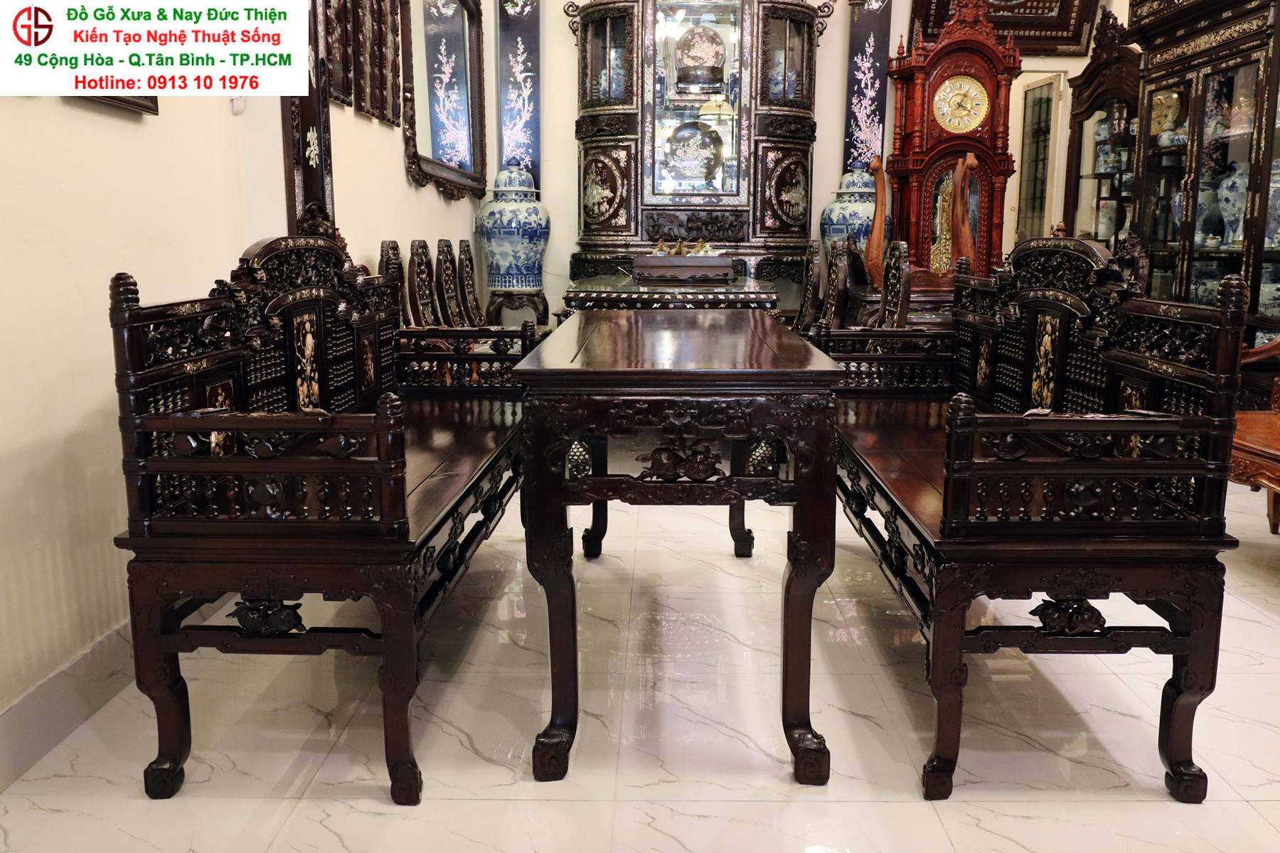 - Bàn ghế Louis, đôn trống gỗ trắc, bộ bàn ăn cẩn ốc, bàn ghế phương kỷ, bàn trung đường cẩn ốc xà cừ