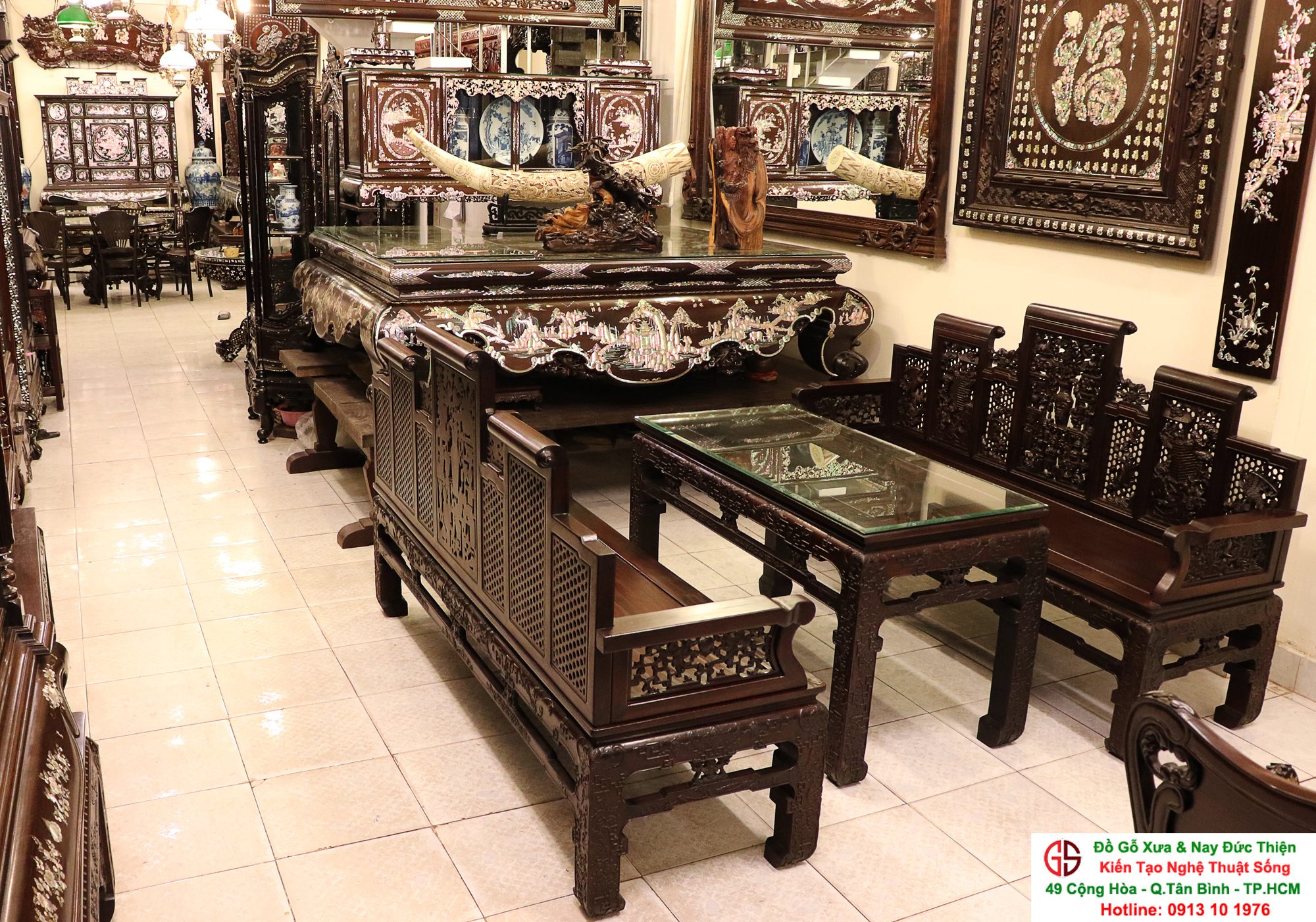 - Bàn ghế Louis, đôn trống gỗ trắc, bộ bàn ăn cẩn ốc, bàn ghế phương kỷ, bàn trung đường cẩn ốc xà cừ