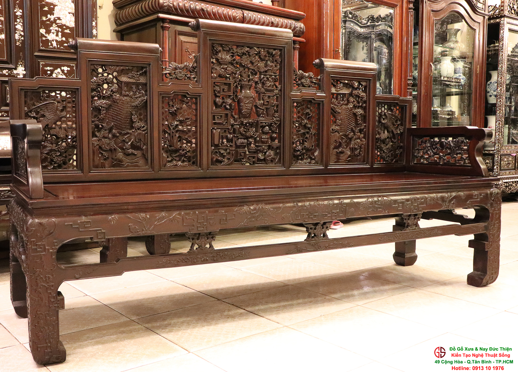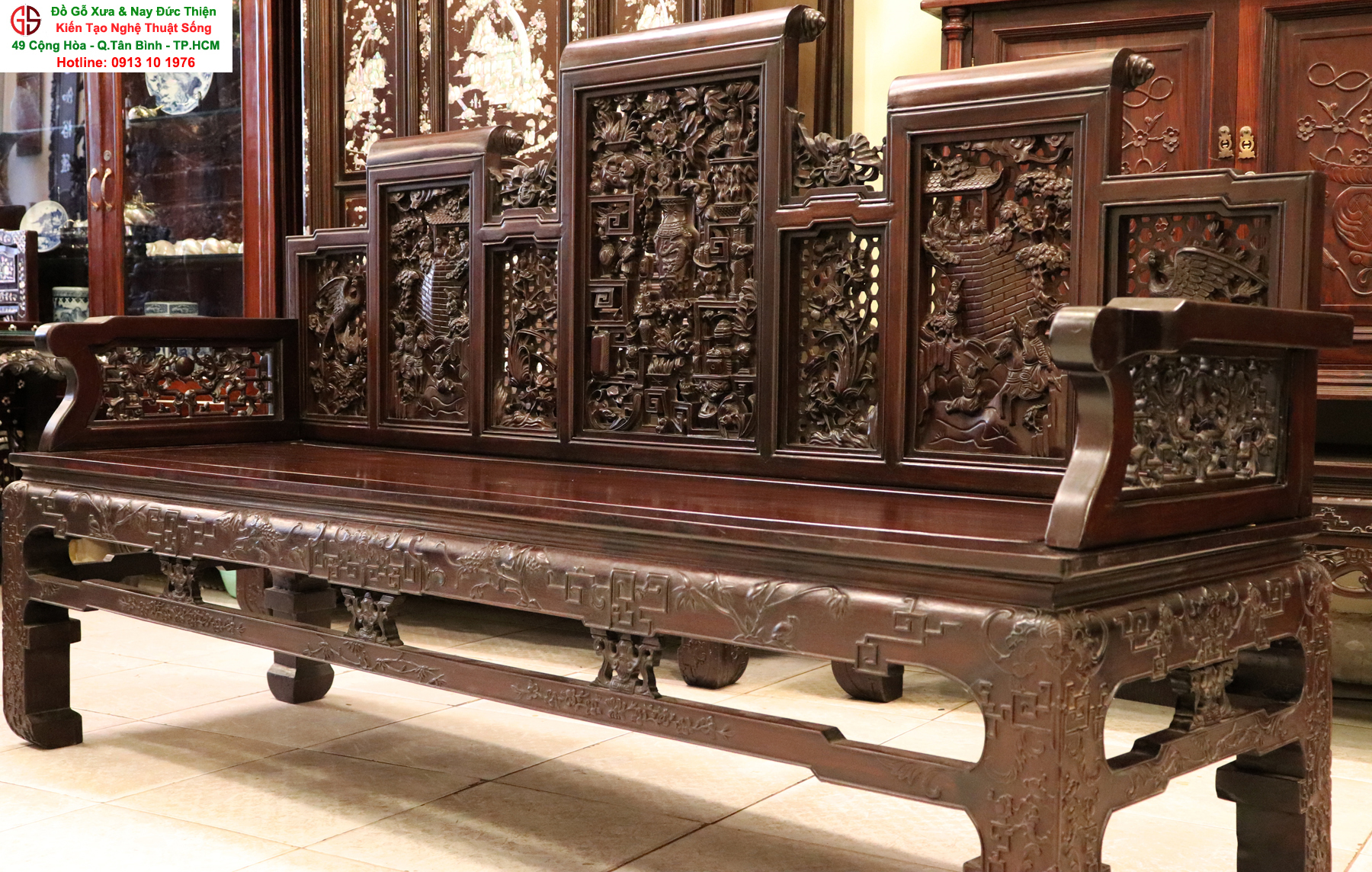 - Bàn ghế trường kỷ cổ: Trường Kỷ Trúc Nho, trường Kỷ Tích Cổ Đồ, trường Kỷ Huế triện tàu lá dắt, trường kỷ tam sơn cẩn ốc, trường kỷ ngũ lân vờn cầu, trường kỷ chạm mai.