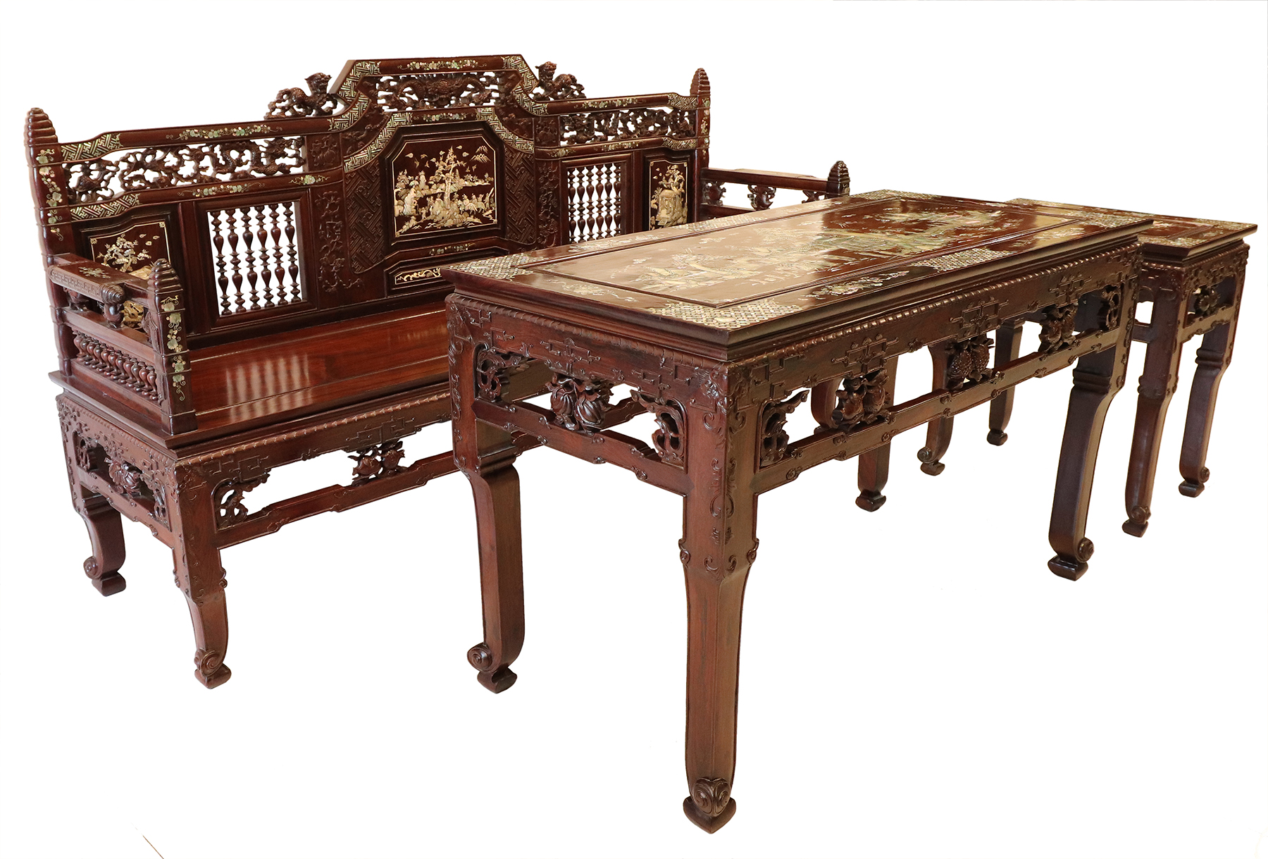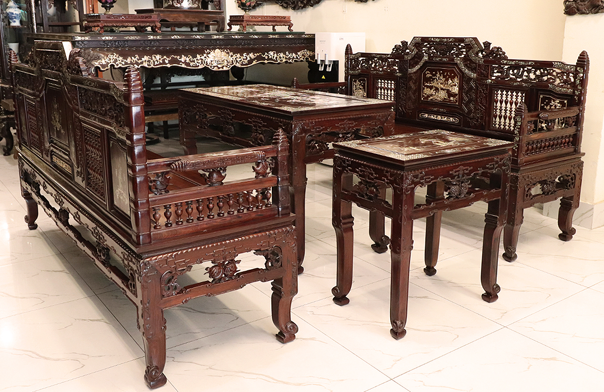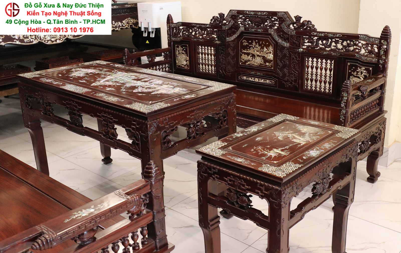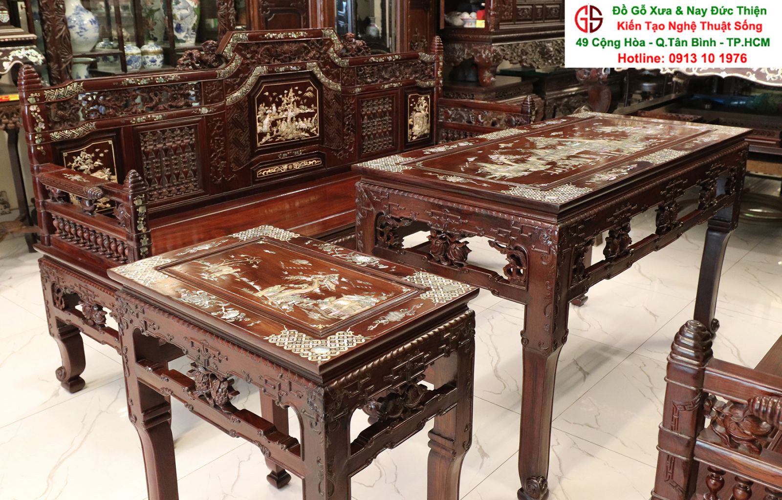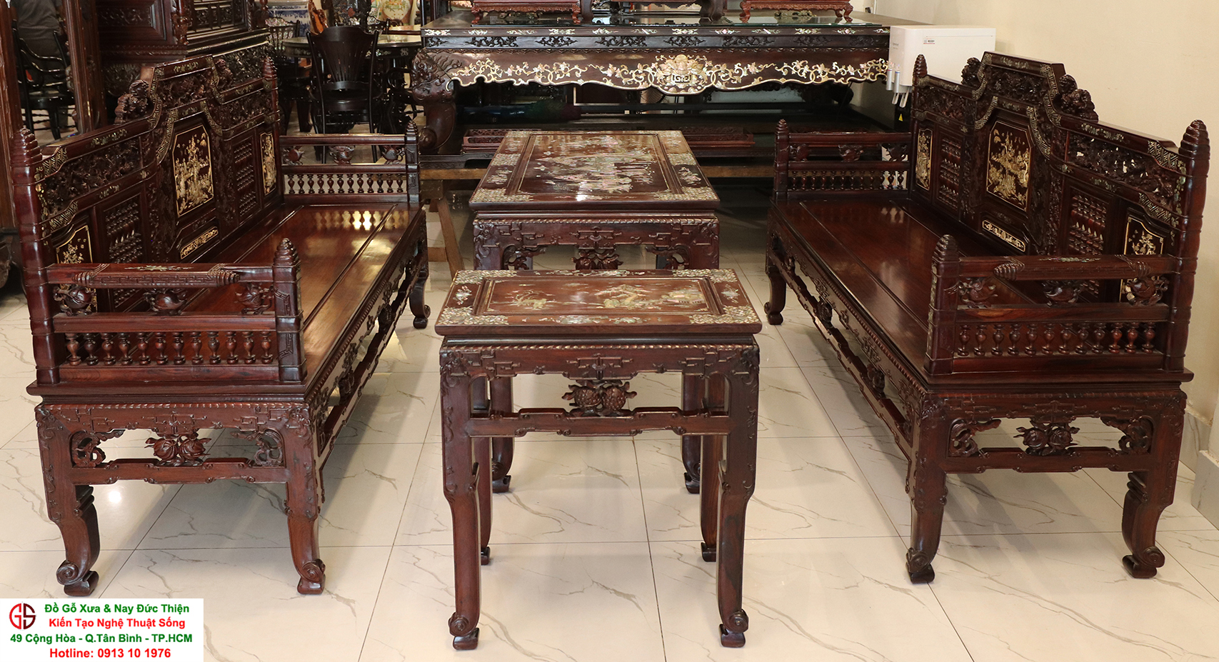 - Bàn ghế Louis, đôn trống gỗ trắc, bộ bàn ăn cẩn ốc, bàn ghế phương kỷ, bàn trung đường cẩn ốc xà cừ