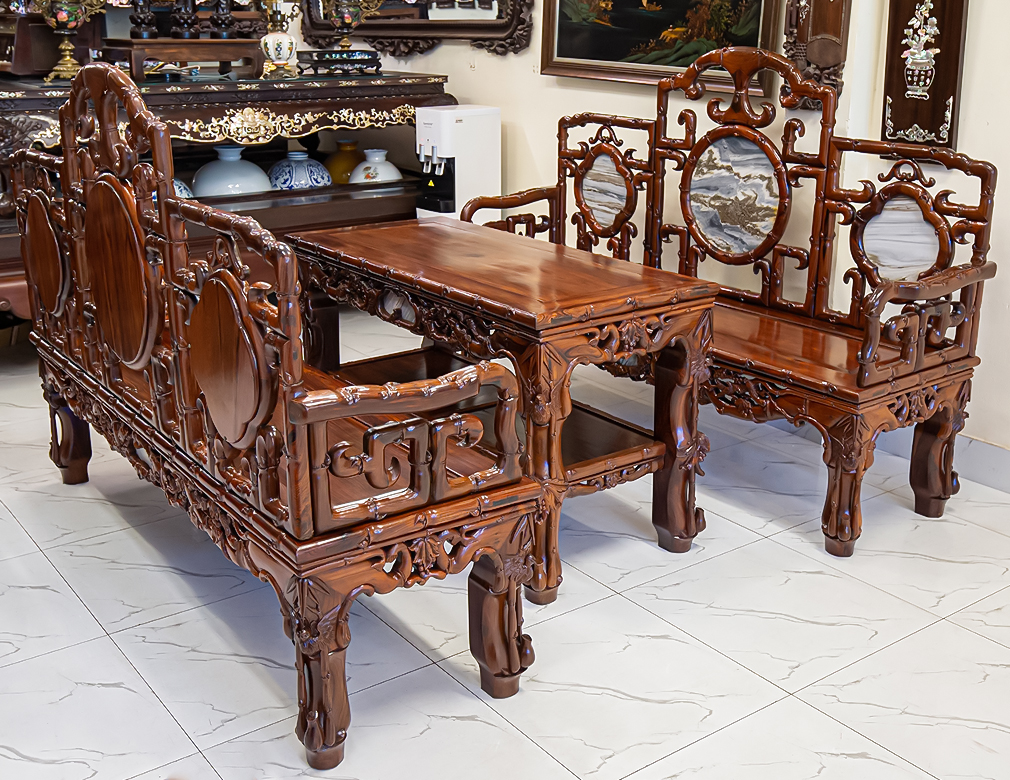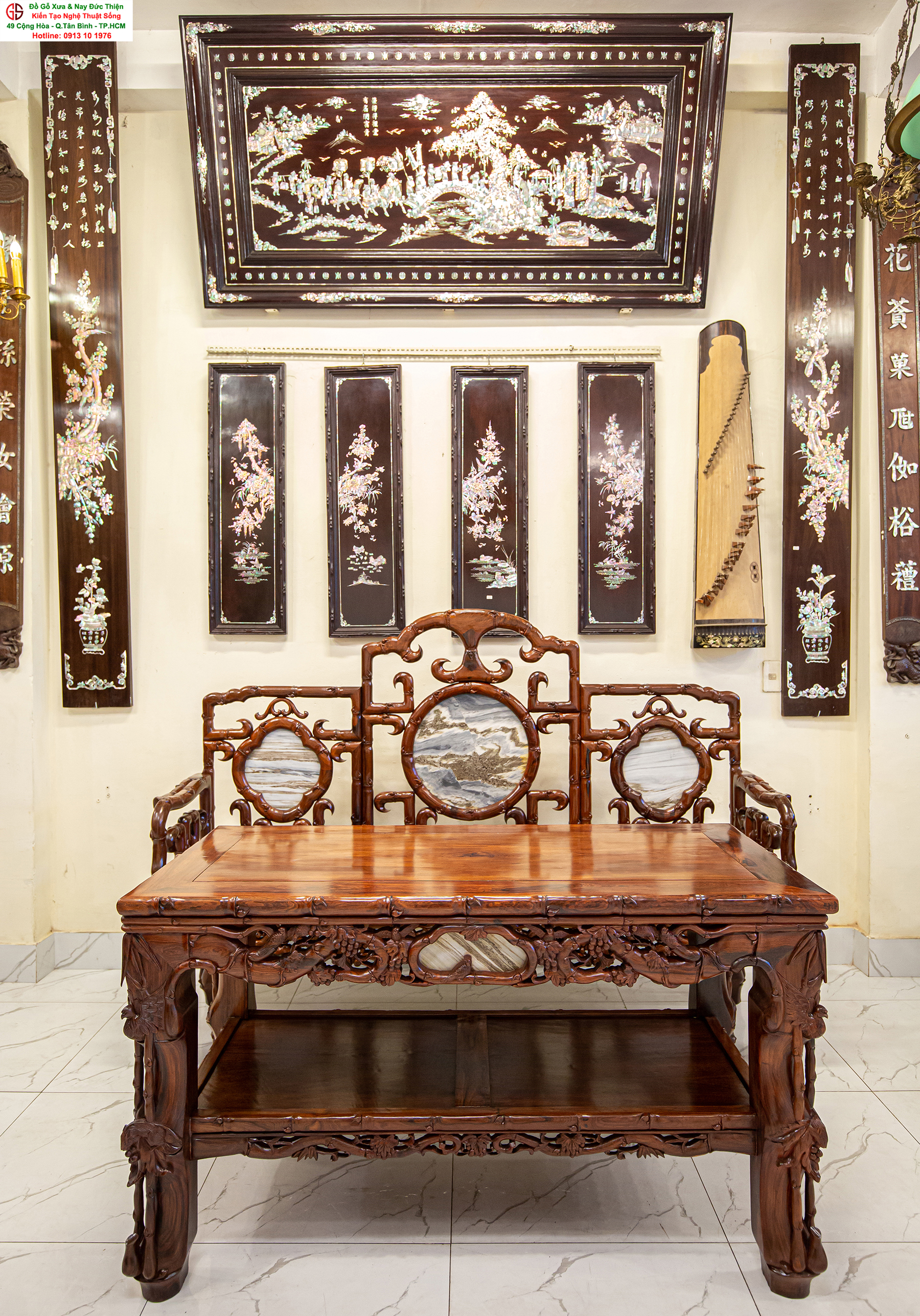- Bàn ghế Louis, đôn trống gỗ trắc, bộ bàn ăn cẩn ốc, bàn ghế phương kỷ, bàn trung đường cẩn ốc xà cừ
