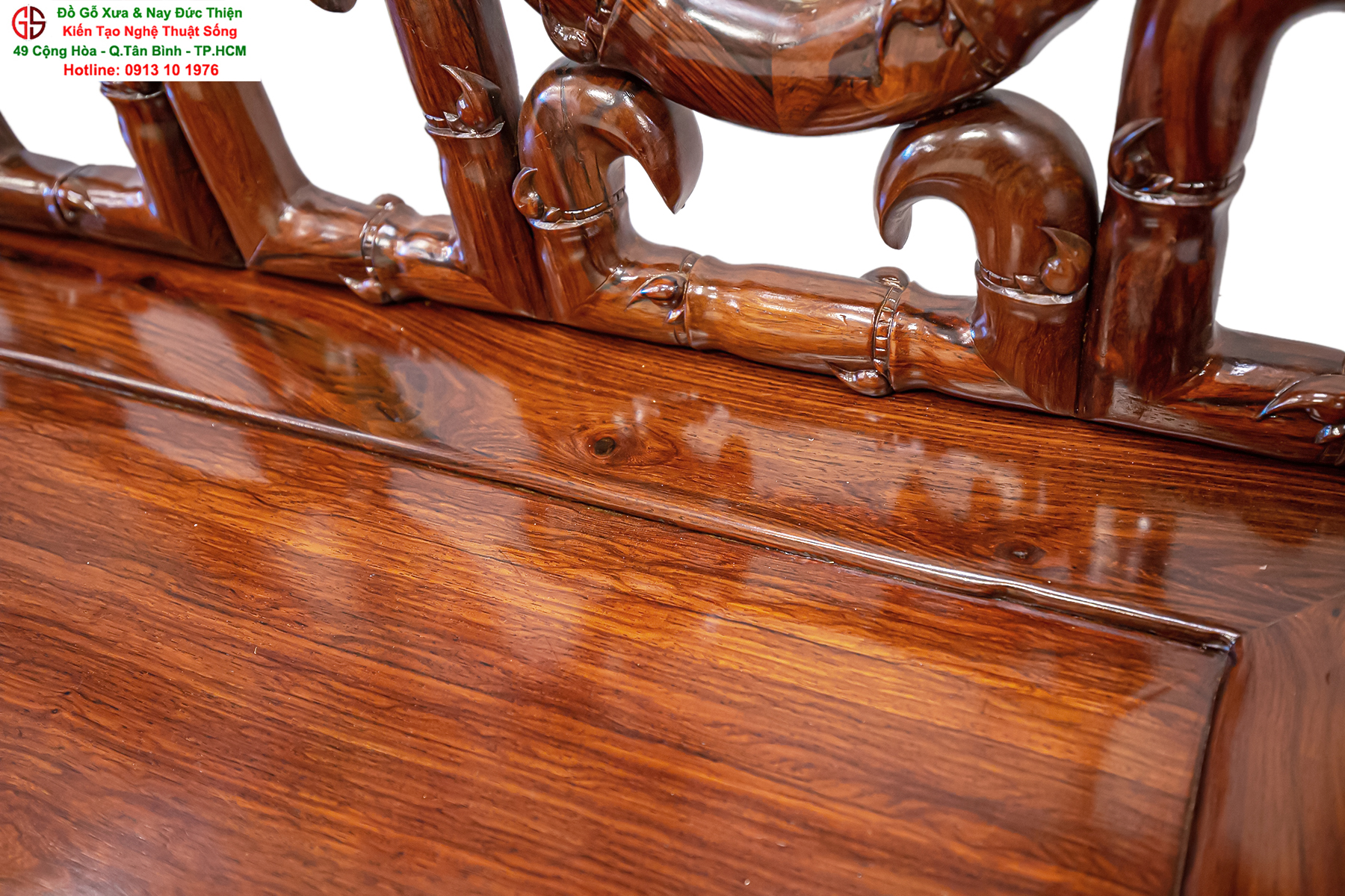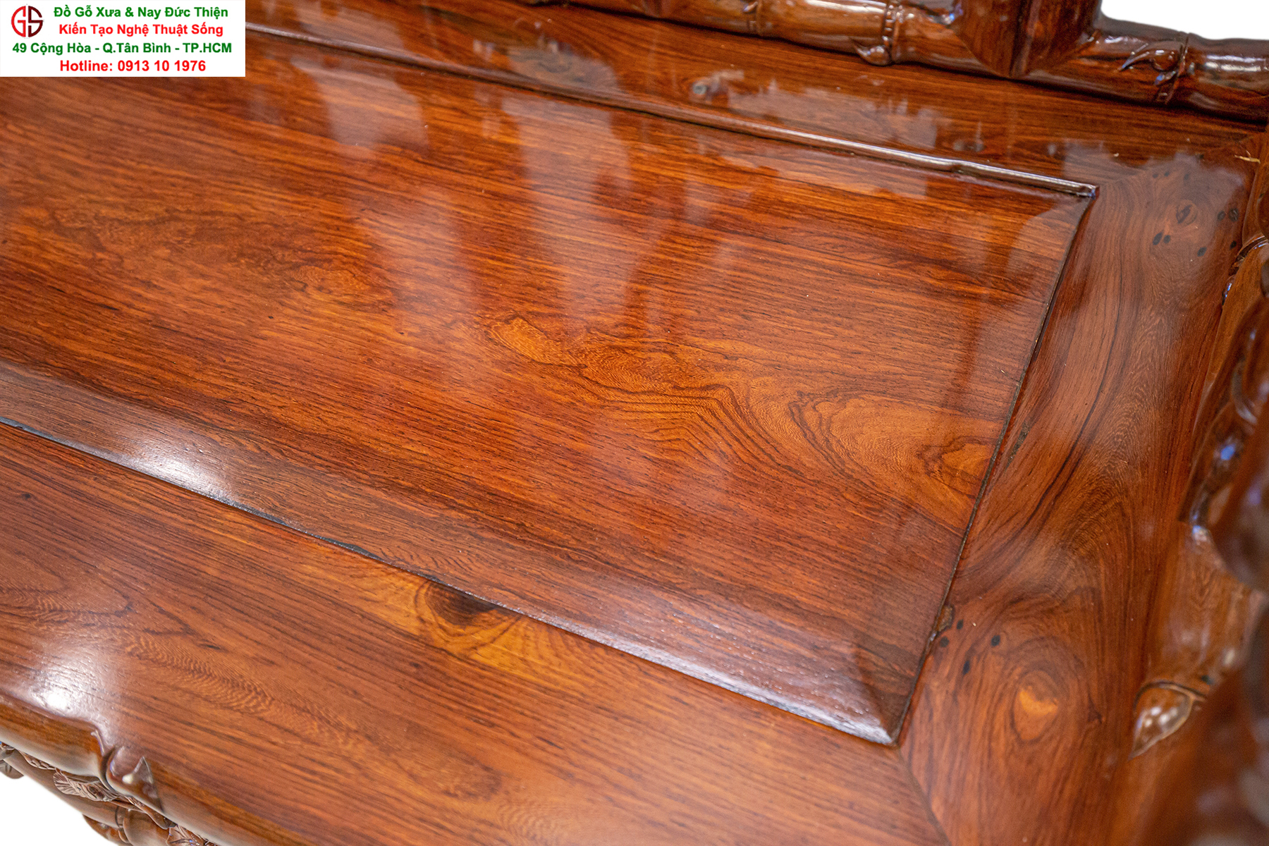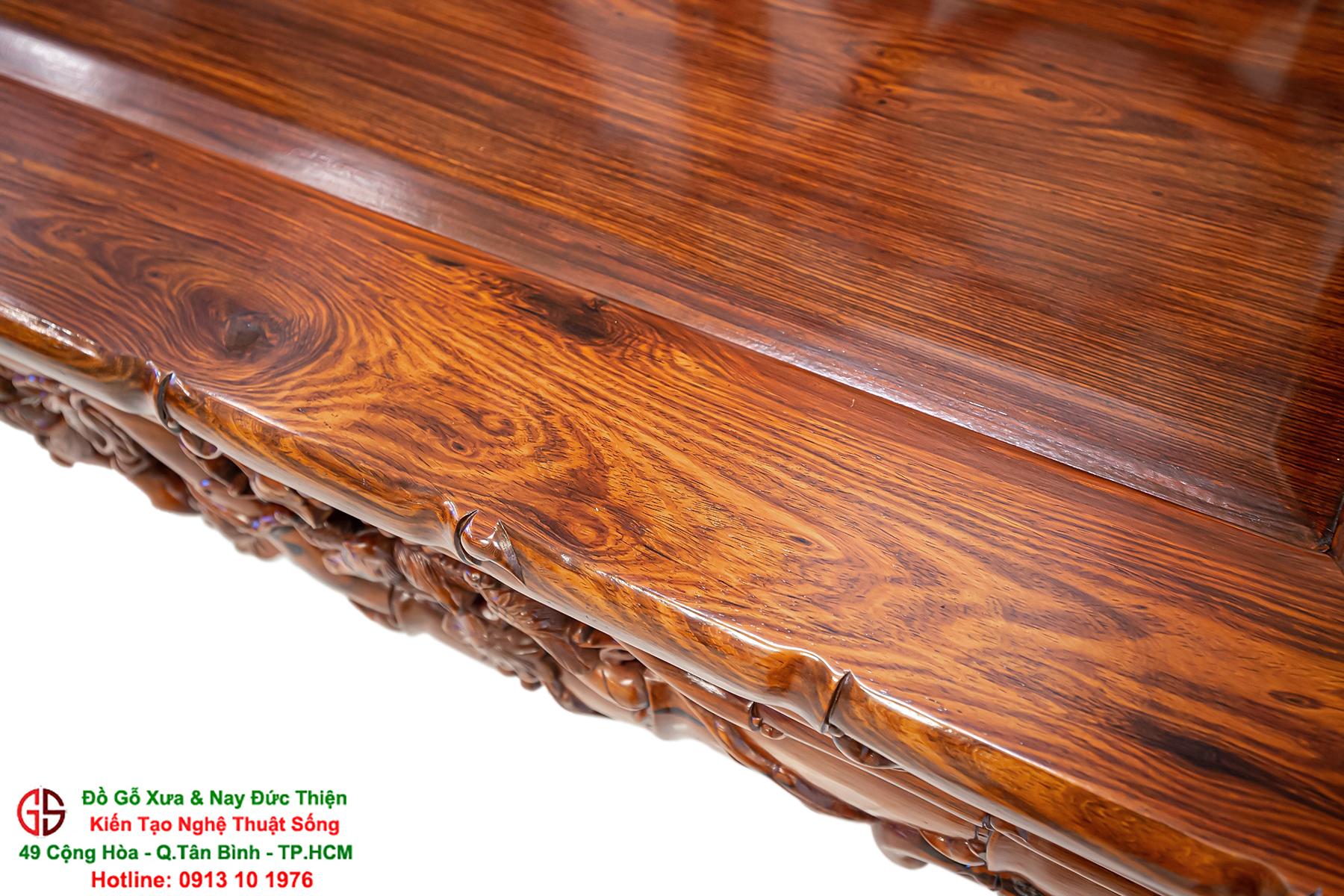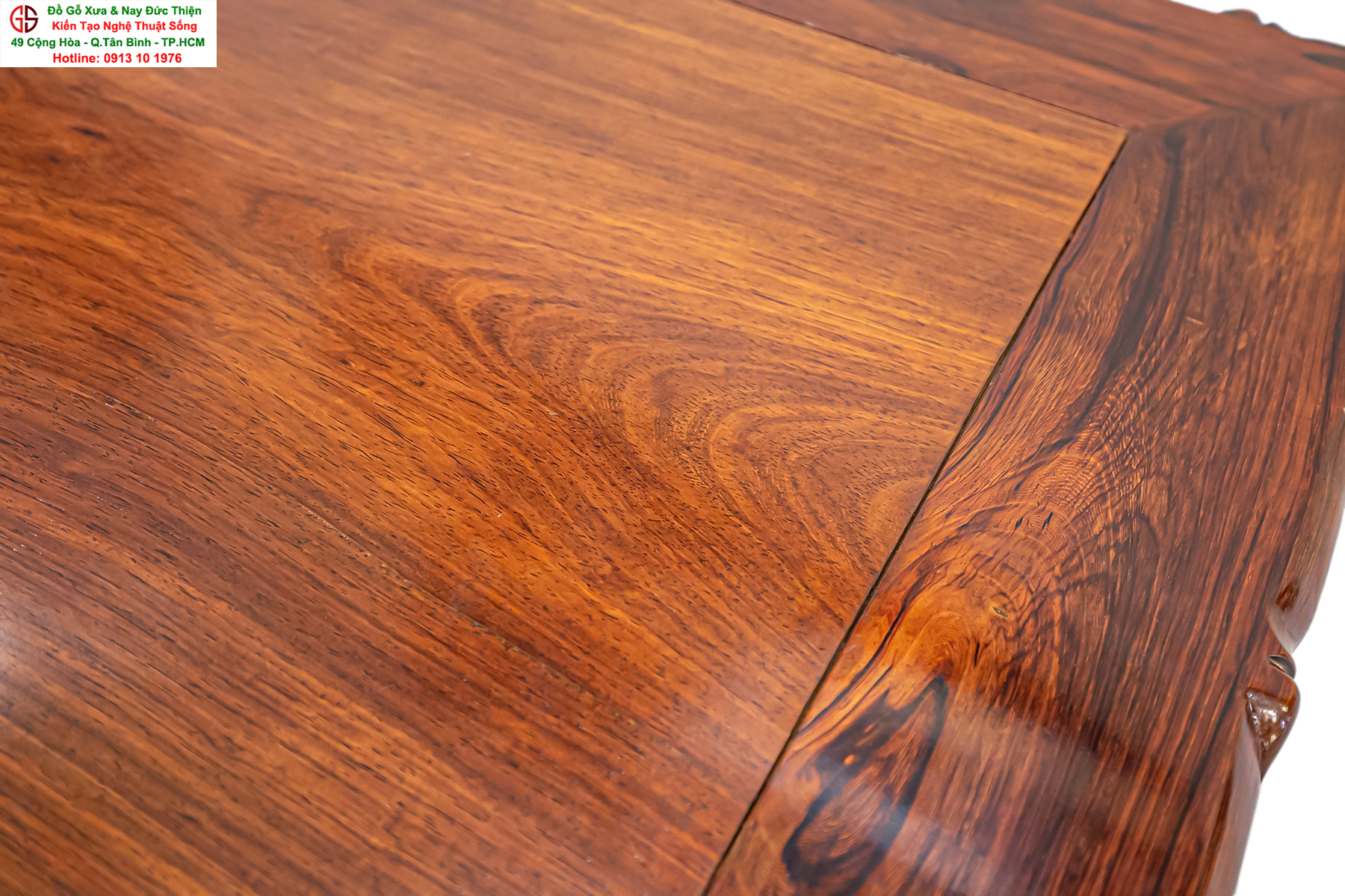 Chất liệu: Đục chạm tinh xảo + Tất cả đều được làm từ gỗ cẩm lai 100%, gỗ lục lõi, không chắp ghép và không bám rác ( bảo hành Gỗ Cẩm Lai Ta).