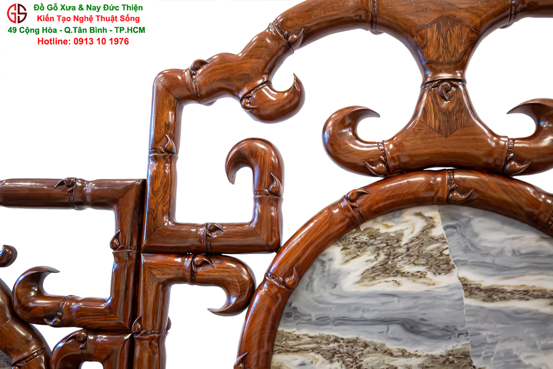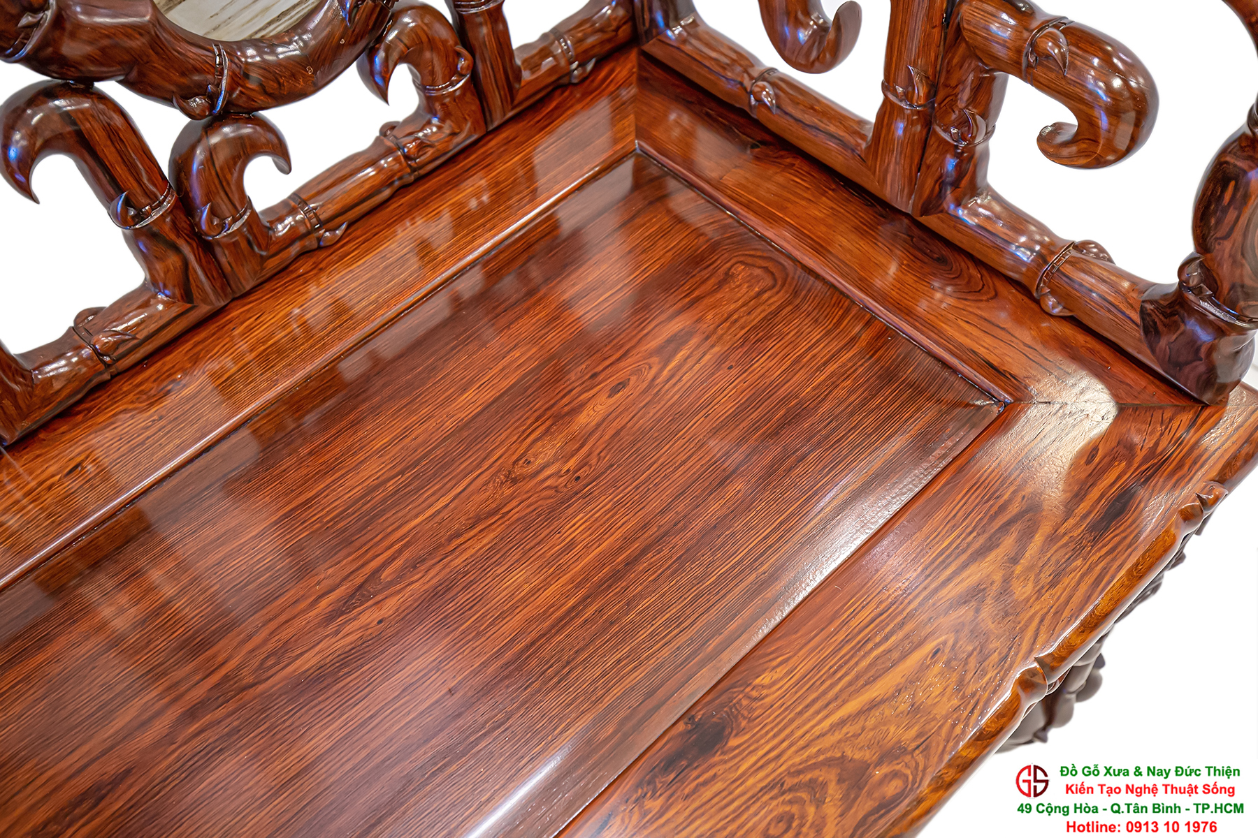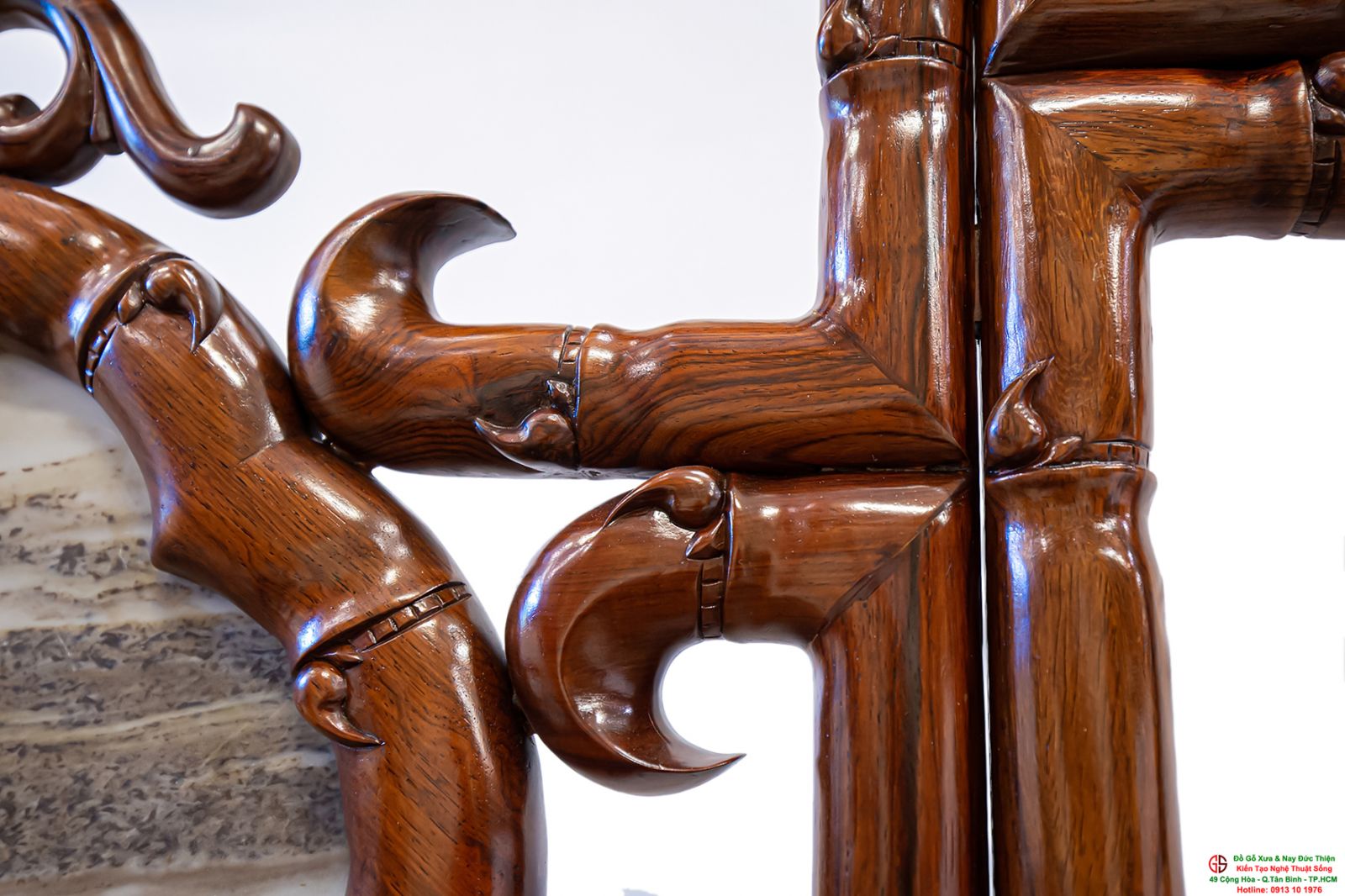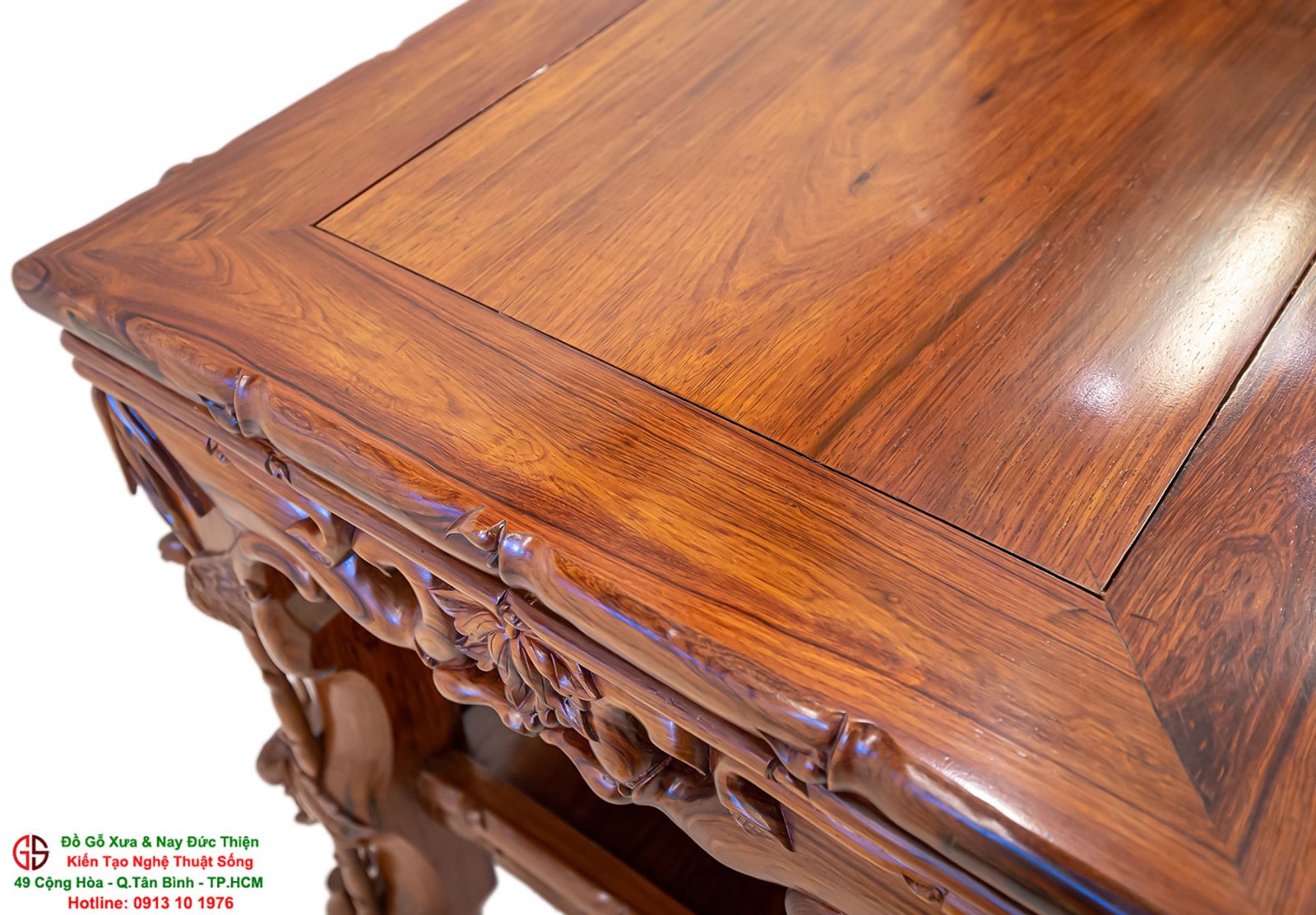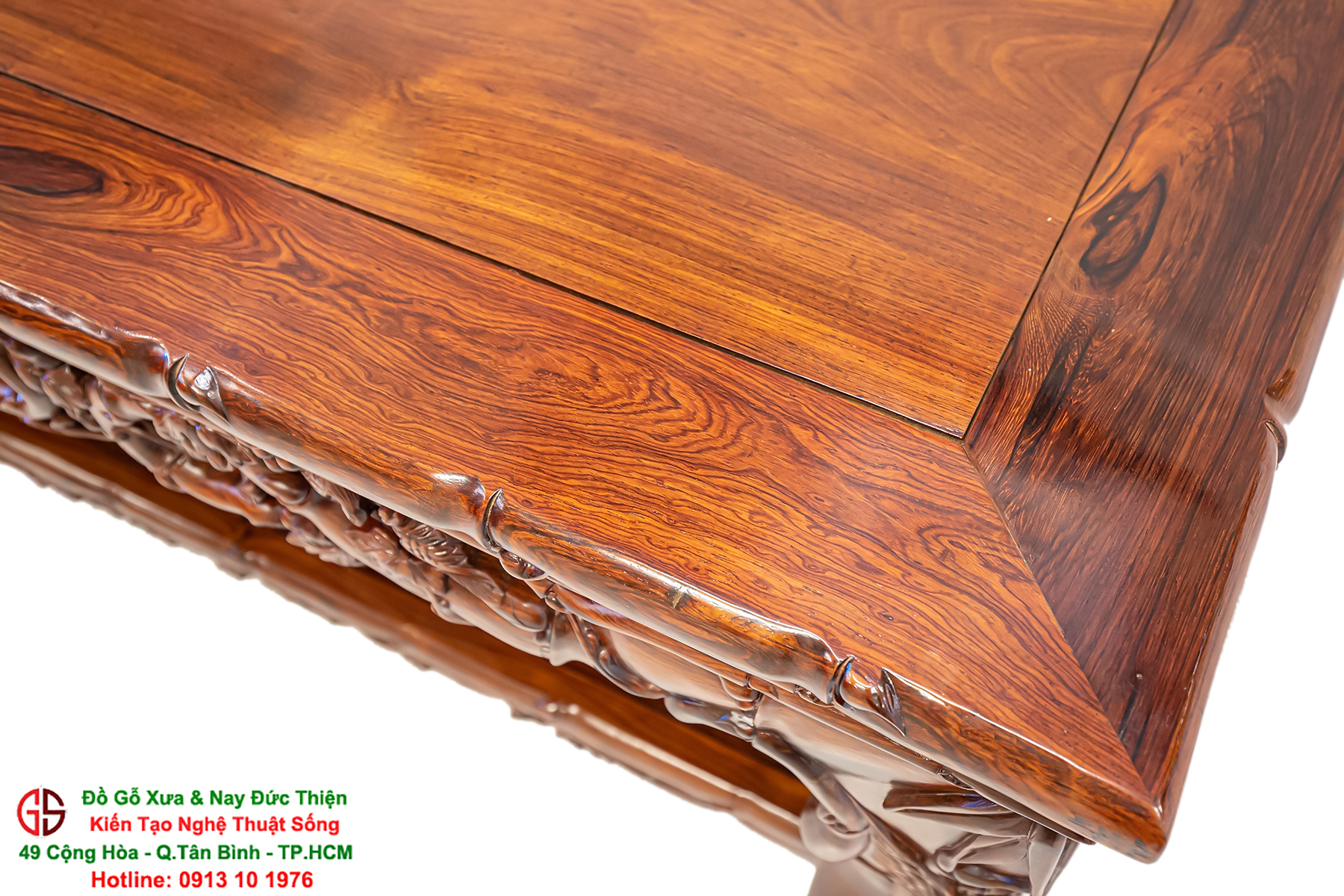 Chất liệu: Đục chạm tinh xảo + Tất cả đều được làm từ gỗ cẩm lai 100%, gỗ lục lõi, không chắp ghép và không bám rác ( bảo hành Gỗ Cẩm Lai Ta).