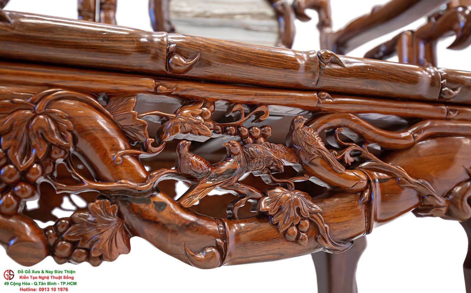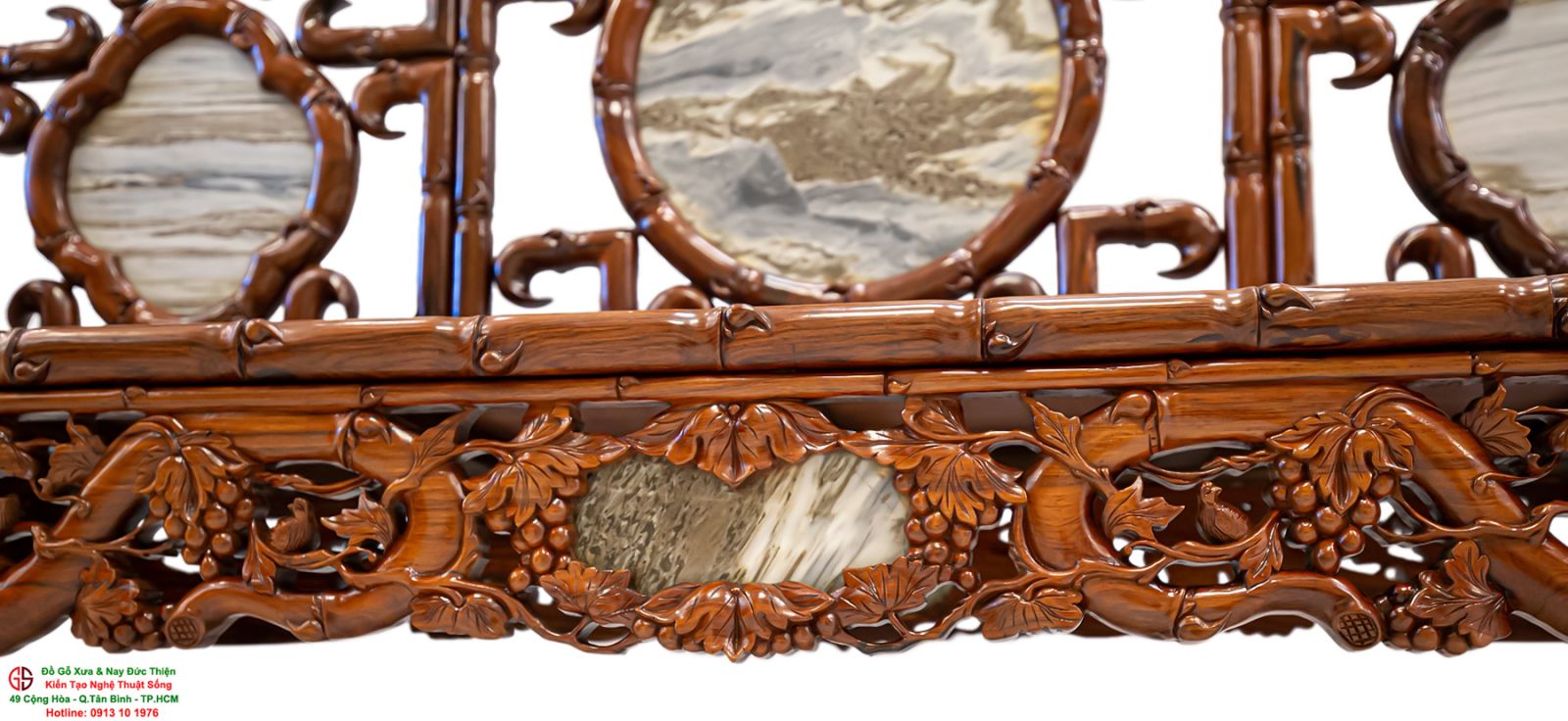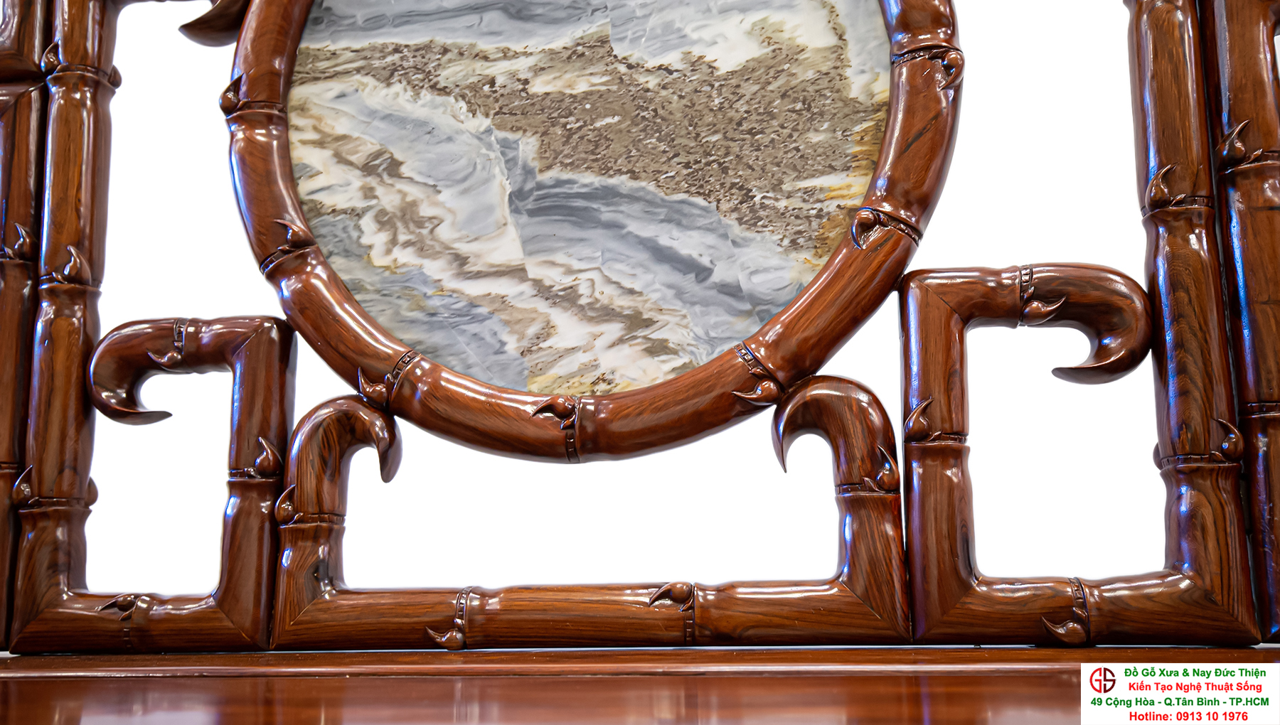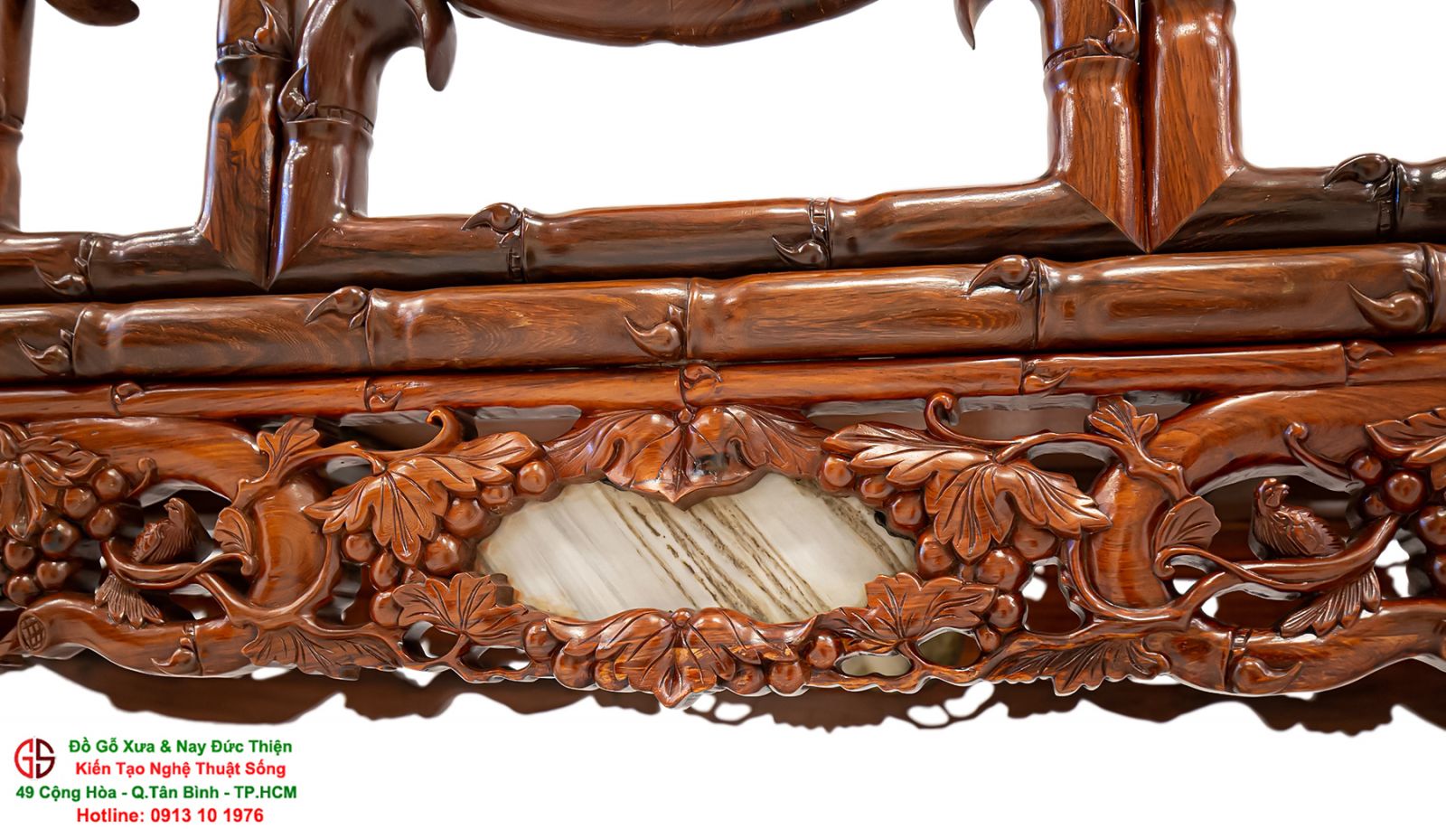 Chất liệu: Đục chạm tinh xảo + Tất cả đều được làm từ gỗ cẩm lai 100%, gỗ lục lõi, không chắp ghép và không bám rác ( bảo hành Gỗ Cẩm Lai Ta).