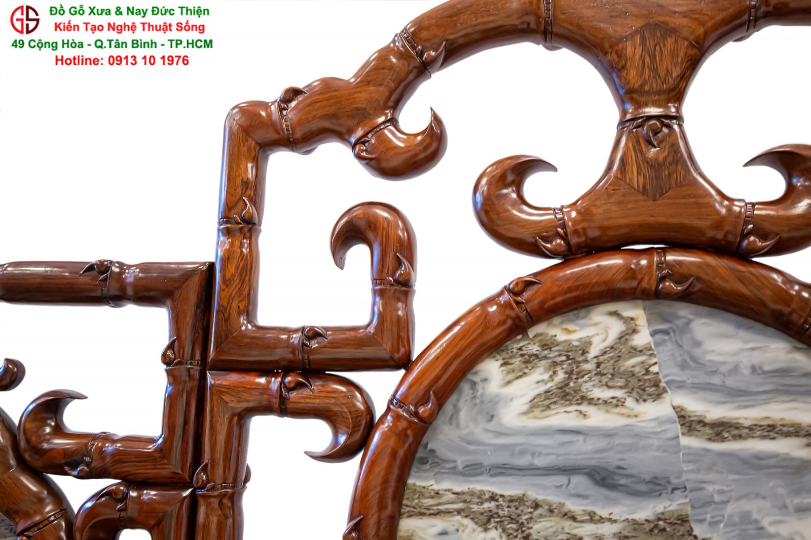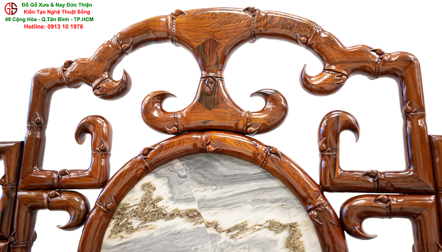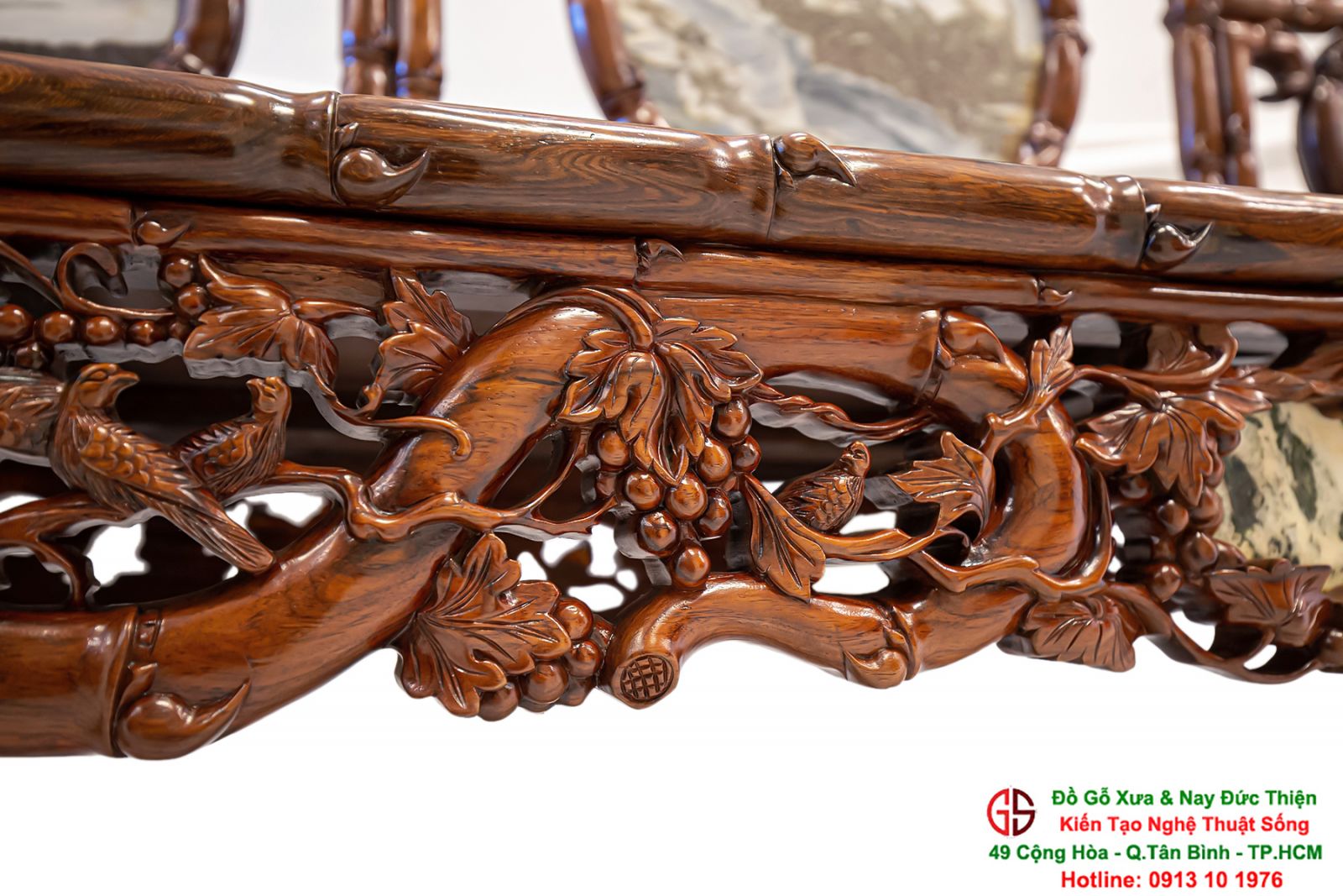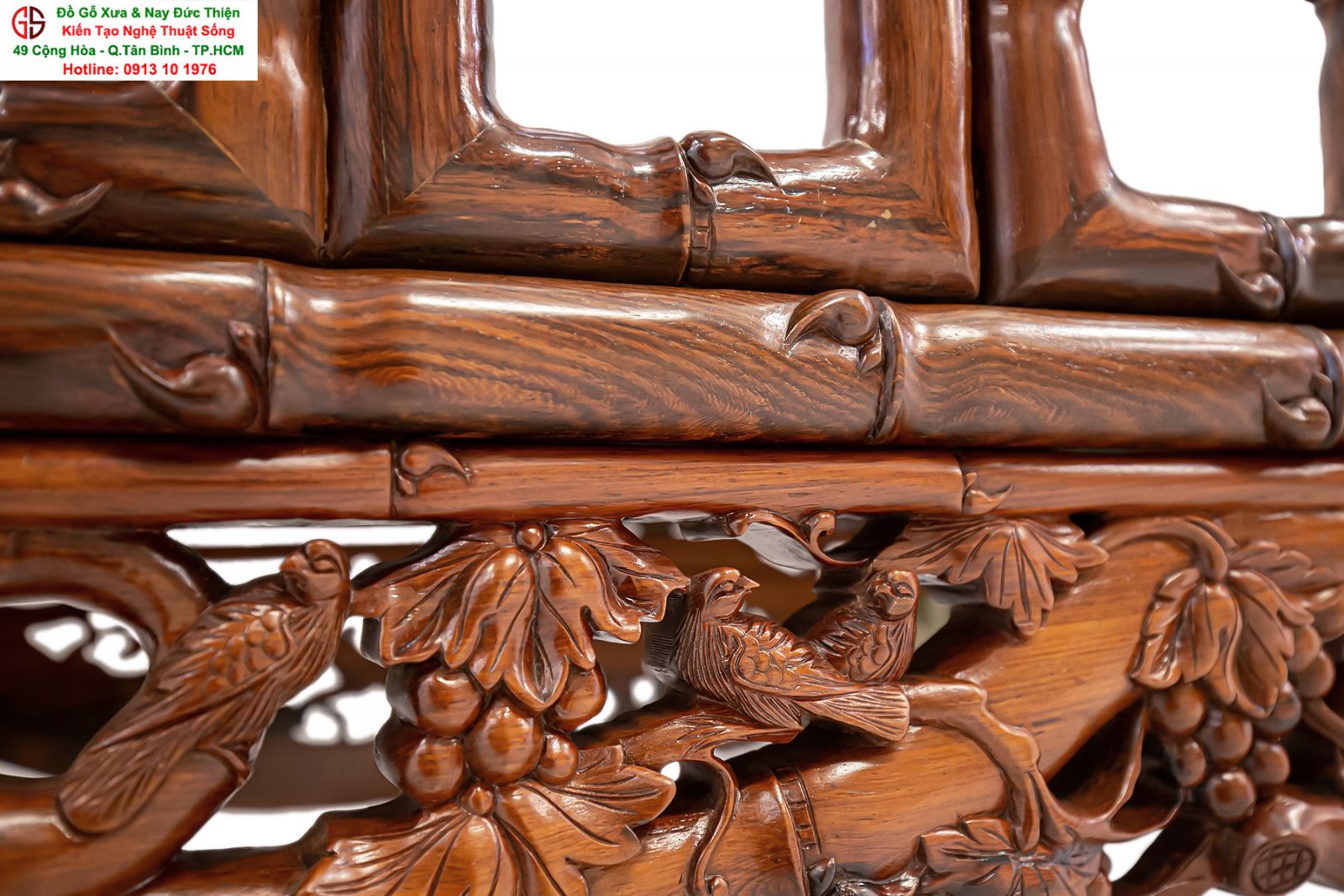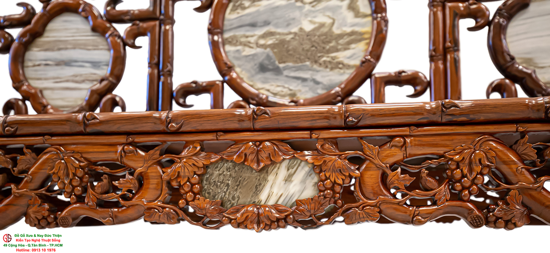 Chất liệu: Đục chạm tinh xảo + Tất cả đều được làm từ gỗ cẩm lai 100%, gỗ lục lõi, không chắp ghép và không bám rác ( bảo hành Gỗ Cẩm Lai Ta).