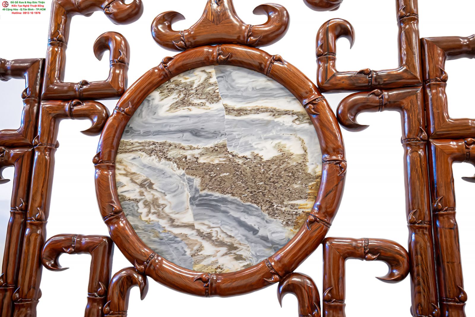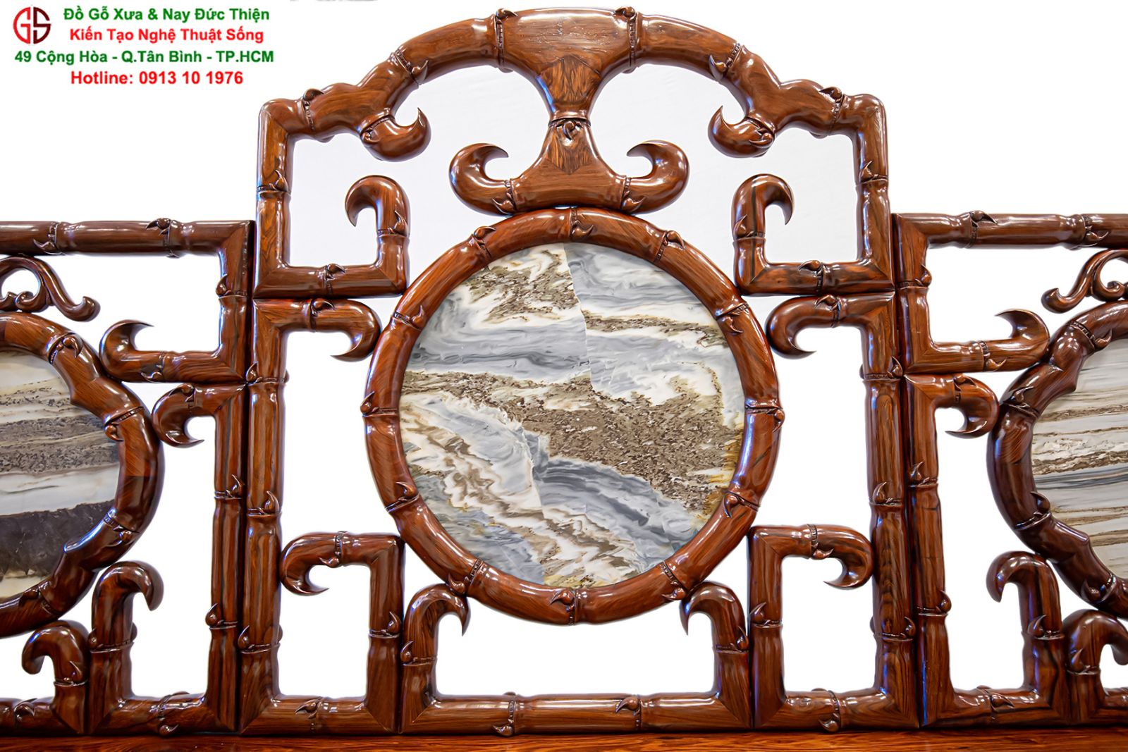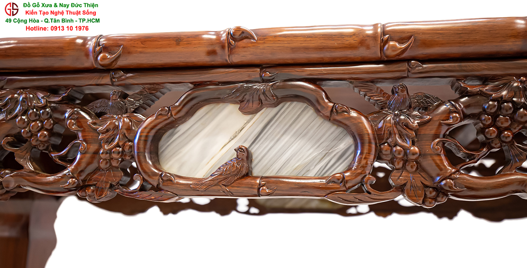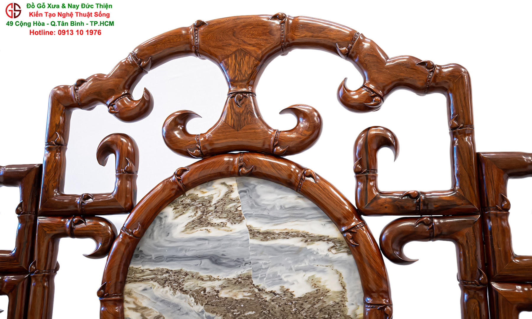 Chất liệu: Đục chạm tinh xảo + Tất cả đều được làm từ gỗ cẩm lai 100%, gỗ lục lõi, không chắp ghép và không bám rác ( bảo hành Gỗ Cẩm Lai Ta).