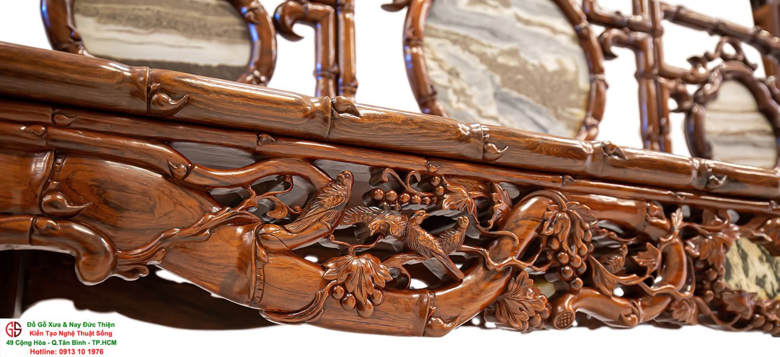 - Sập gỗ chạm đẹp: sập chạm mai điểu, sập Louis chạm 4 mặt.