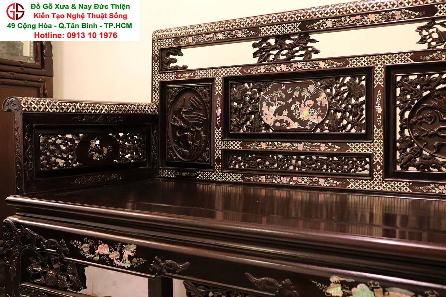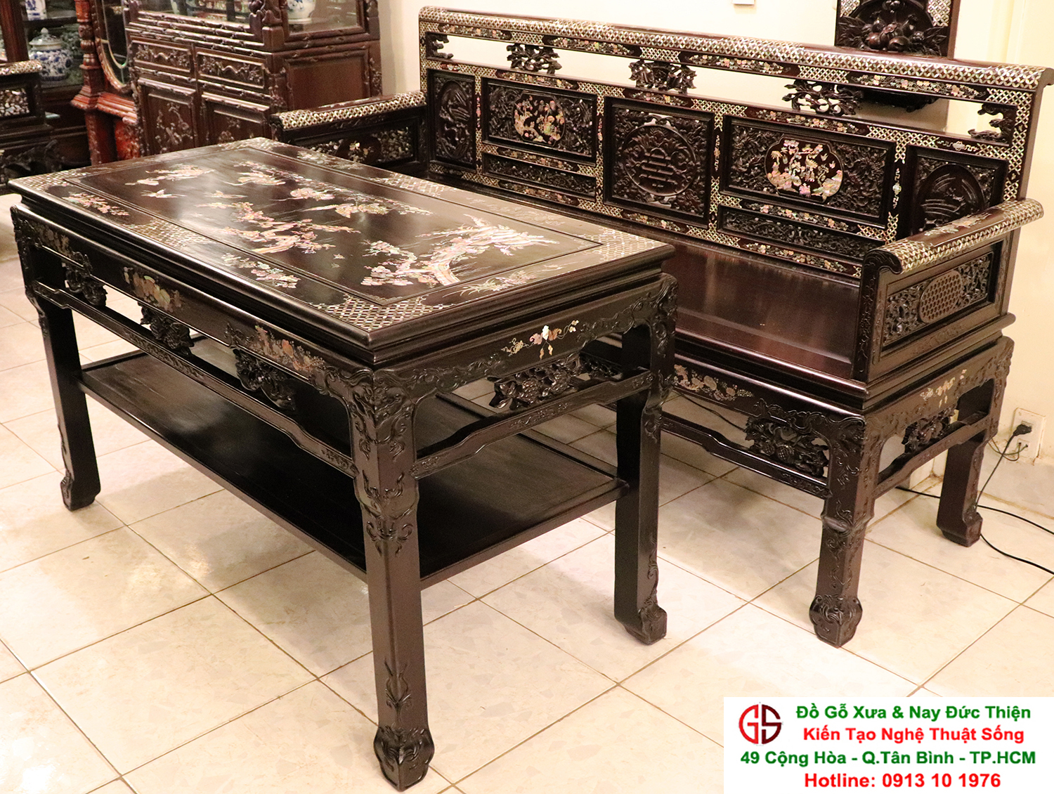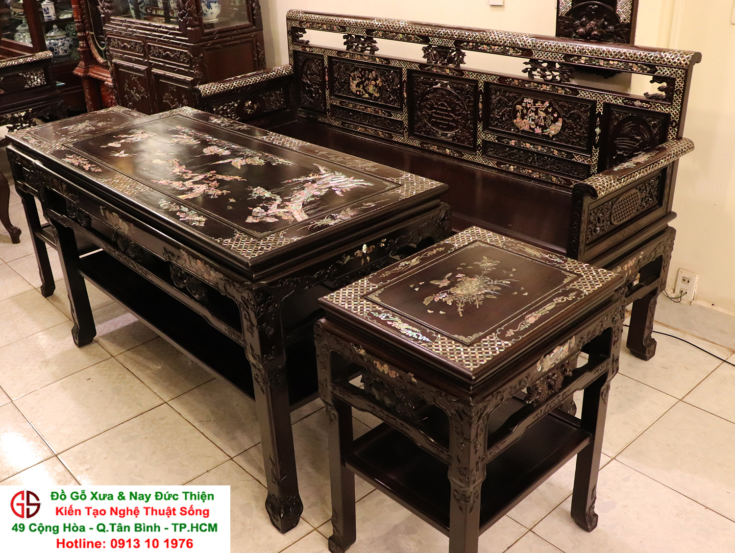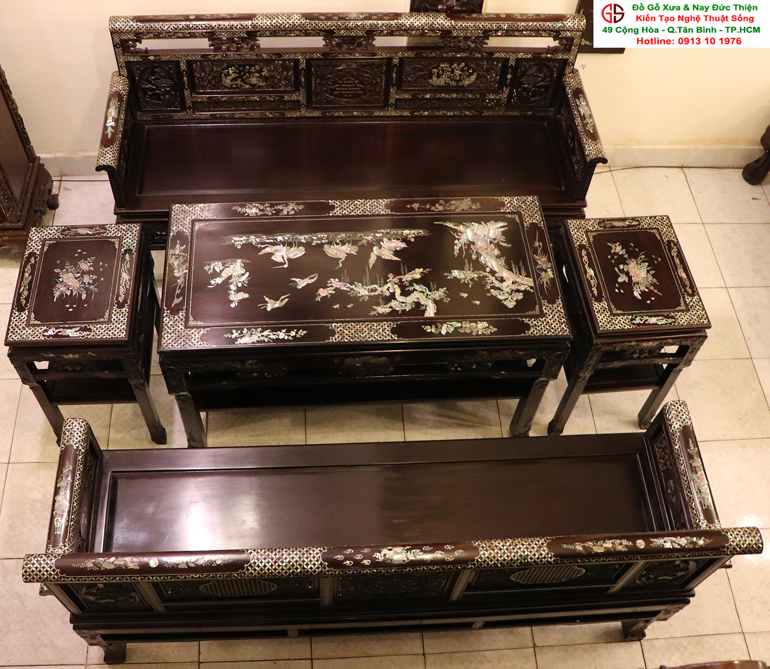 - Bàn ghế Louis, đôn trống gỗ trắc, bộ bàn ăn cẩn ốc, bàn ghế phương kỷ, bàn trung đường cẩn ốc xà cừ