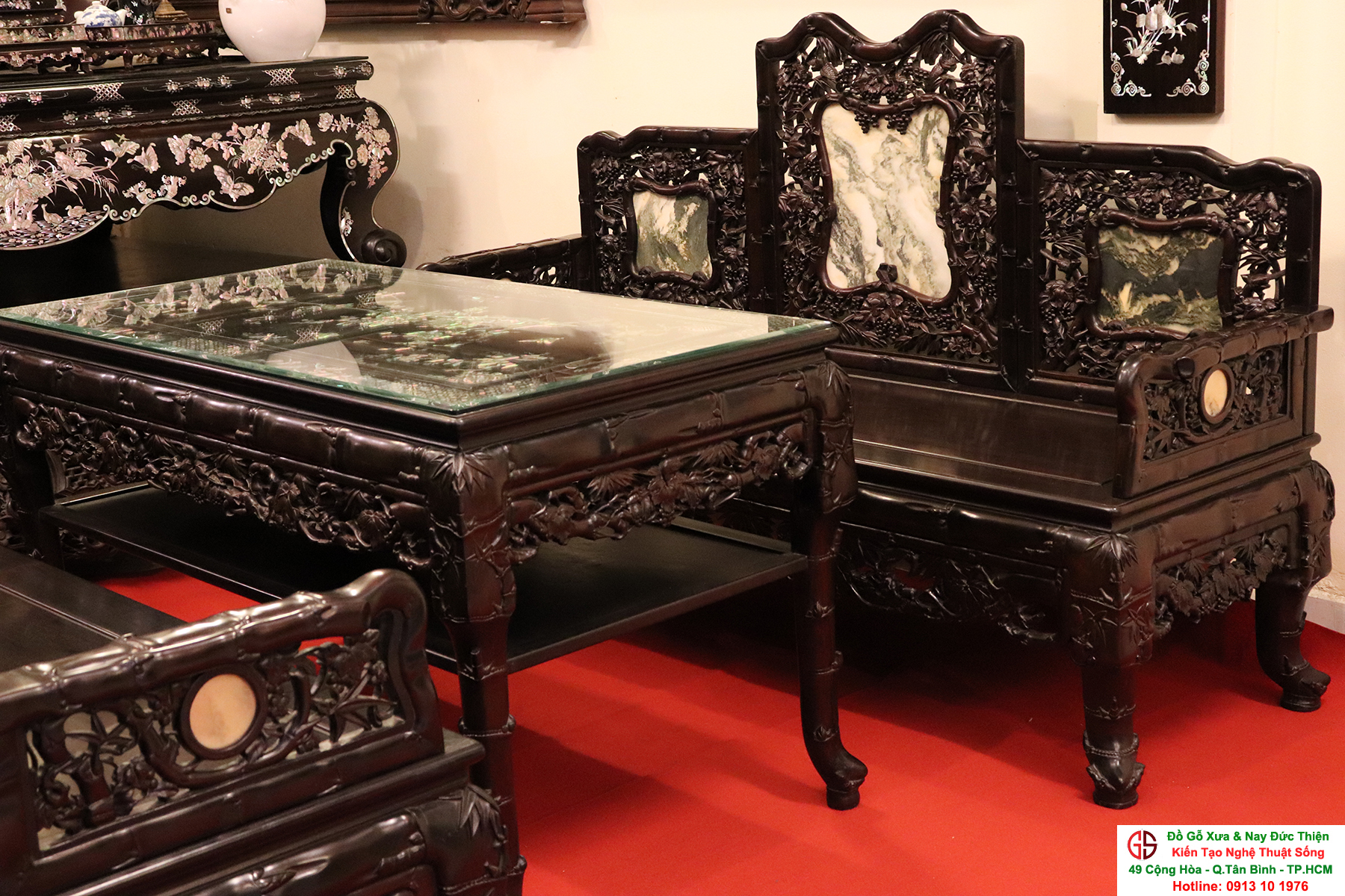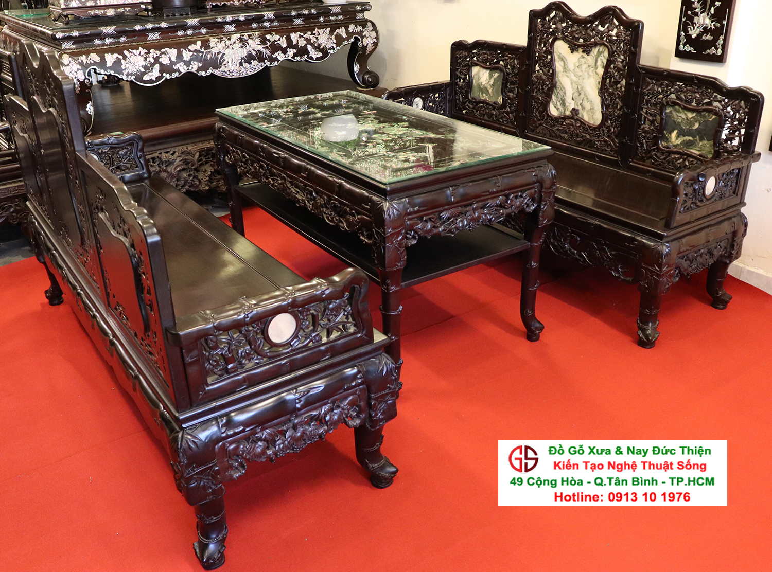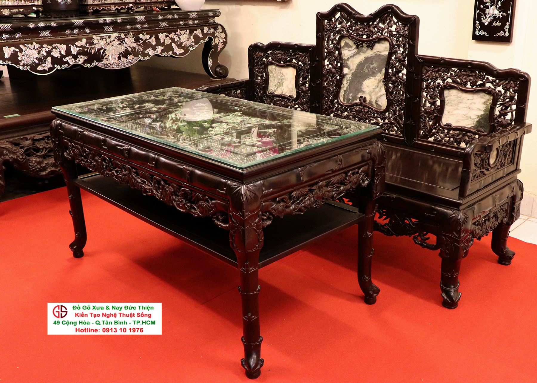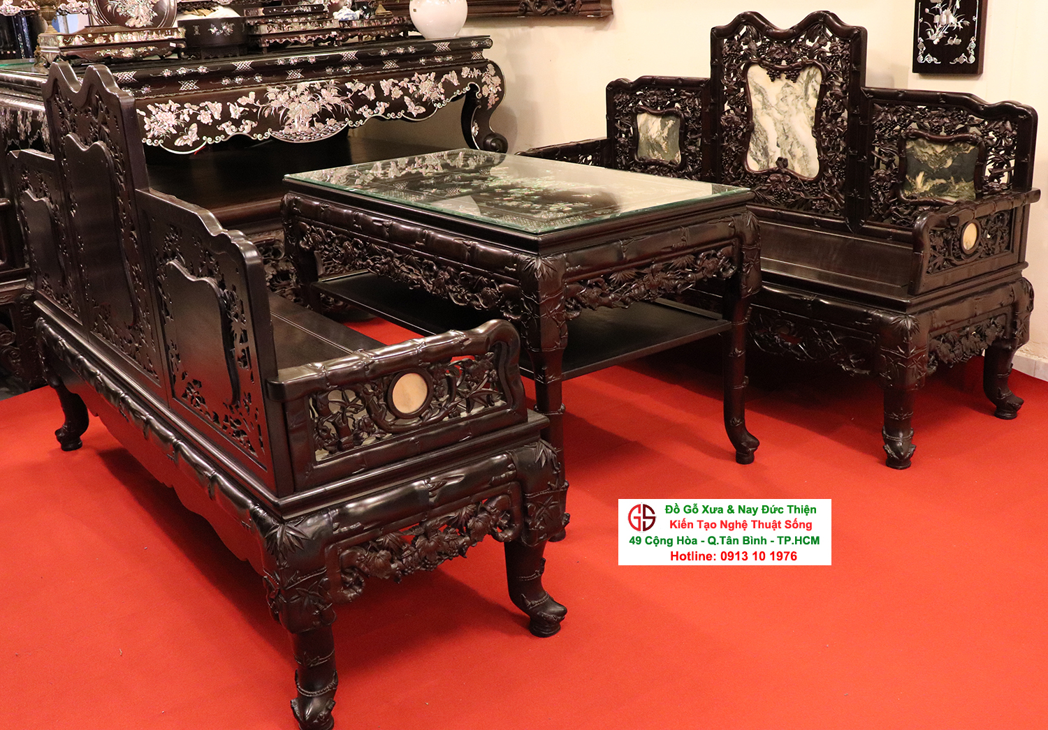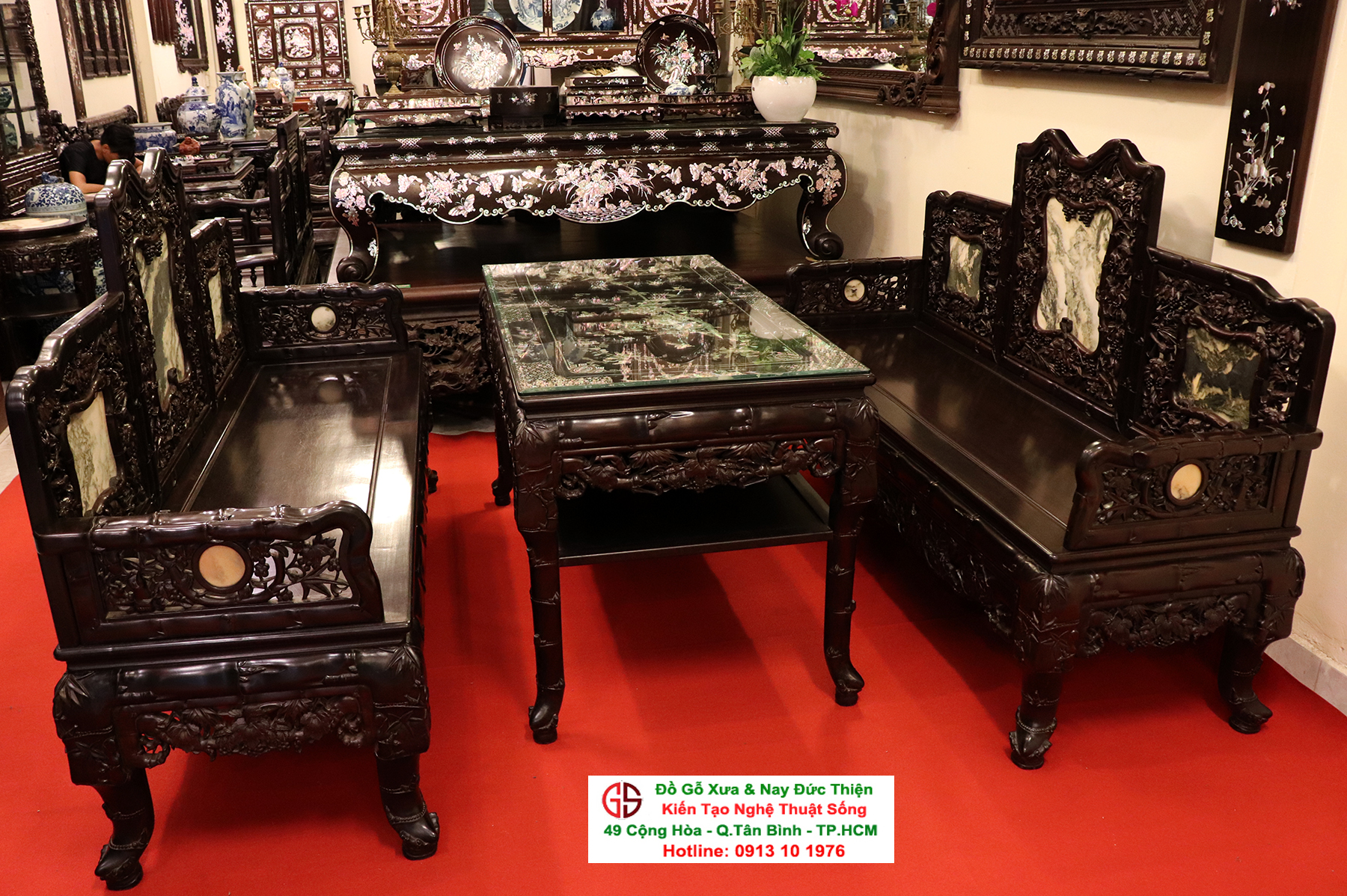 - Bàn ghế Louis, đôn trống gỗ trắc, bộ bàn ăn cẩn ốc, bàn ghế phương kỷ, bàn trung đường cẩn ốc xà cừ