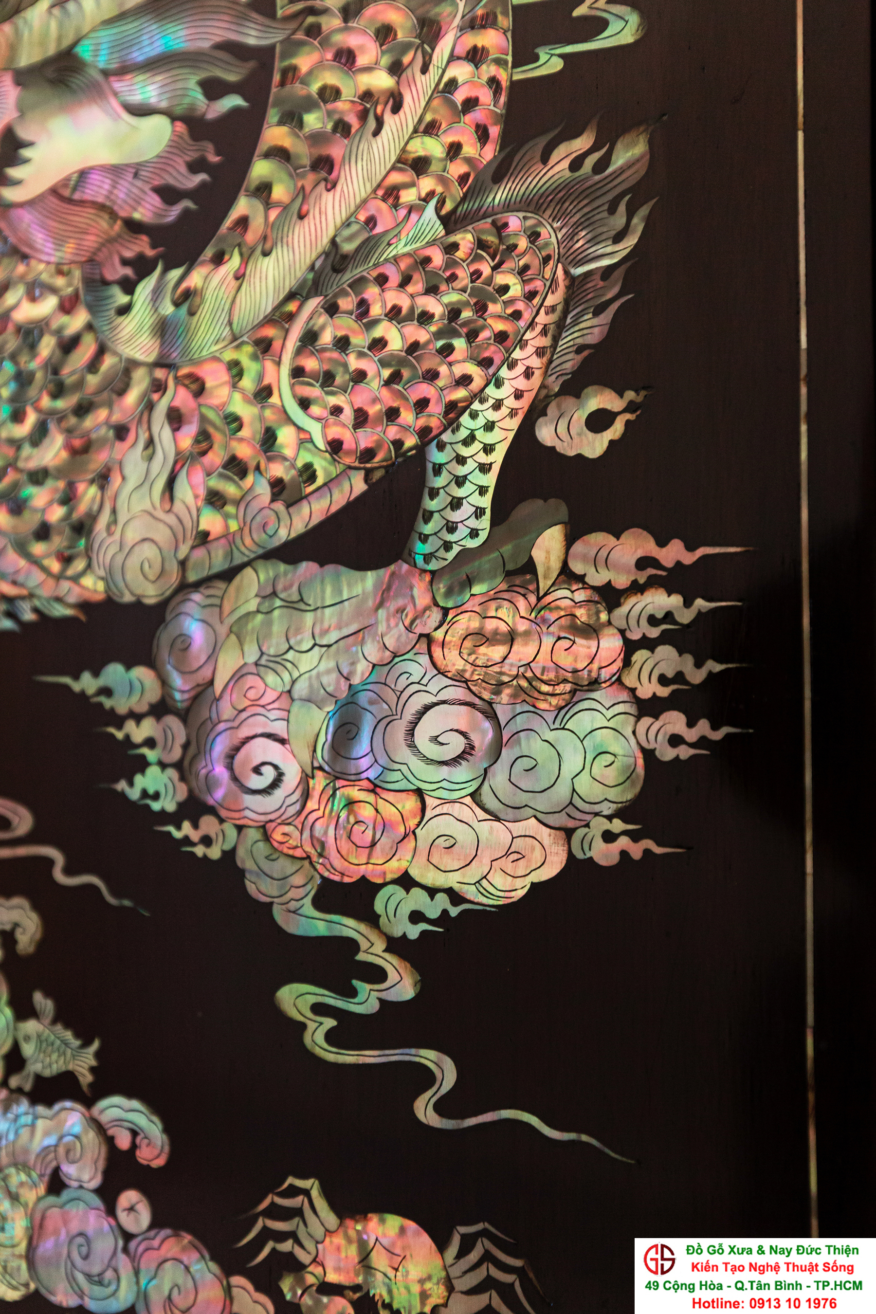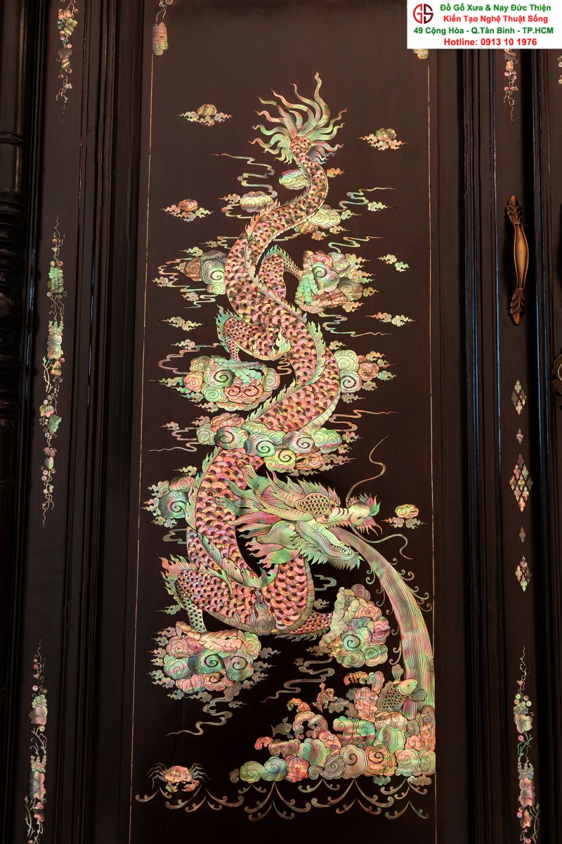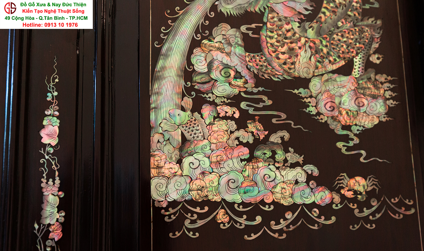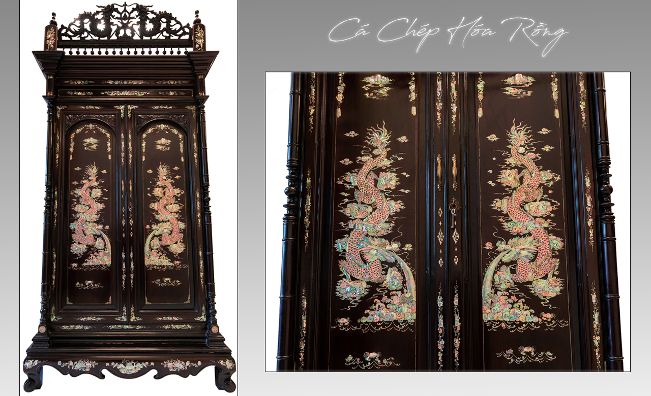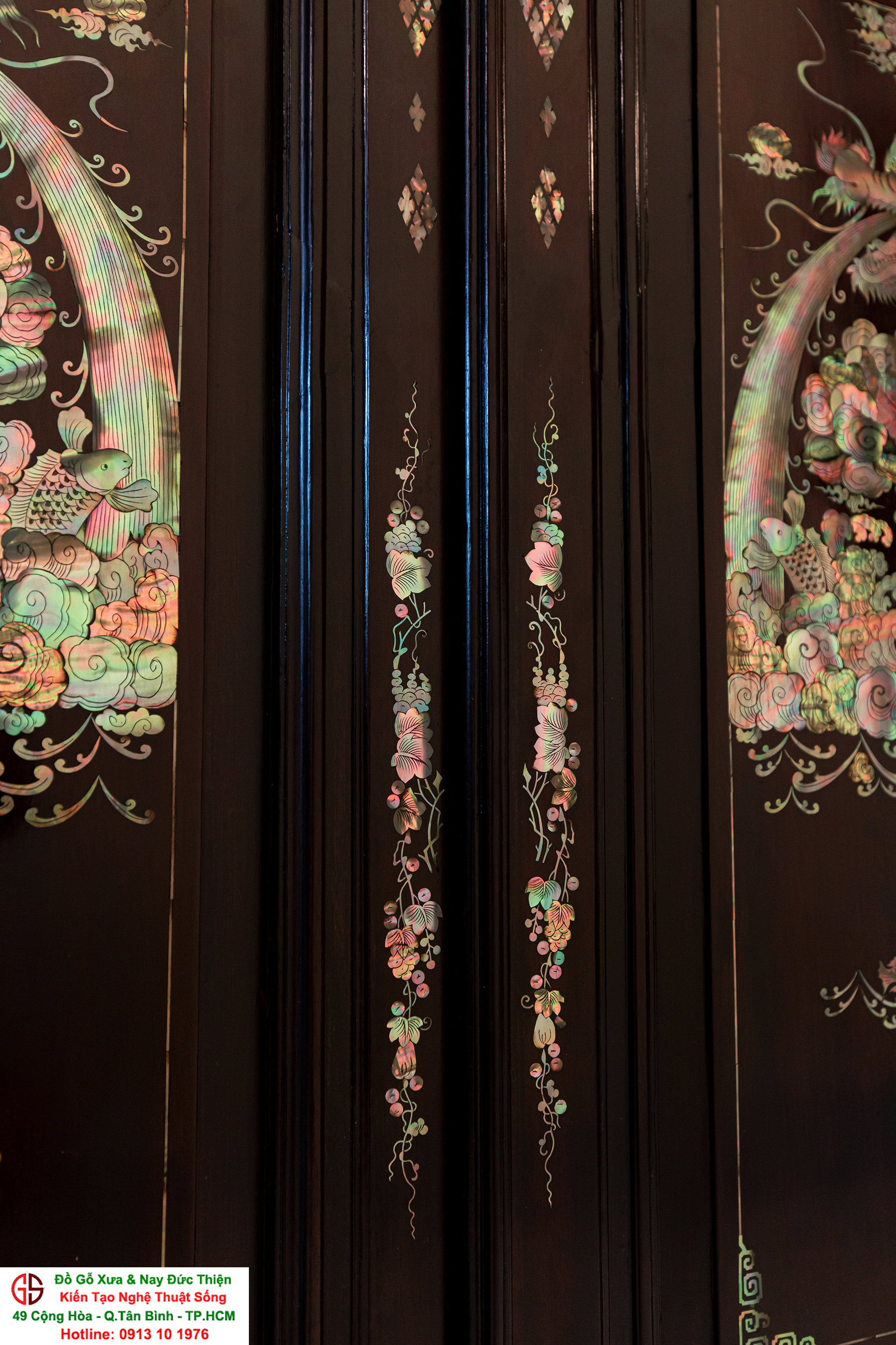 TỦ ÁO GỖ GỤ KHẢM ÓC ĐẸP [ TÍCH CÁ CHÉP HÓA RỒNG ]