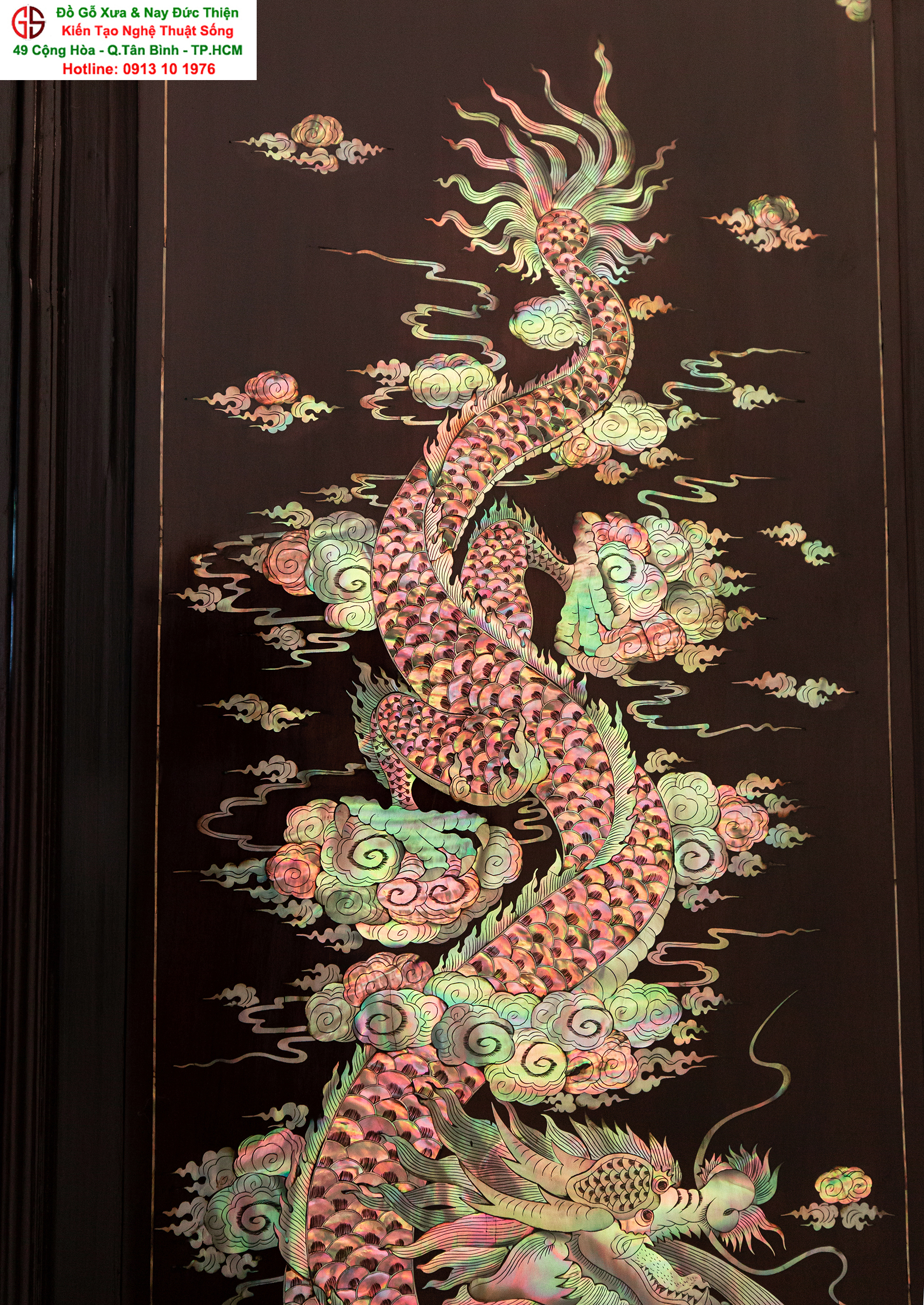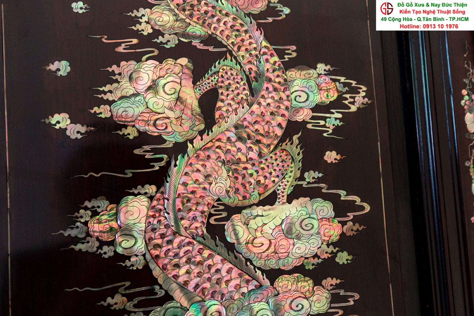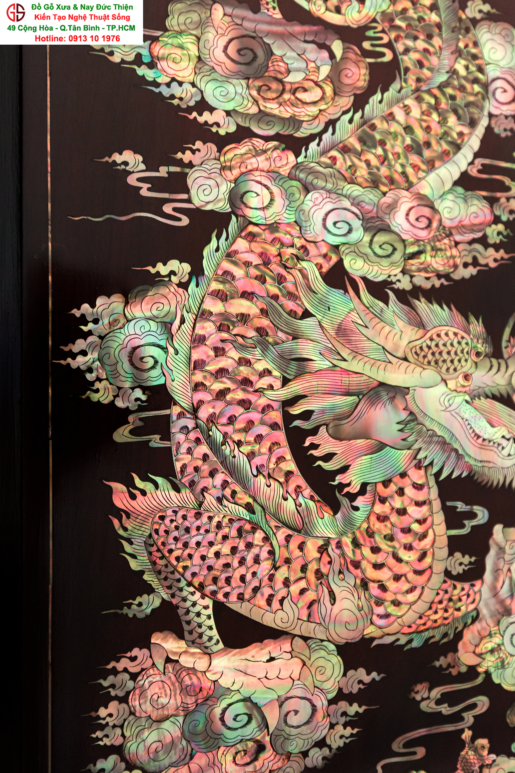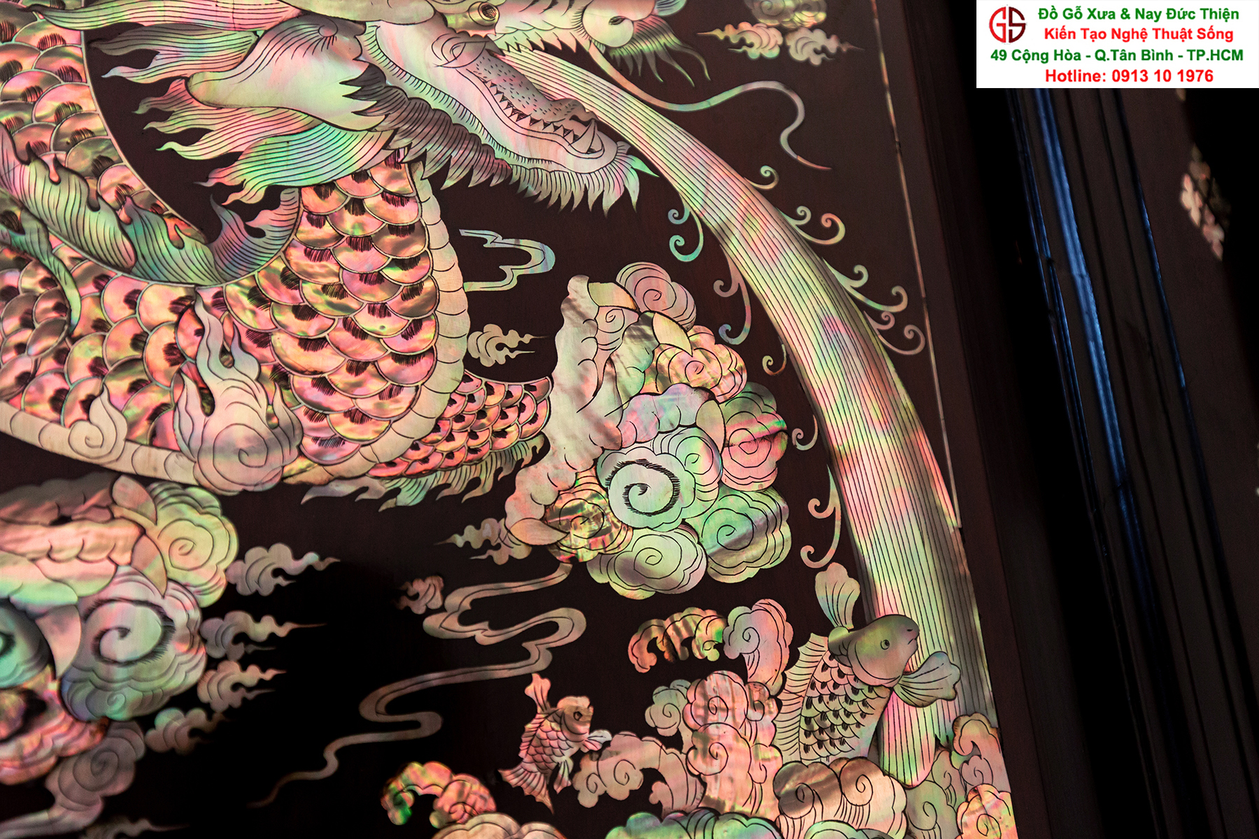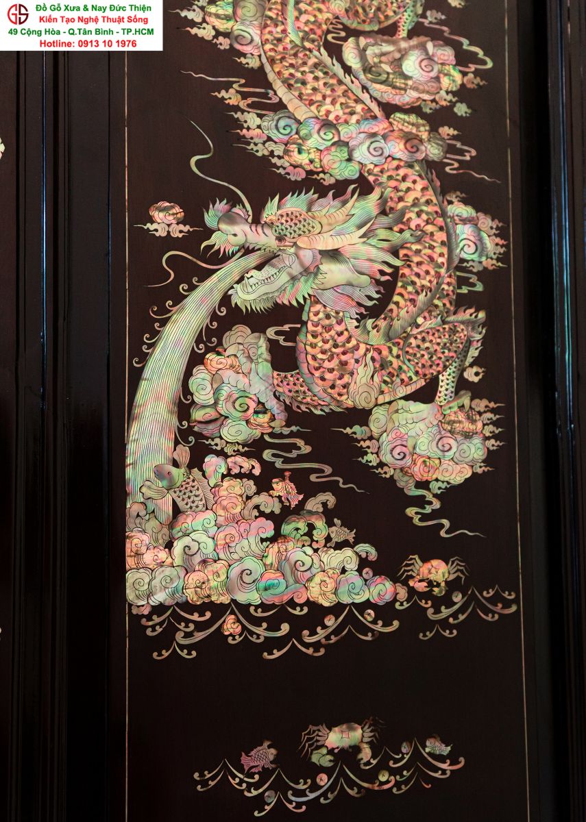TỦ ÁO GỖ GỤ KHẢM ÓC ĐẸP [ TÍCH CÁ CHÉP HÓA RỒNG ]