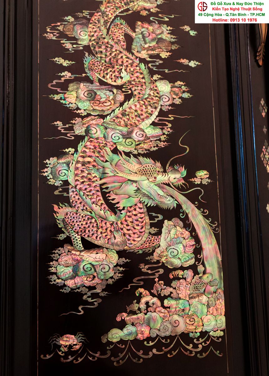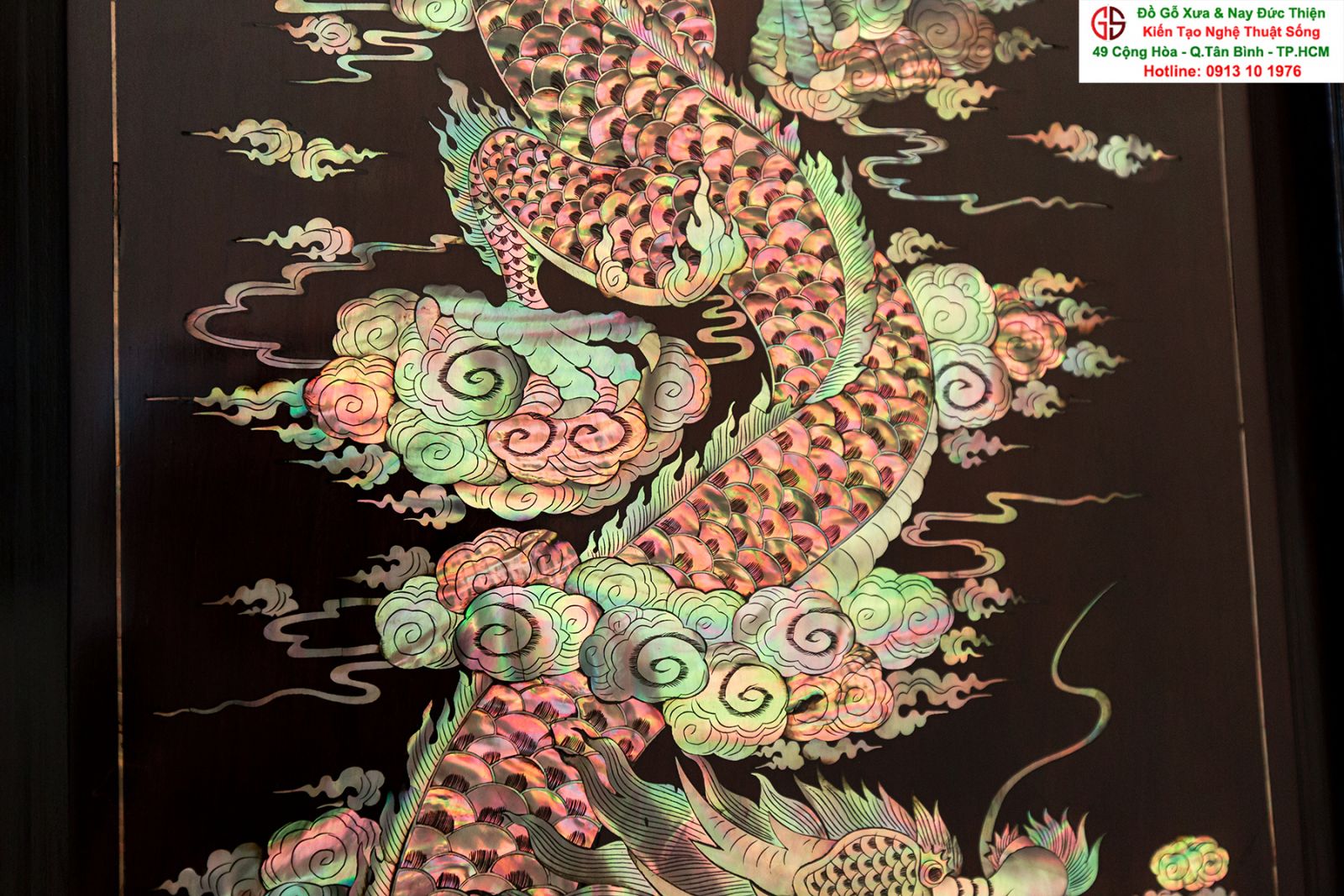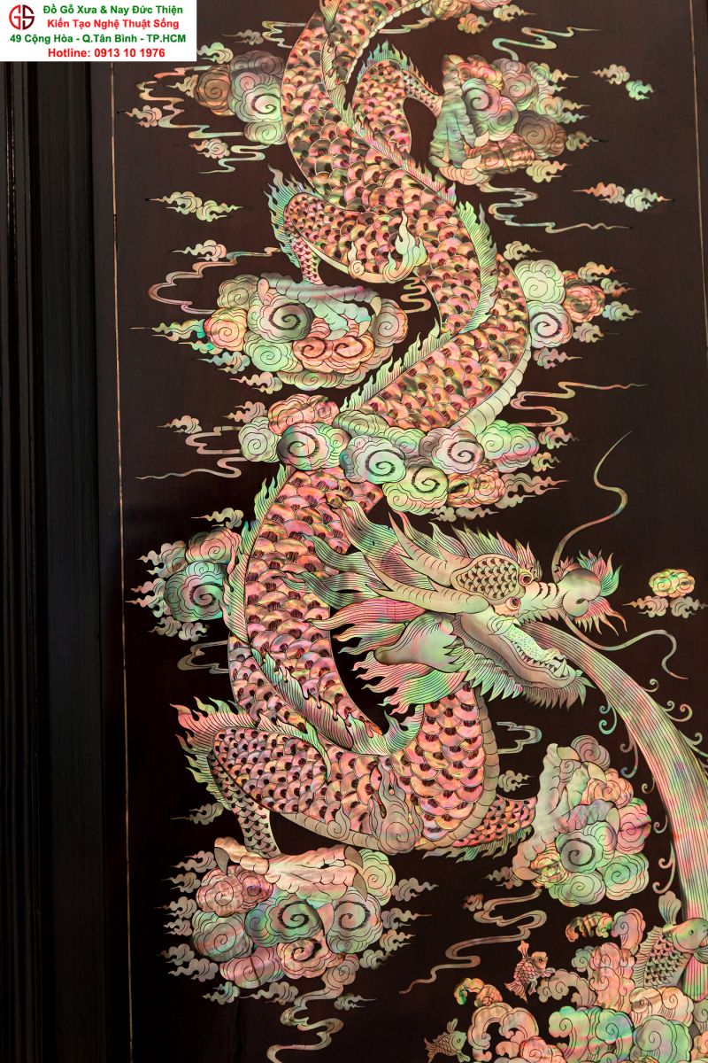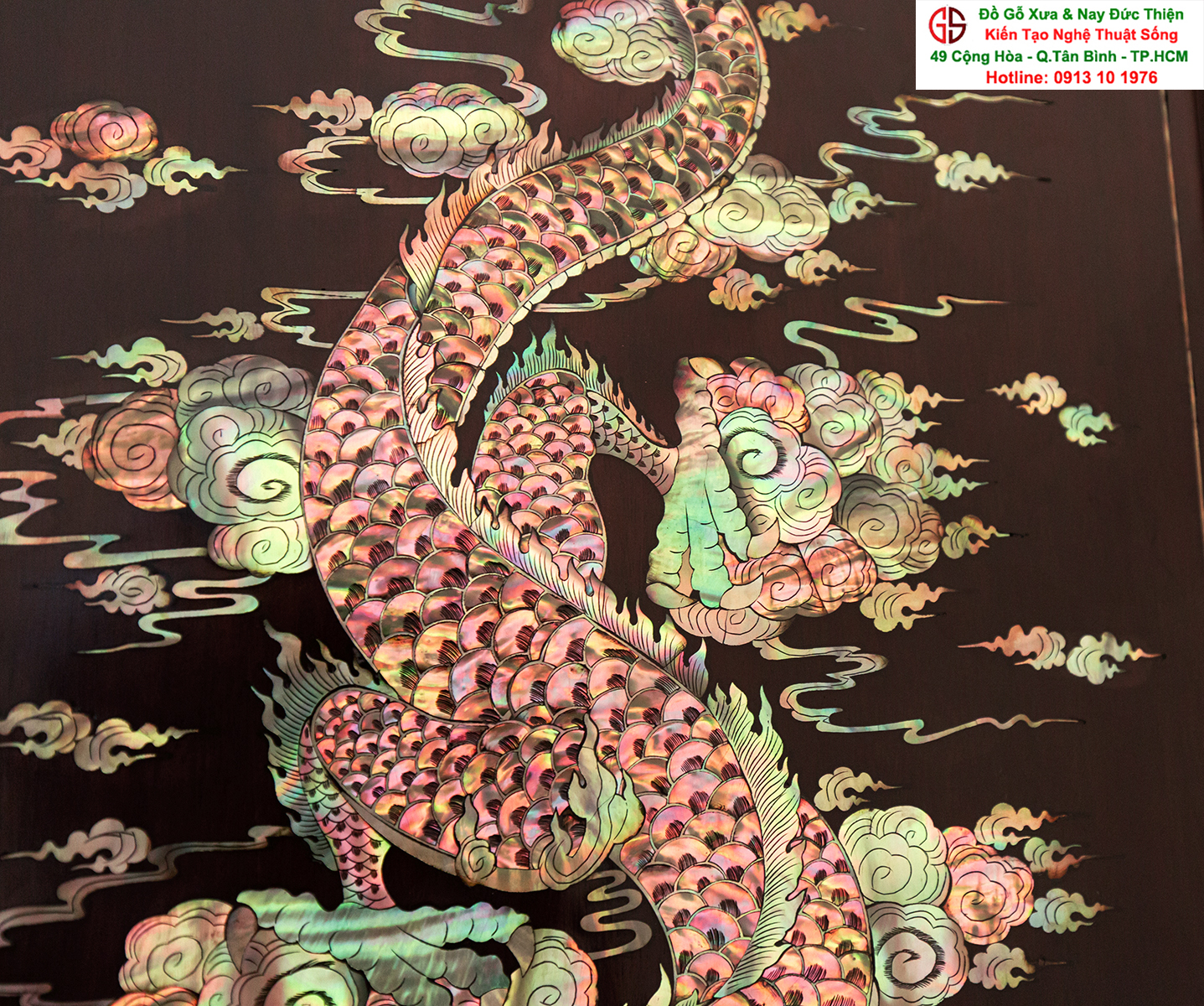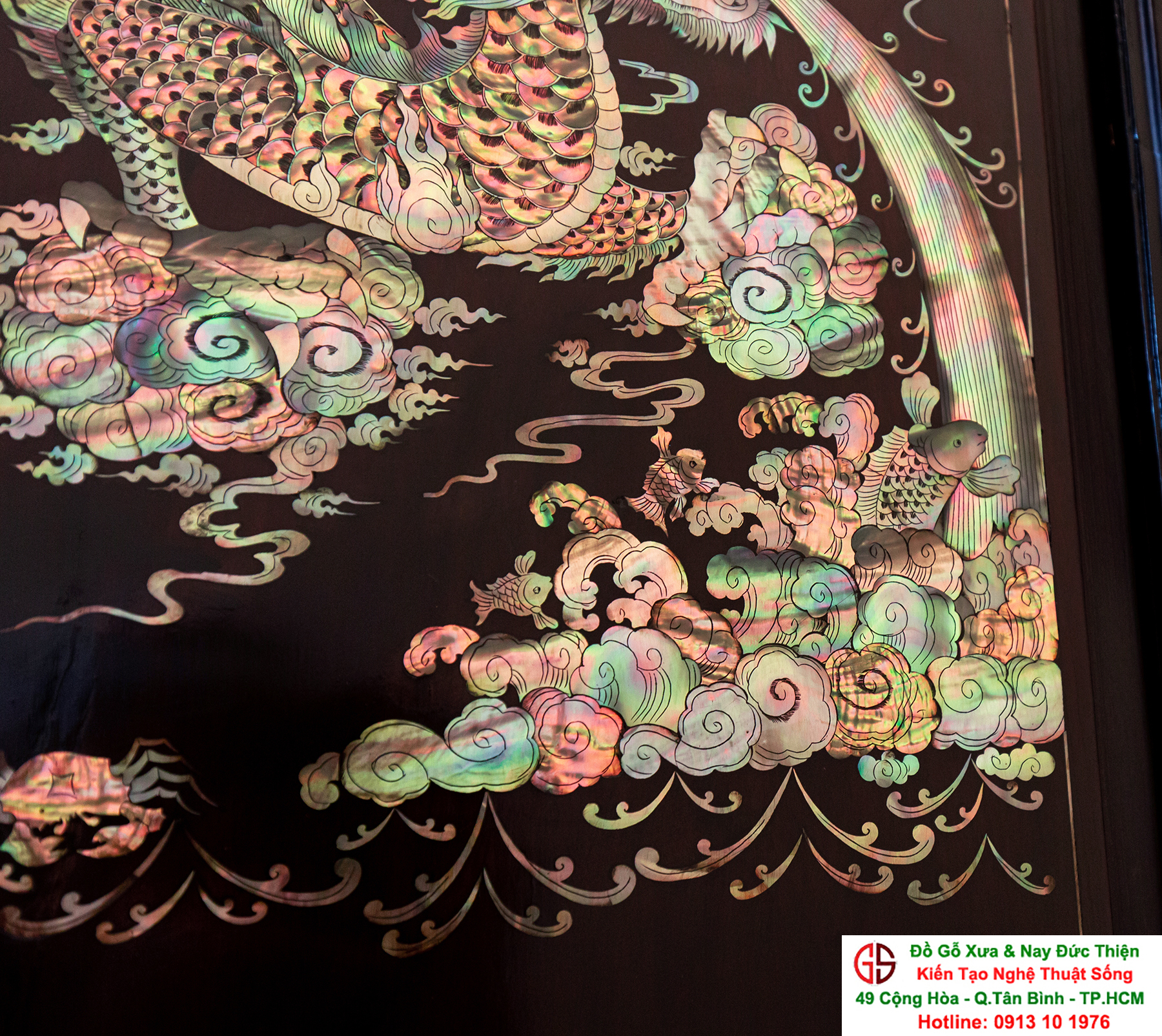 TỦ ÁO GỖ GỤ KHẢM ÓC ĐẸP [ TÍCH CÁ CHÉP HÓA RỒNG ]