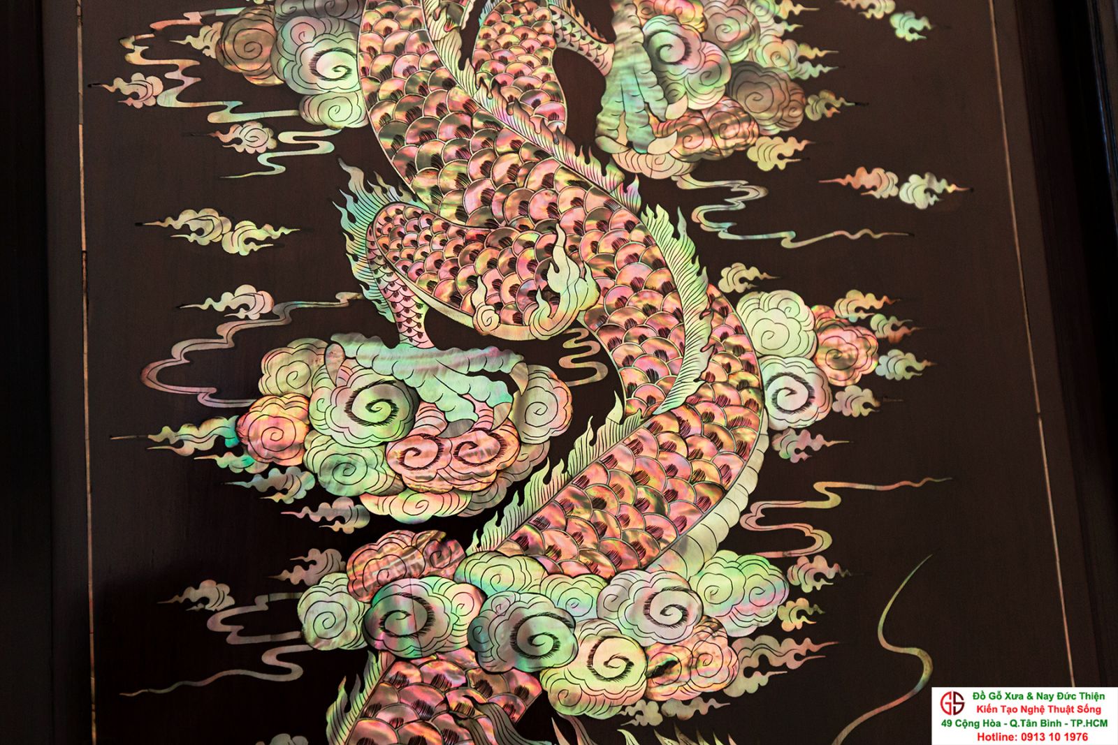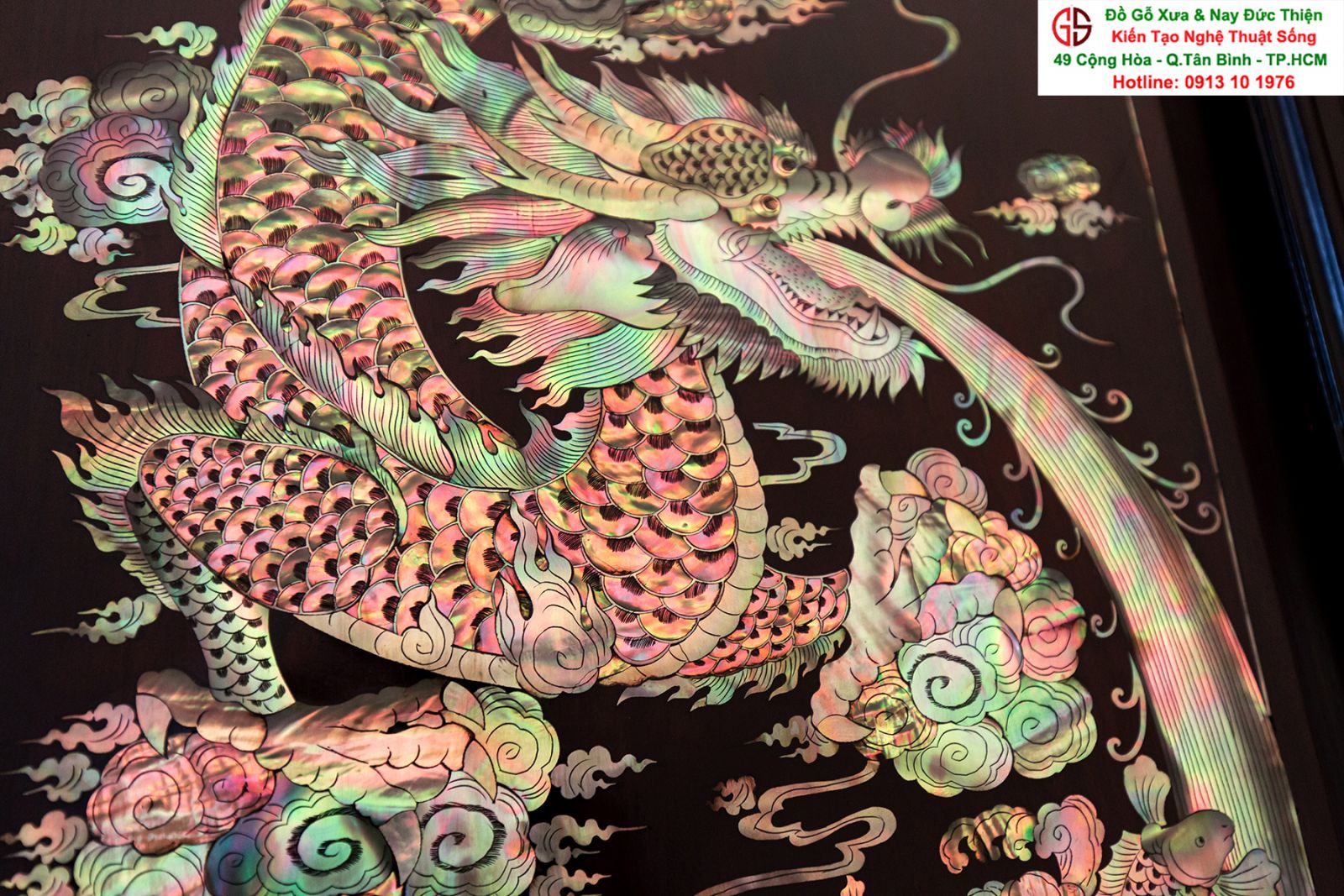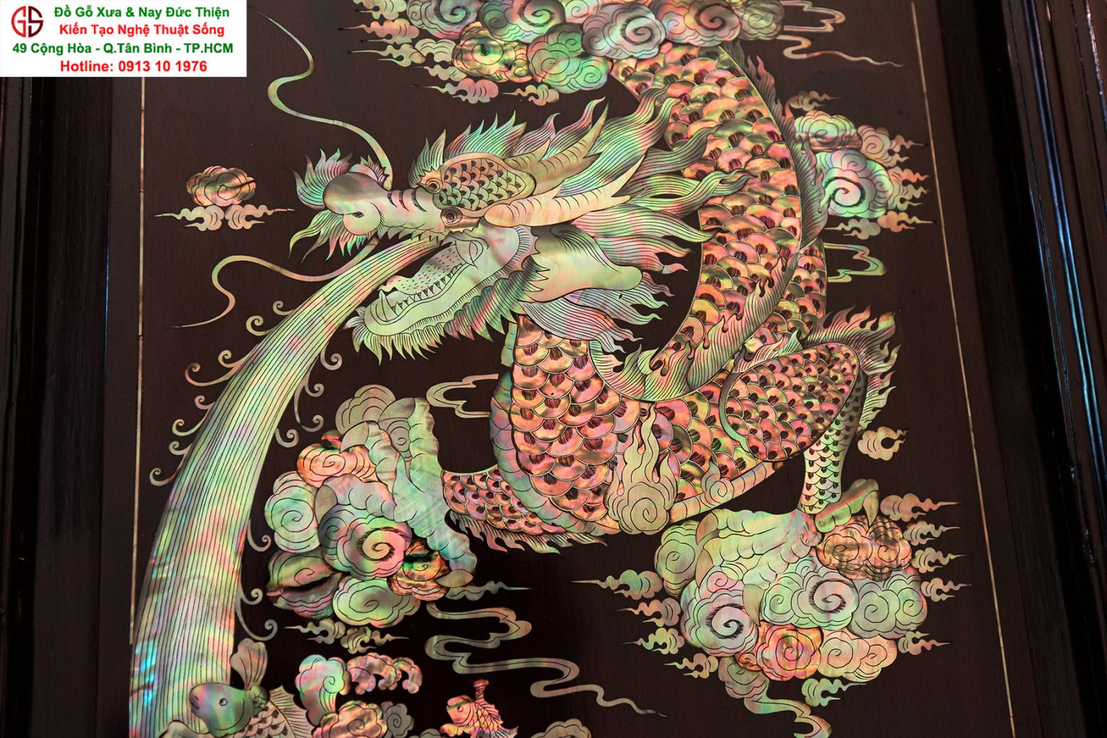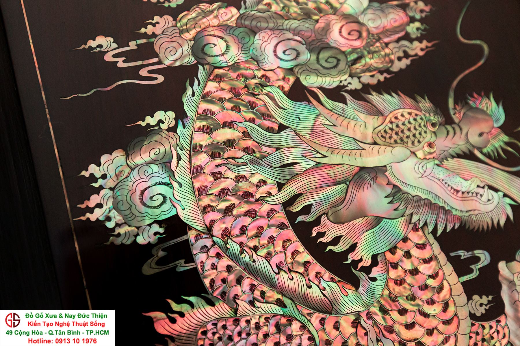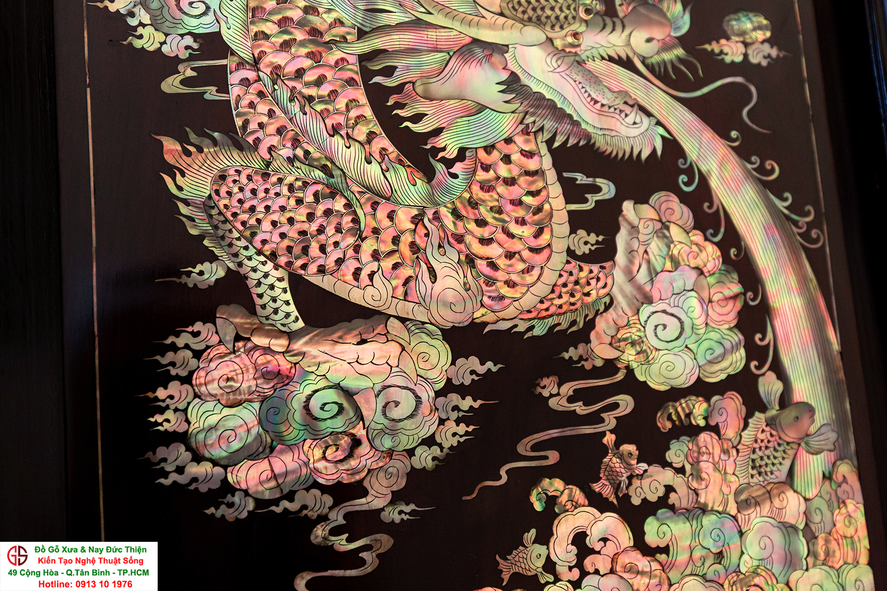 TỦ ÁO GỖ GỤ KHẢM ÓC ĐẸP [ TÍCH CÁ CHÉP HÓA RỒNG ]