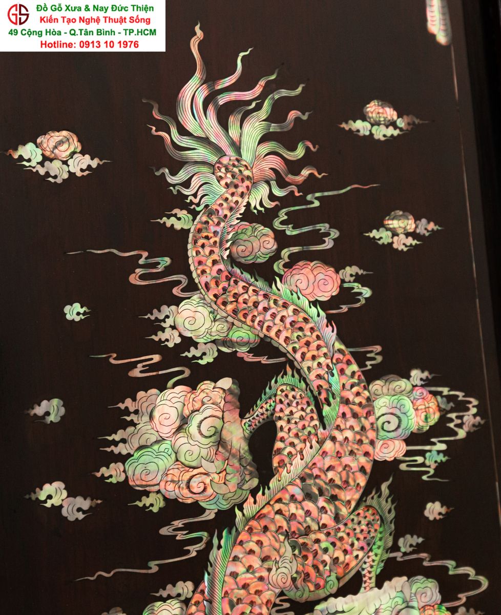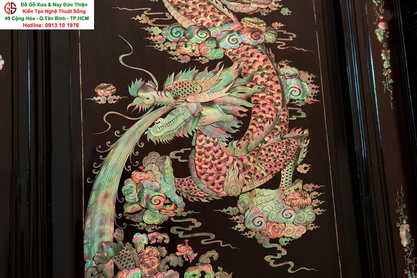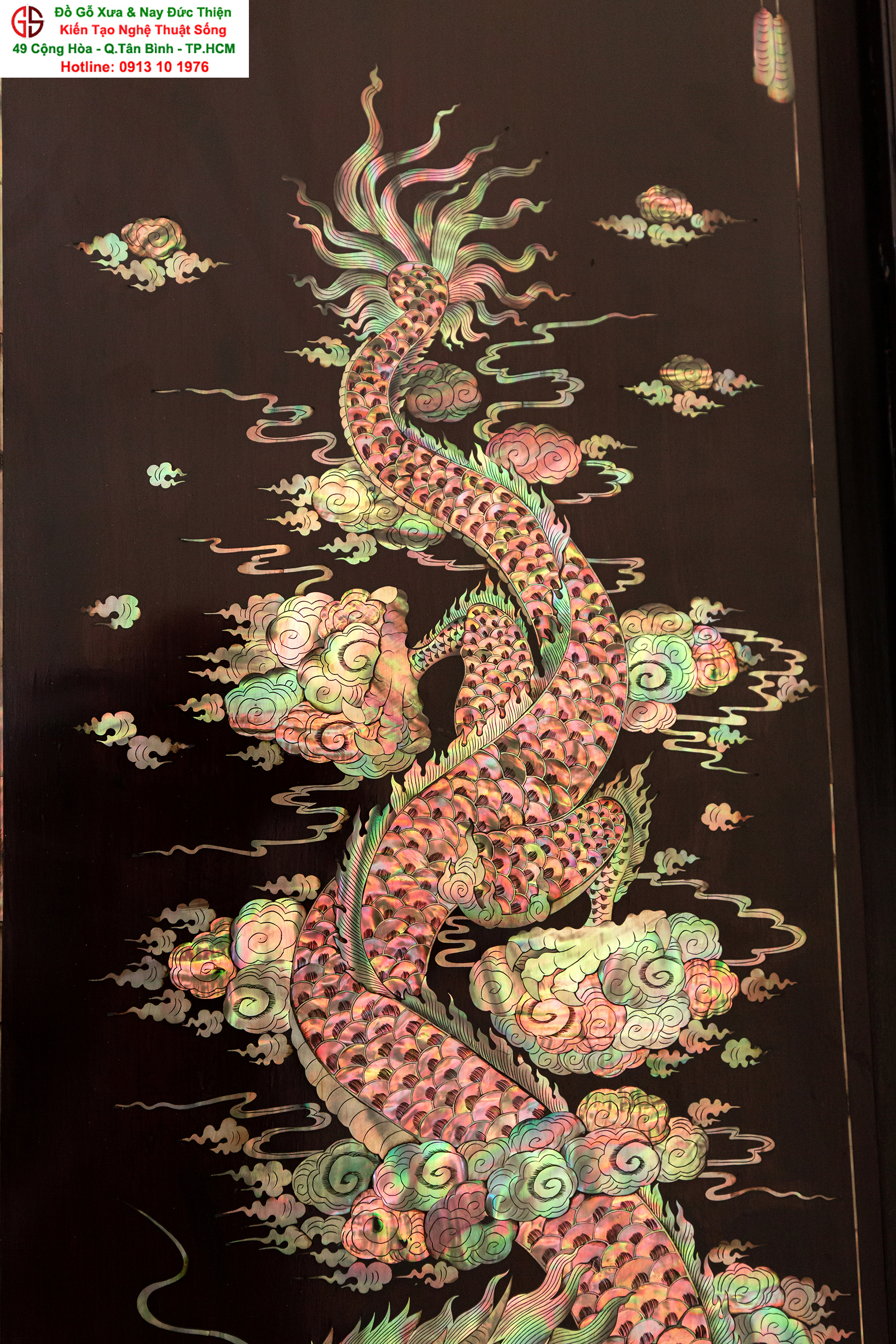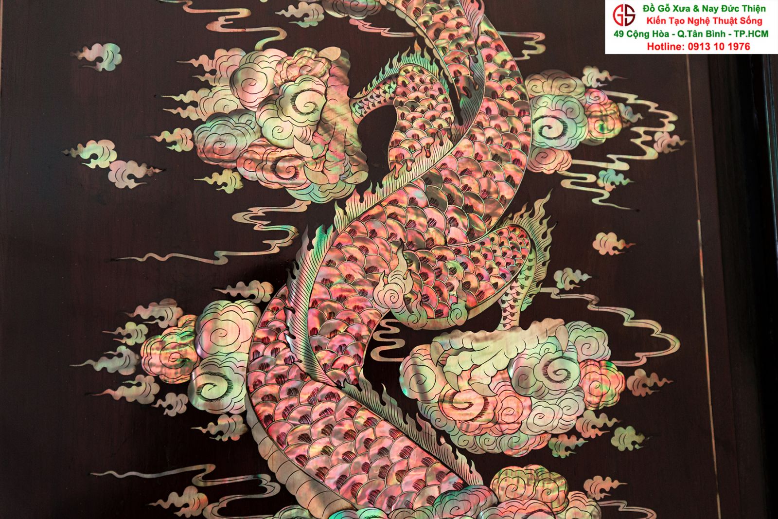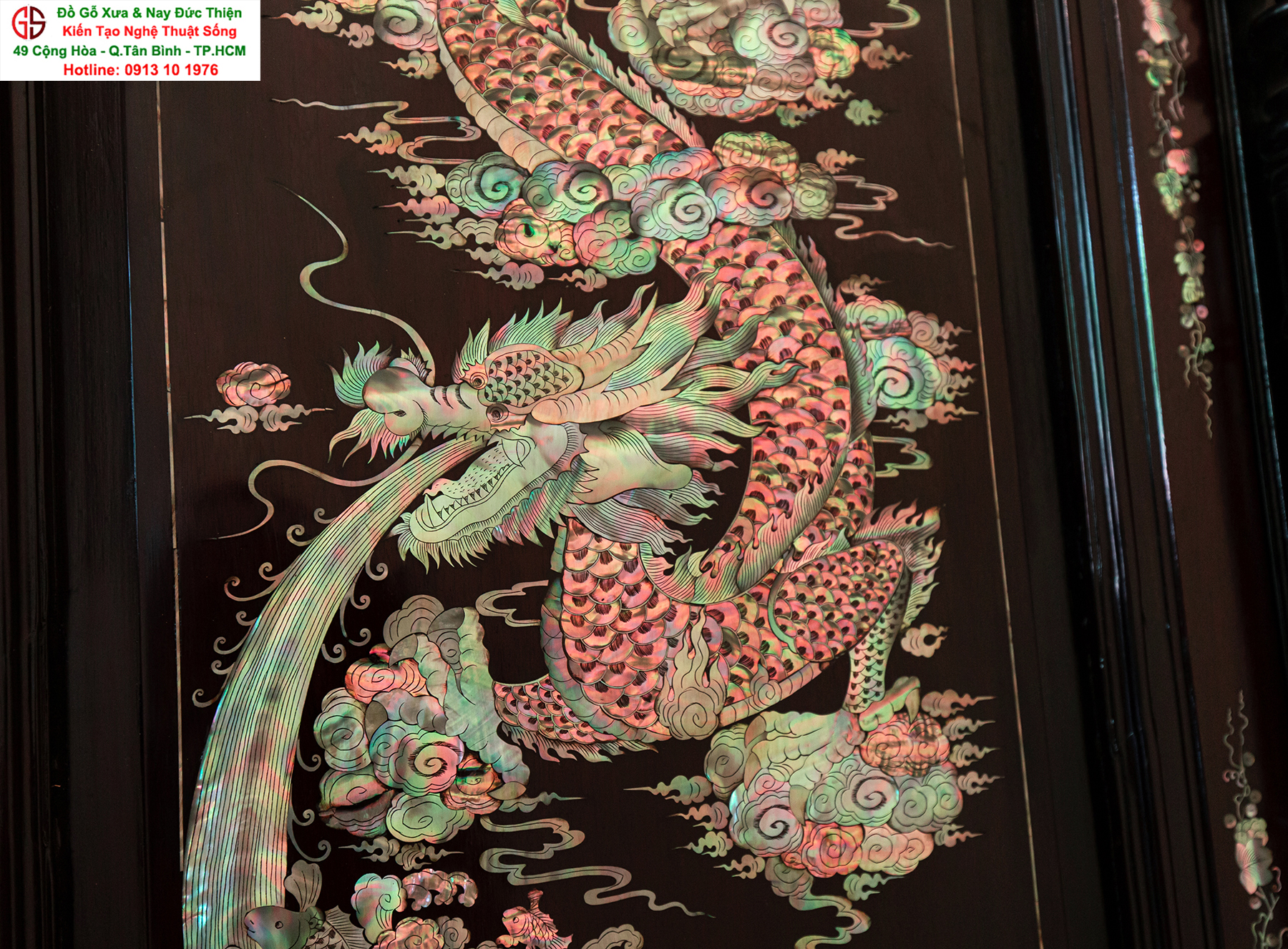 TỦ ÁO GỖ GỤ KHẢM ÓC ĐẸP [ TÍCH CÁ CHÉP HÓA RỒNG ]