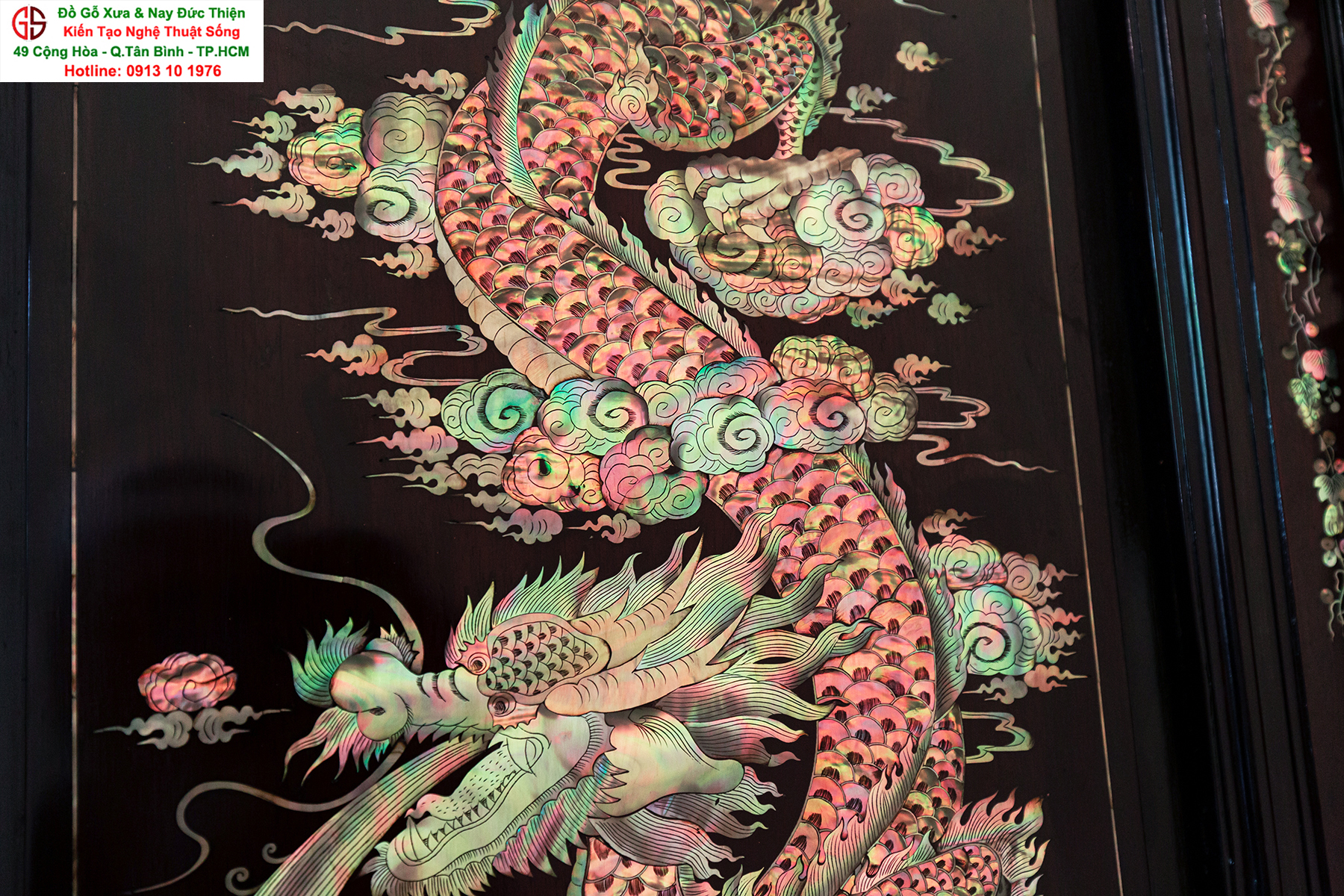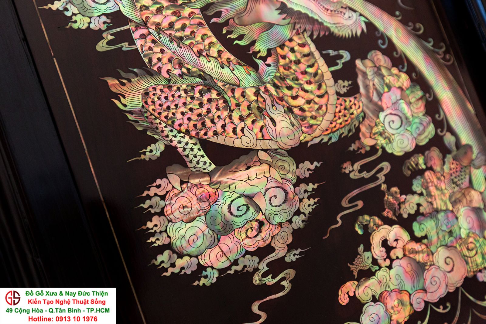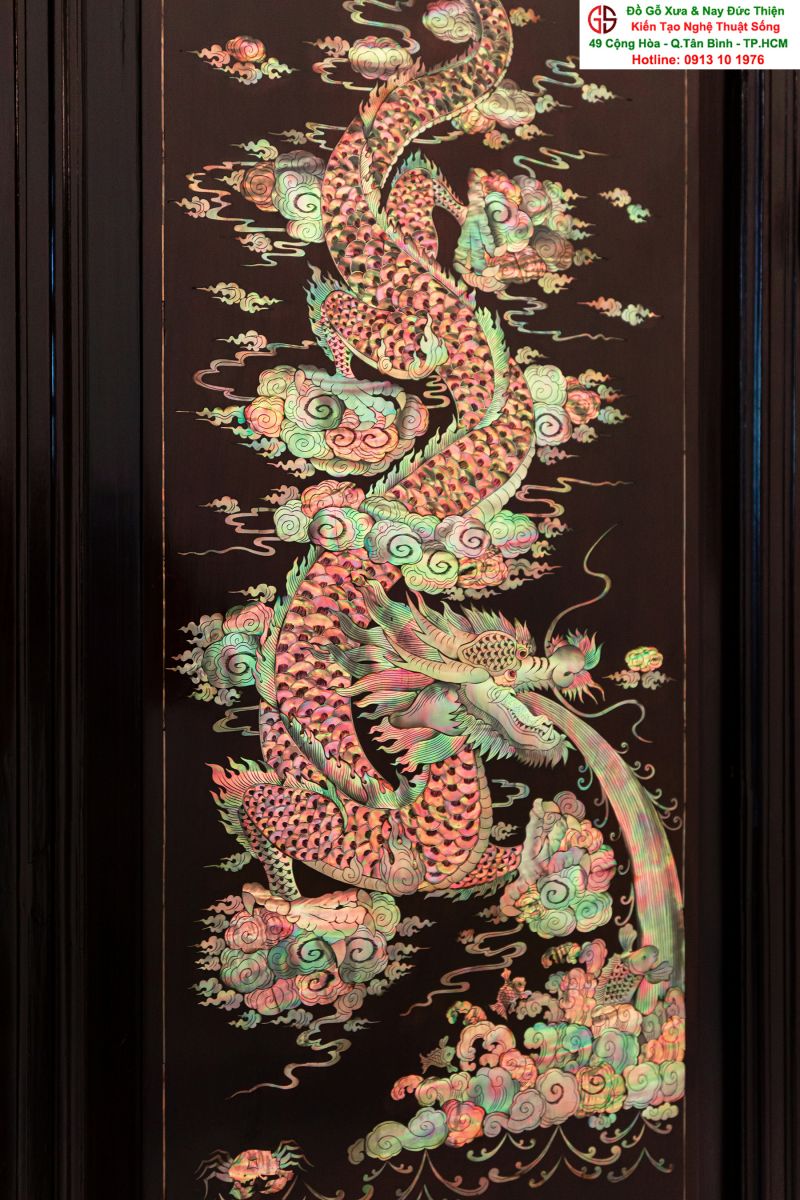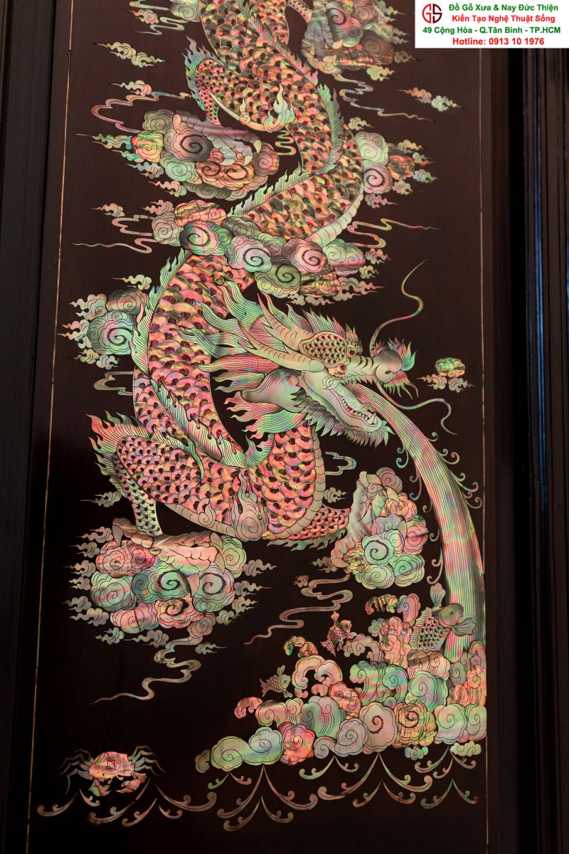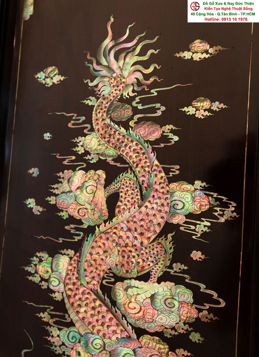 TỦ ÁO GỖ GỤ KHẢM ÓC ĐẸP [ TÍCH CÁ CHÉP HÓA RỒNG ]
